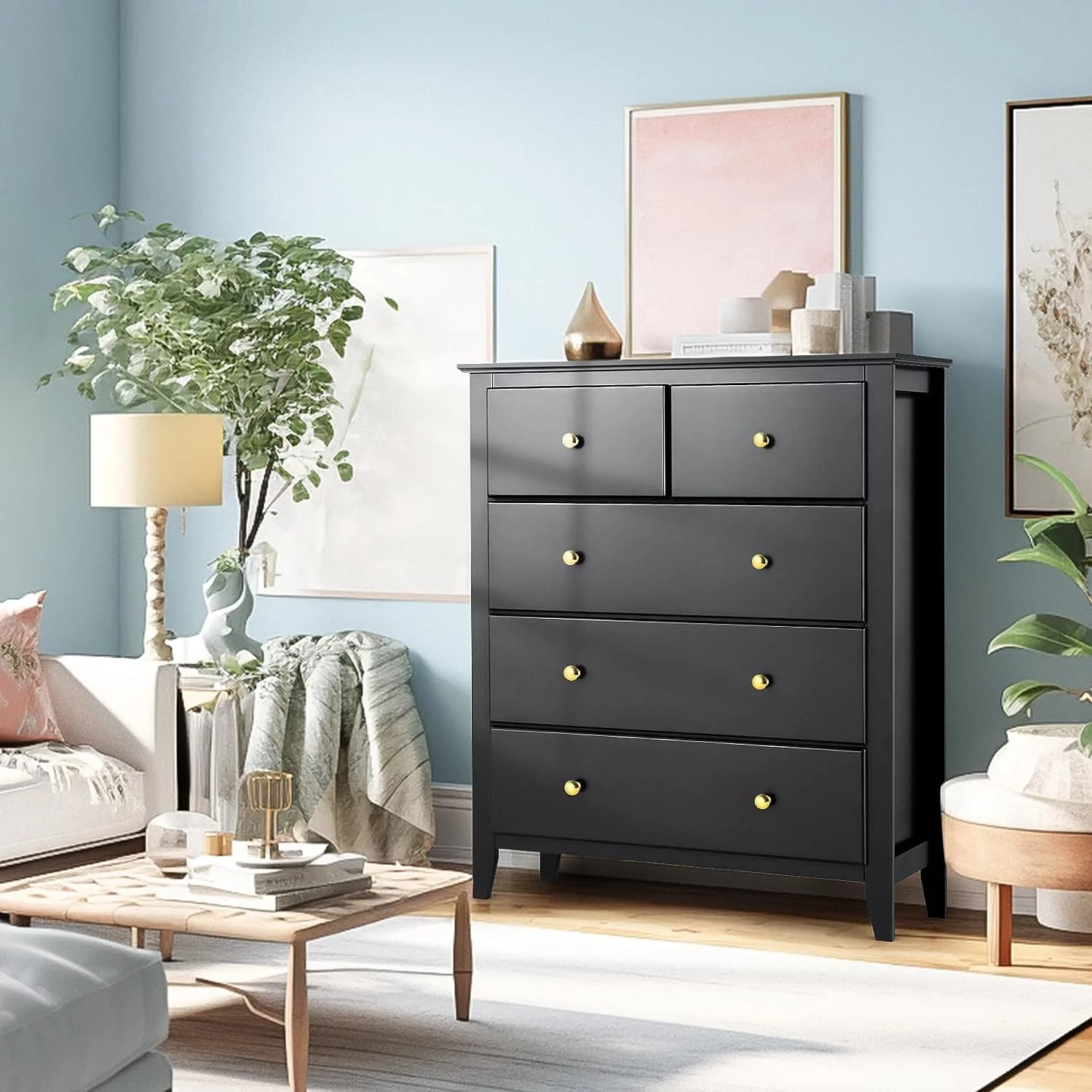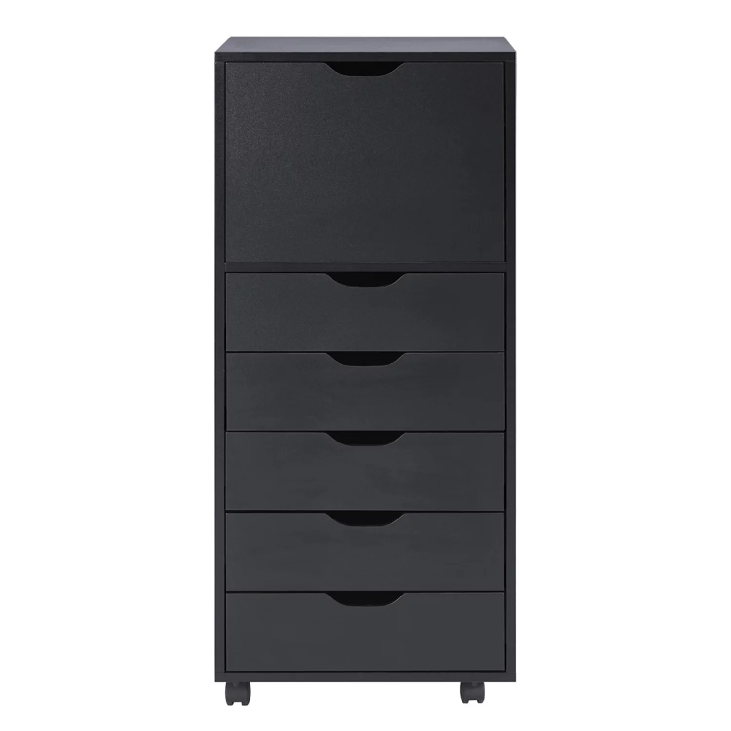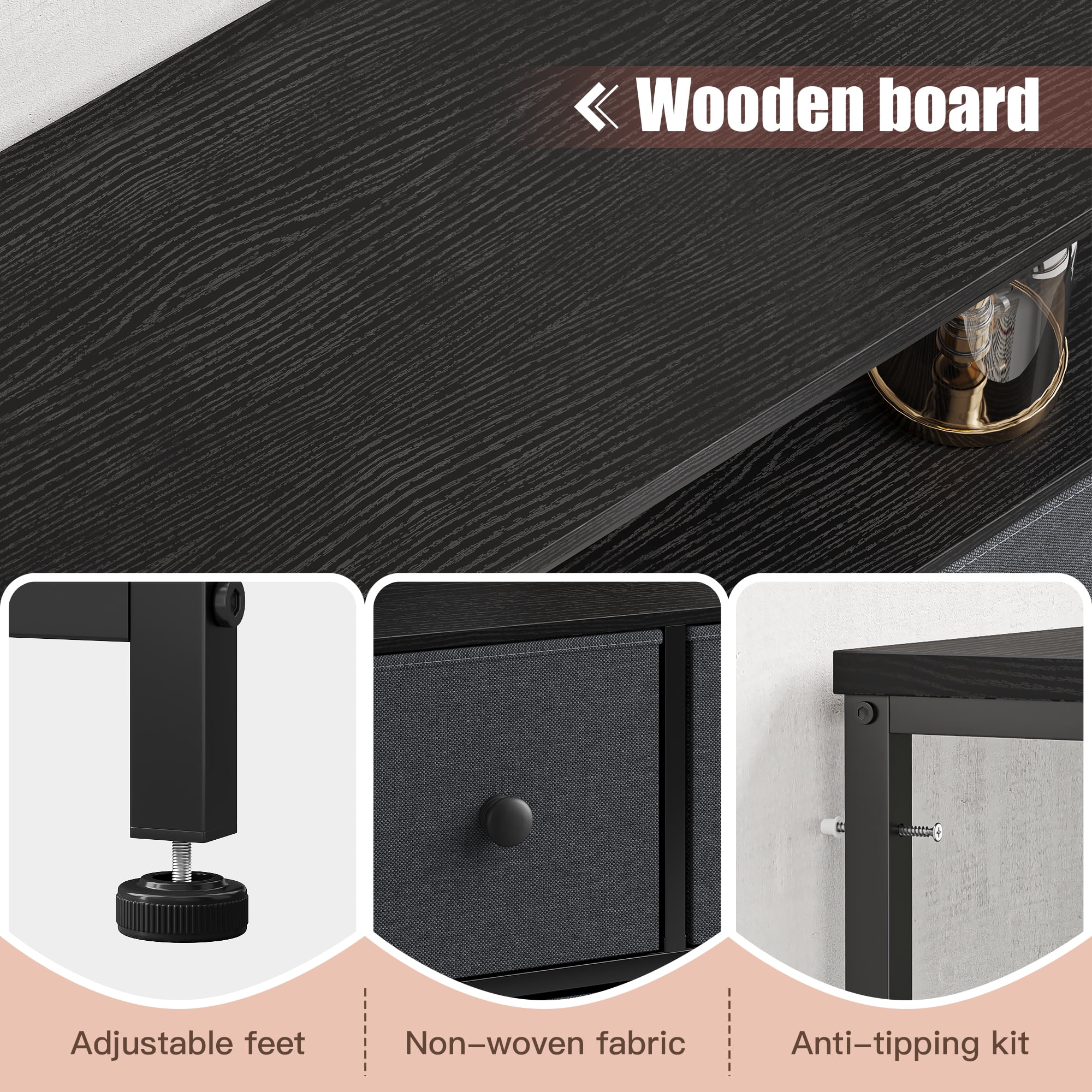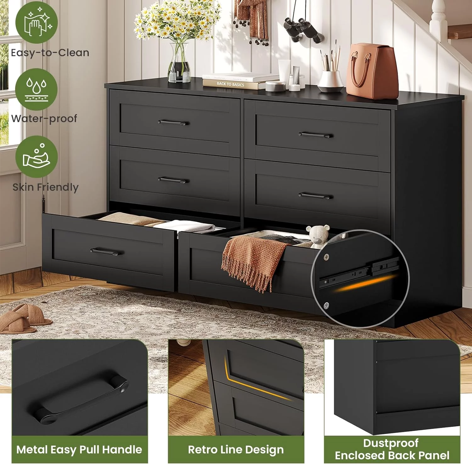 Homfa 7 Drawer Black Dresser for Bedroom, Glass Panel Wood Storage Cabinet with Easy Pull Out Handles for Living Room