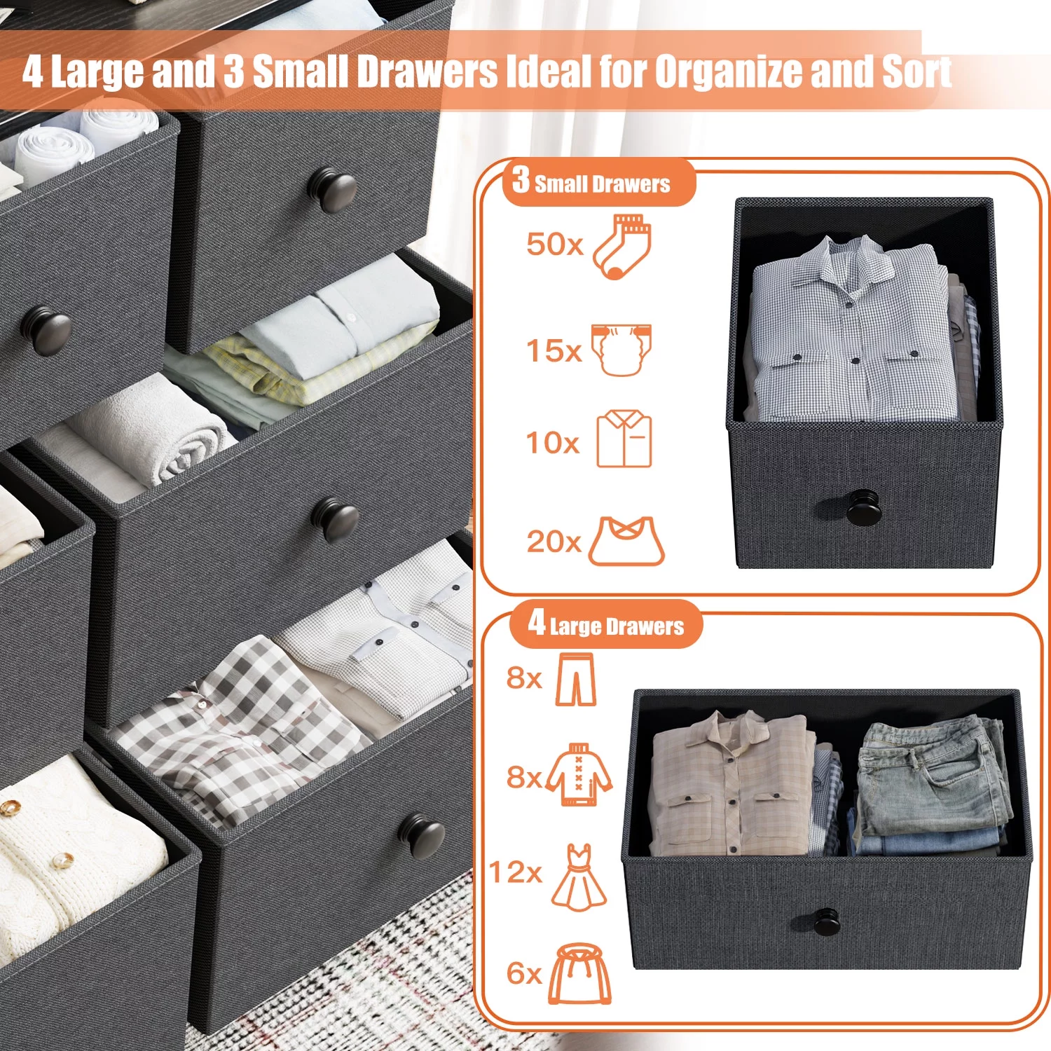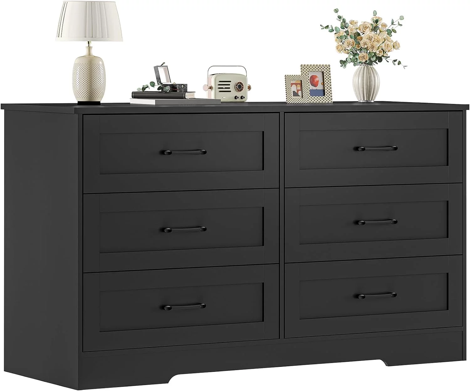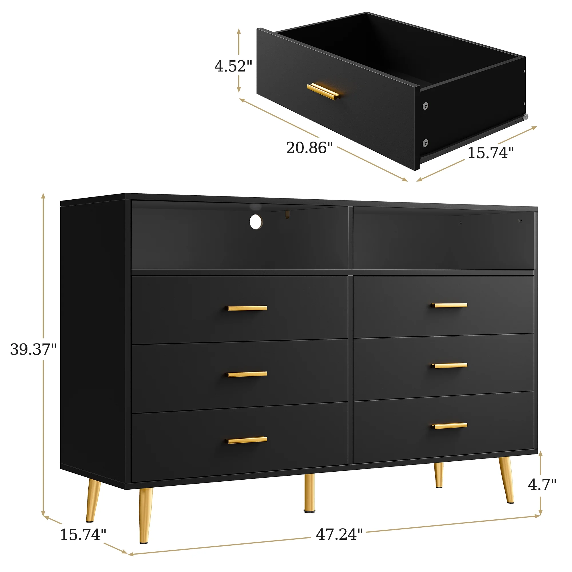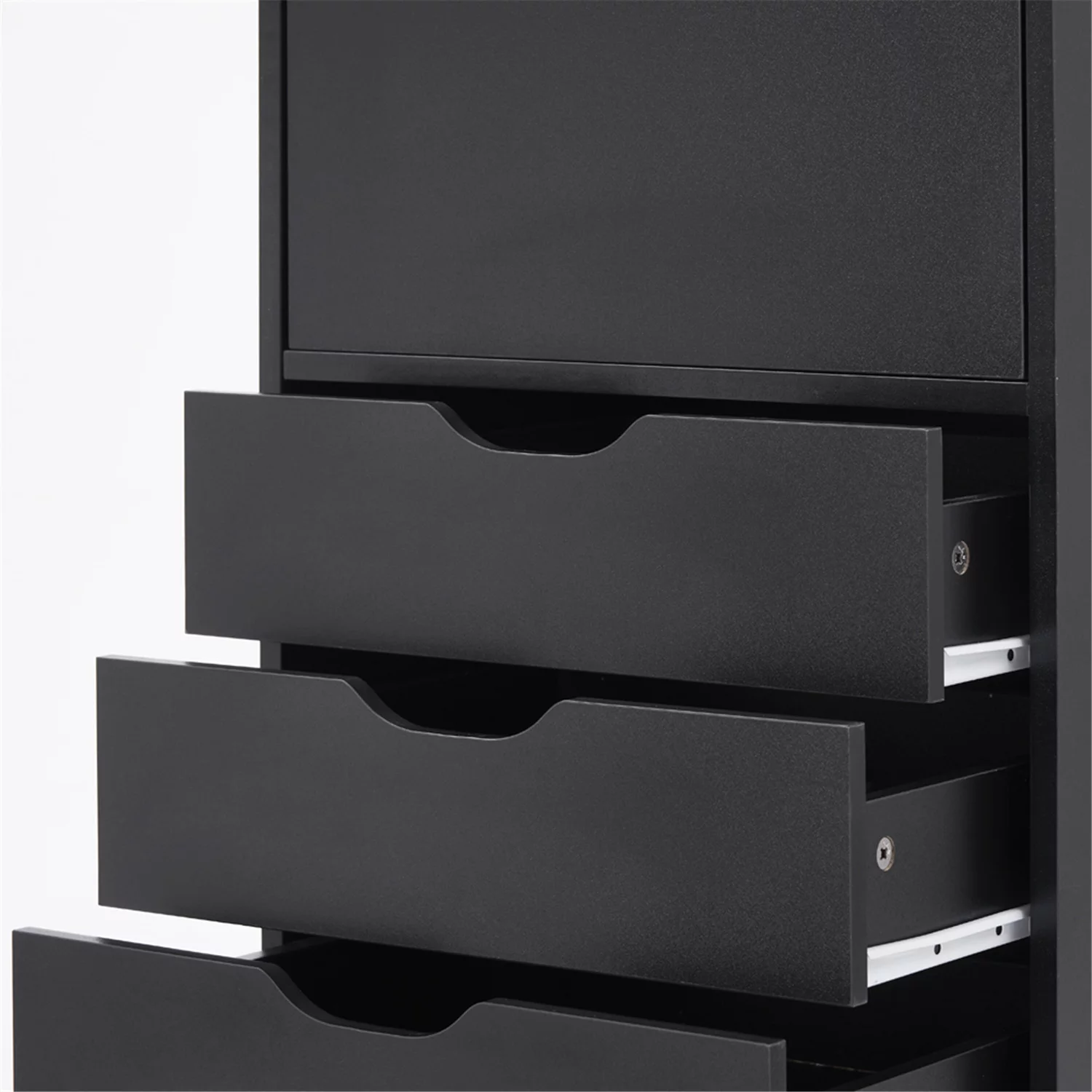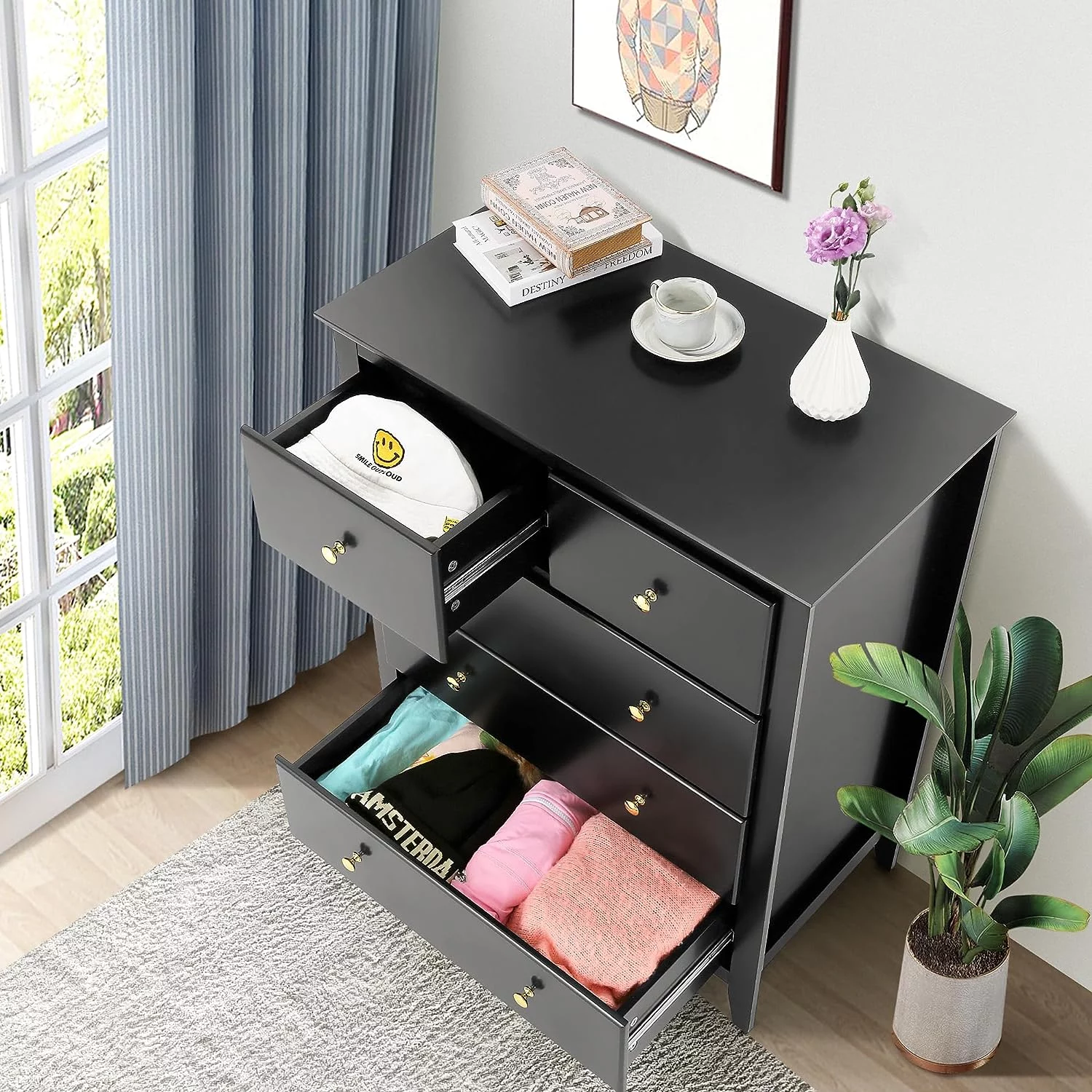 Homfa 7 Drawer Black Dresser for Bedroom, Glass Panel Wood Storage Cabinet with Easy Pull Out Handles for Living Room
