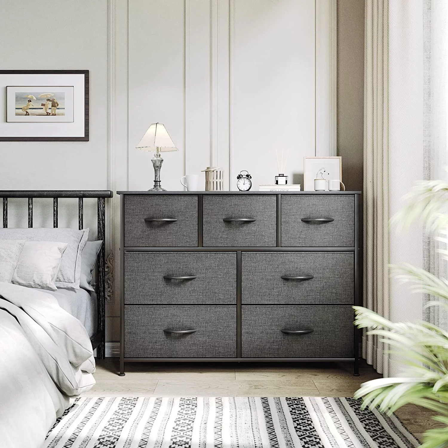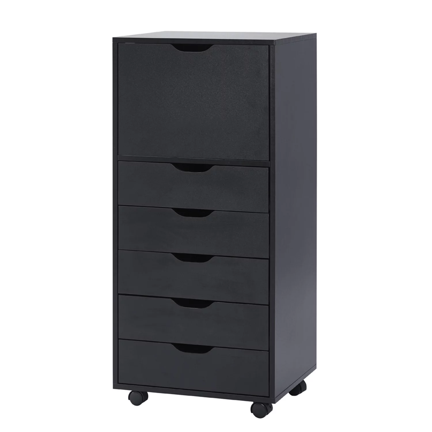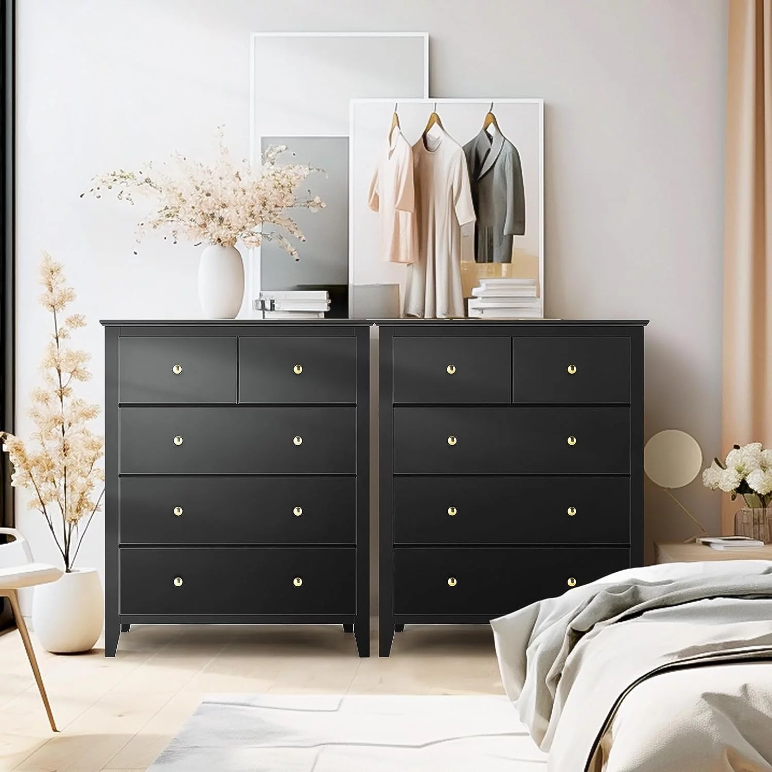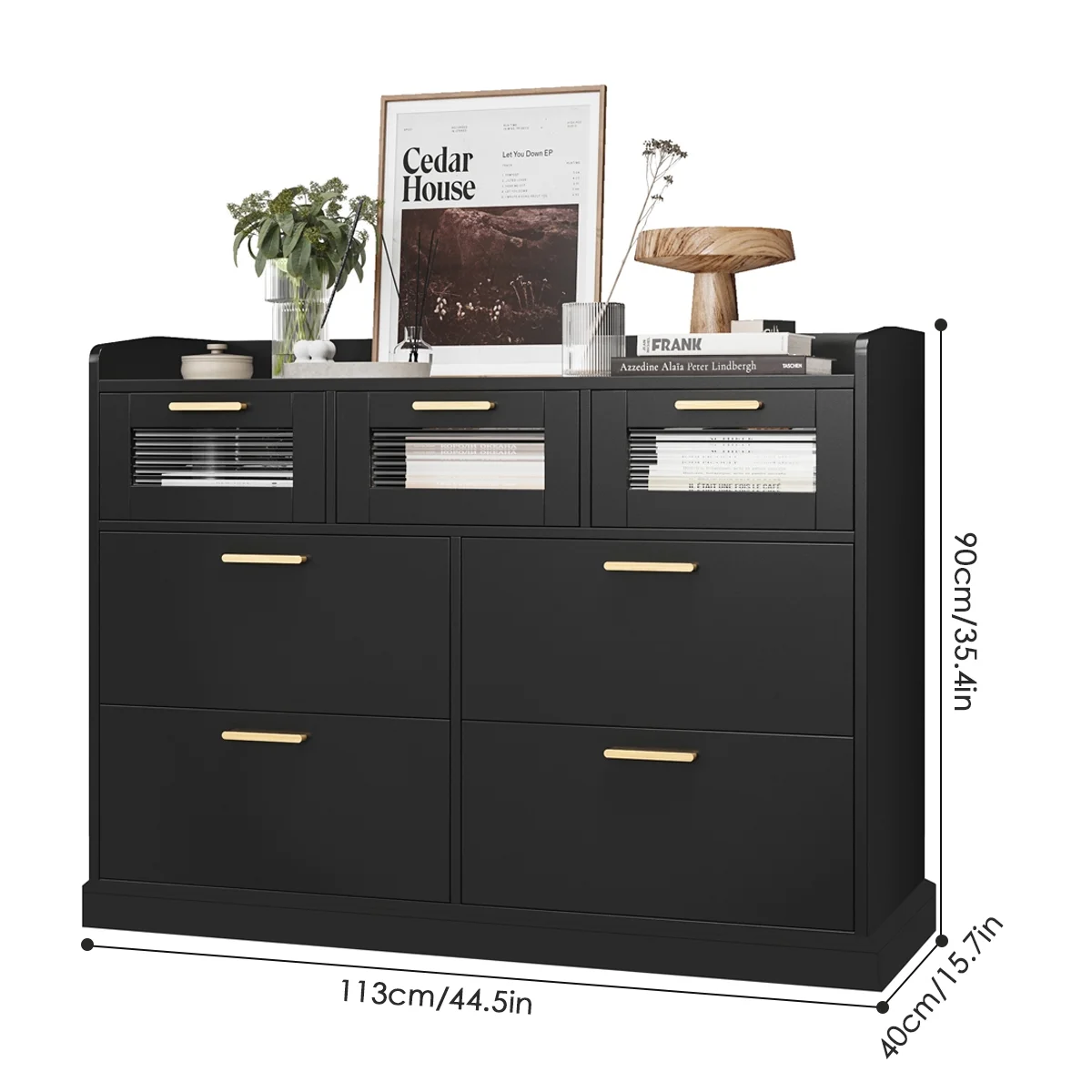 Homfa 7 Drawer Black Dresser for Bedroom, Glass Panel Wood Storage Cabinet with Easy Pull Out Handles for Living Room