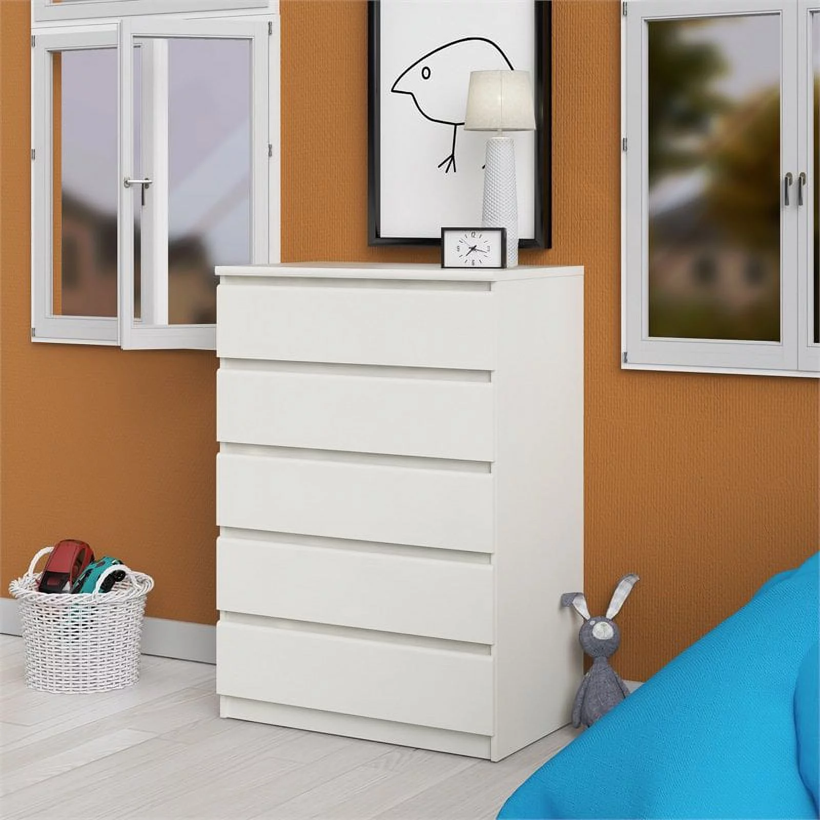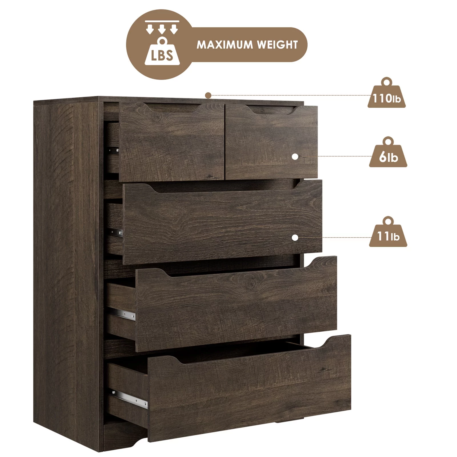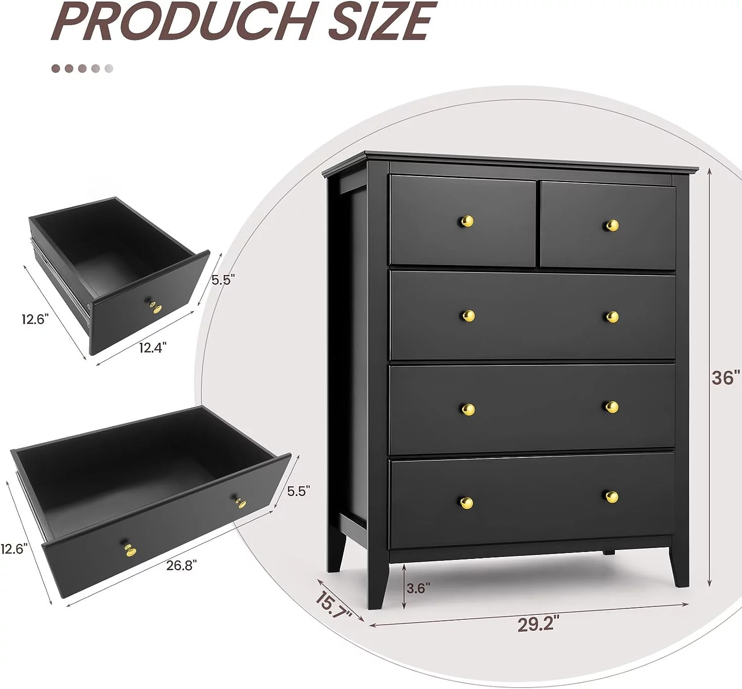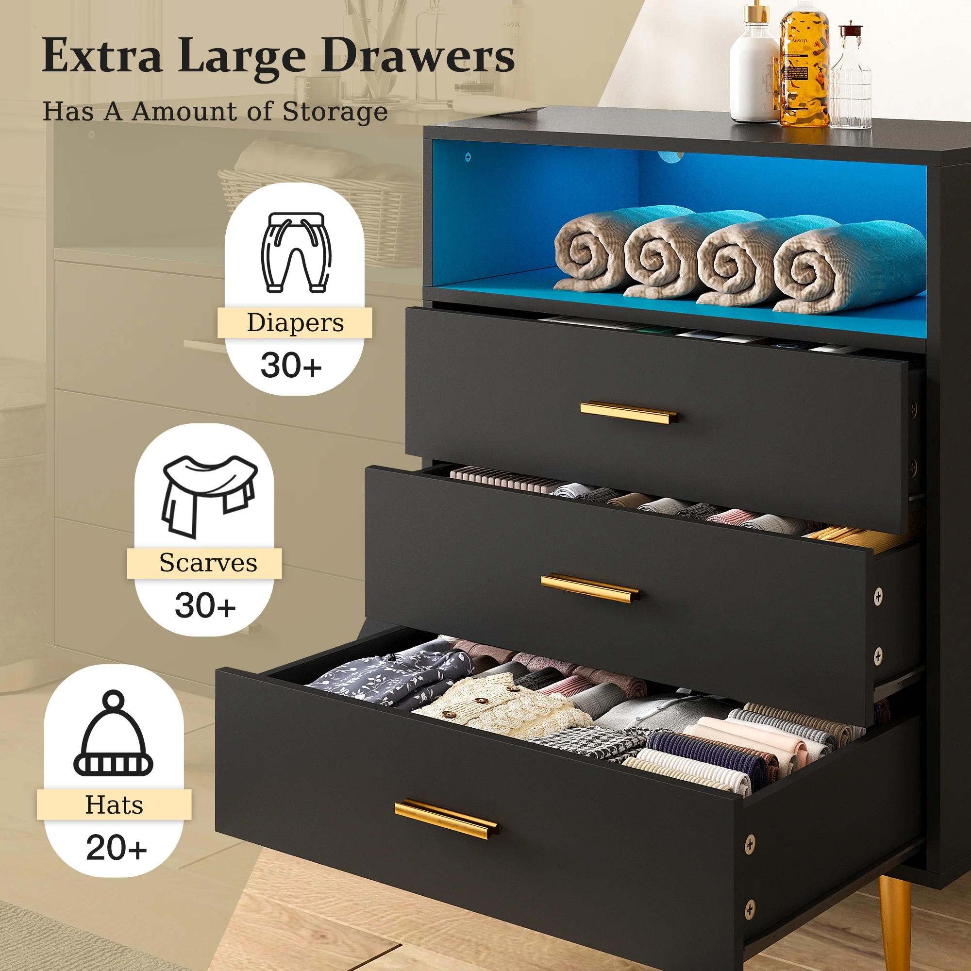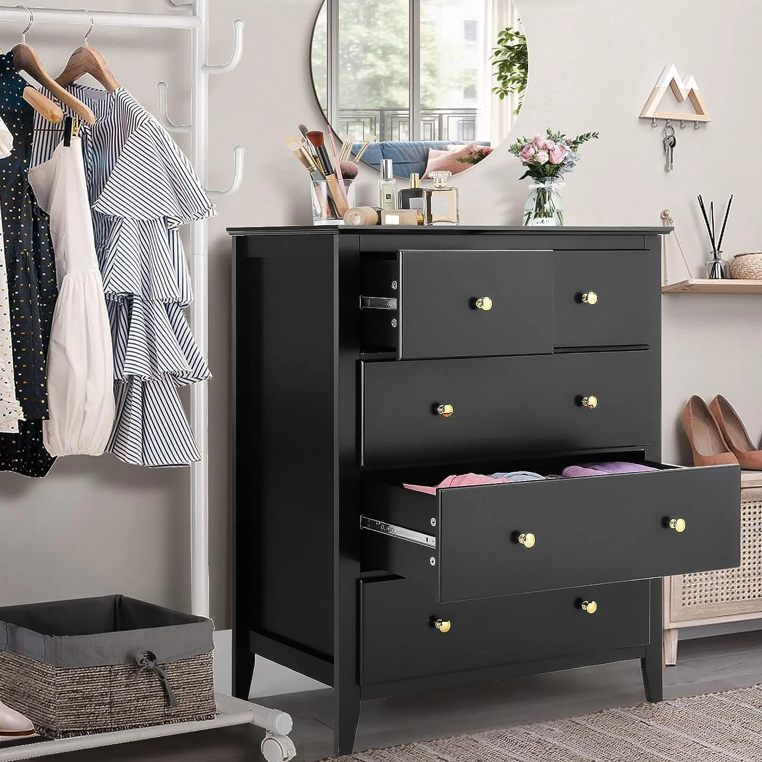 Homfa 7 Drawer Black Dresser for Bedroom, Glass Panel Wood Storage Cabinet with Easy Pull Out Handles for Living Room