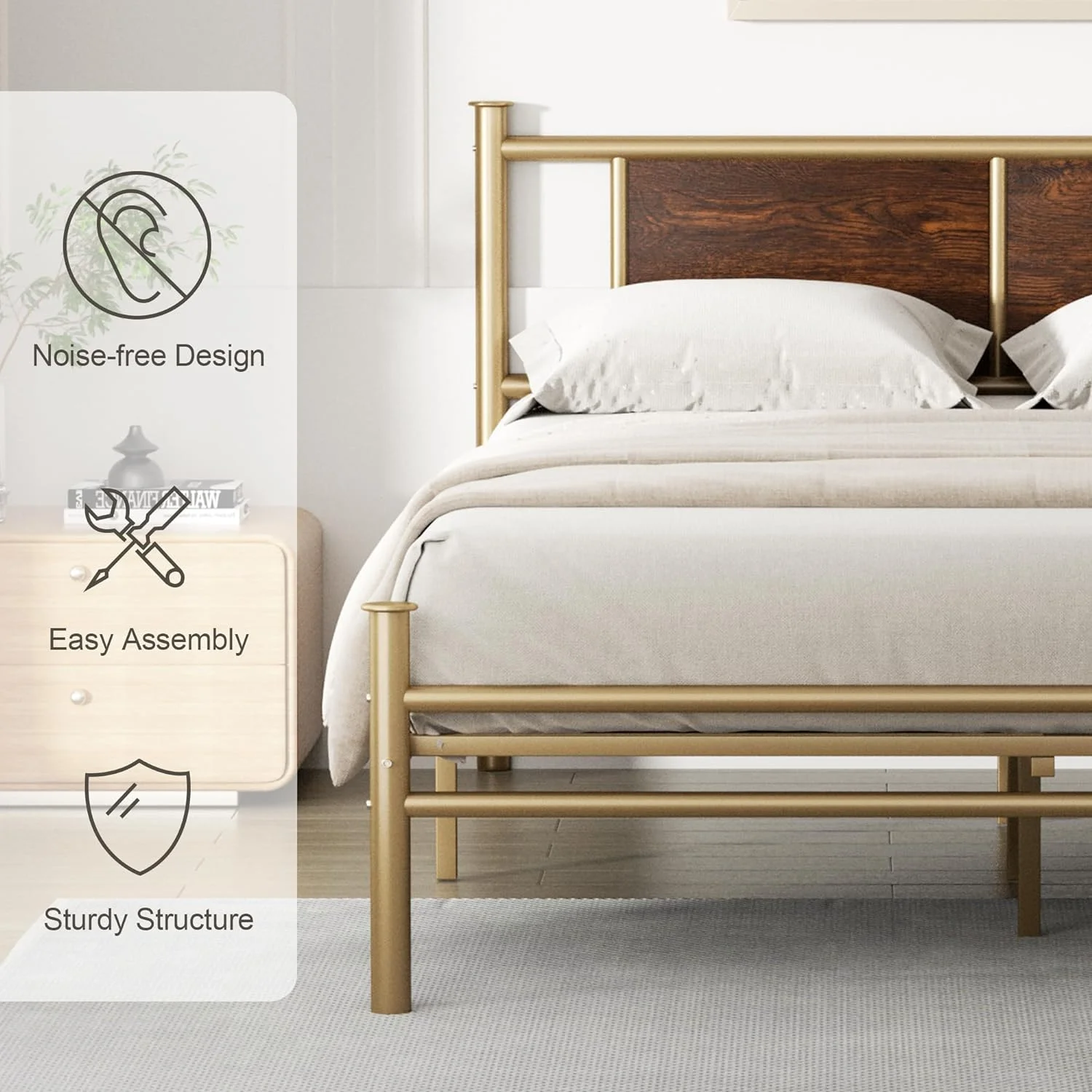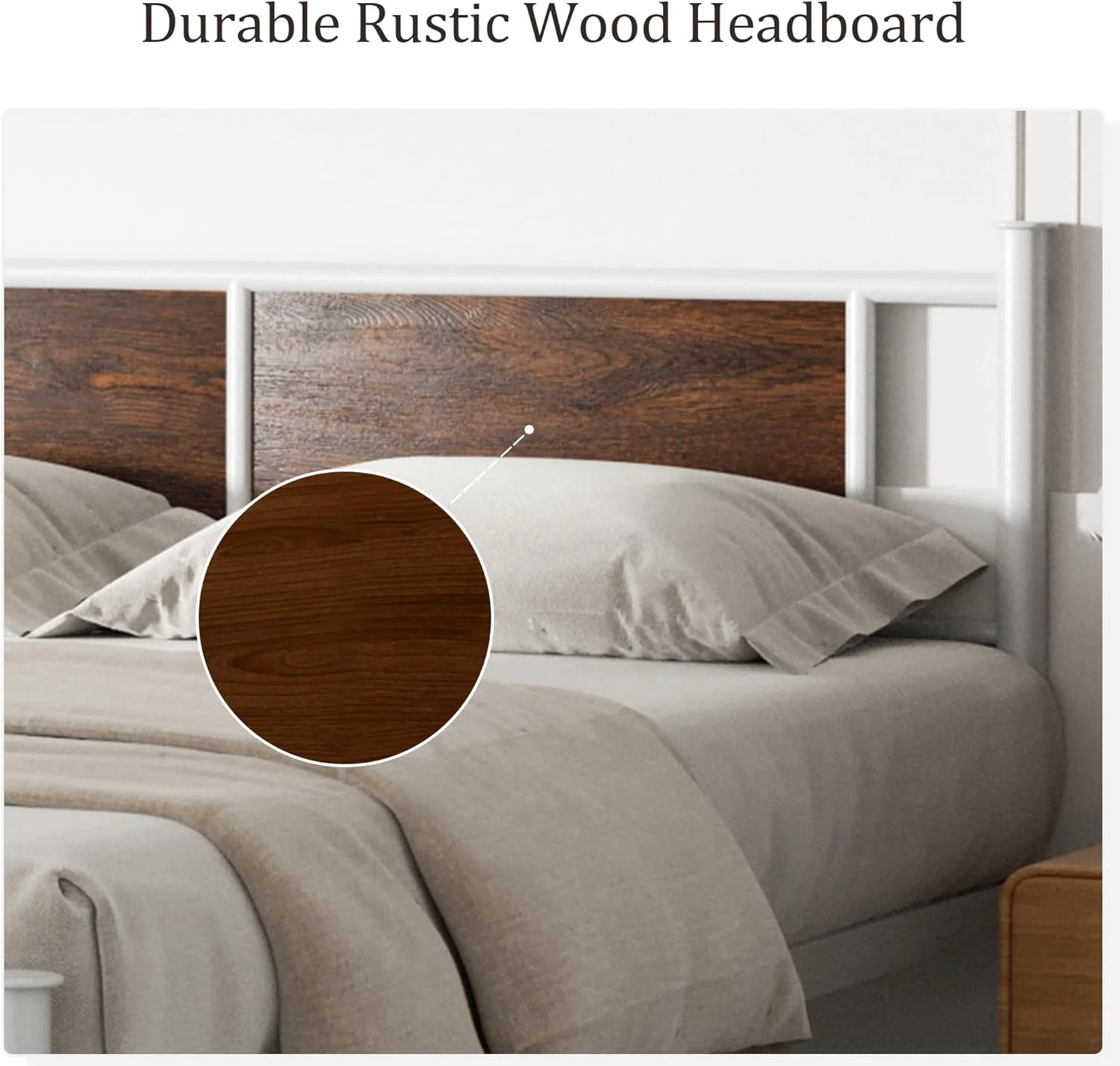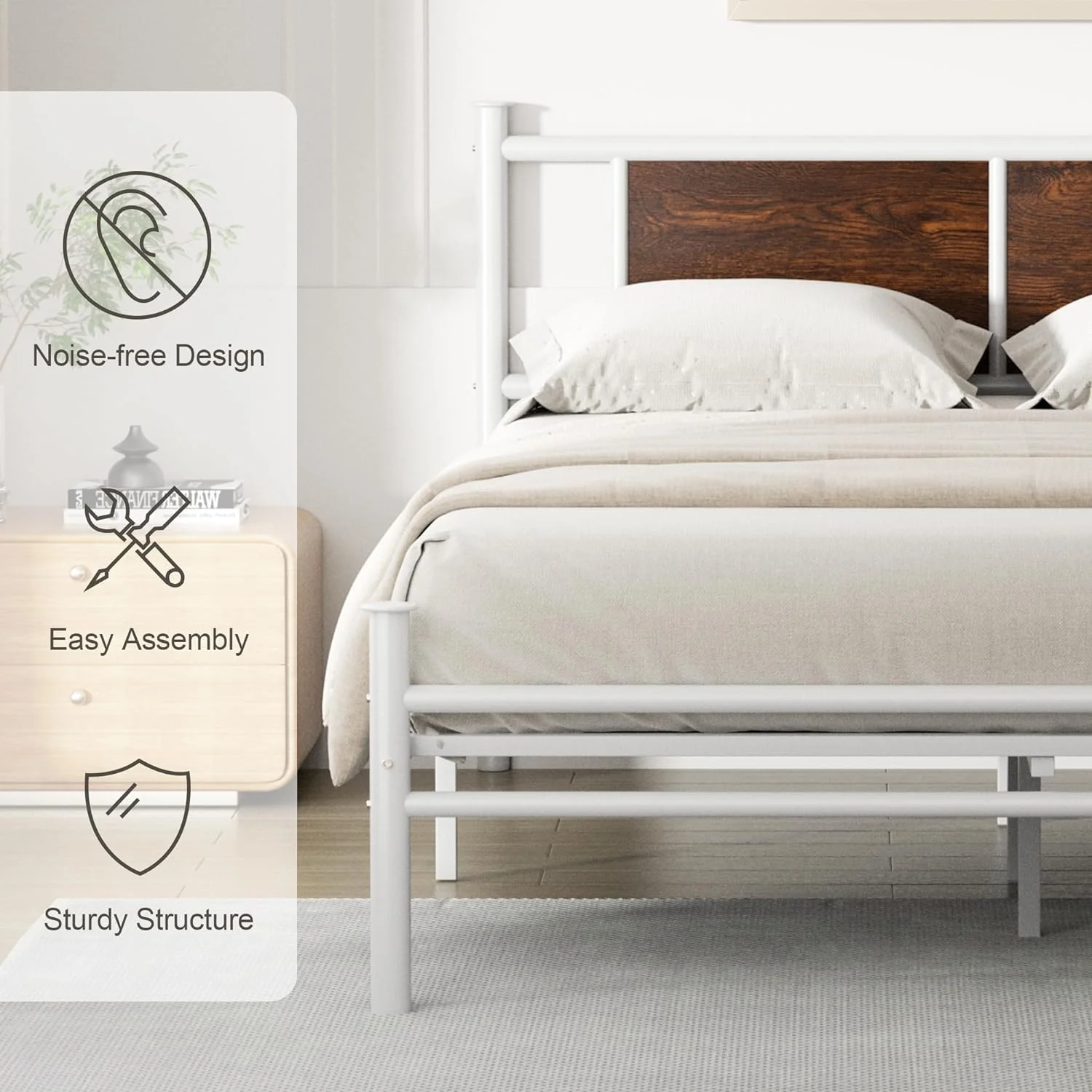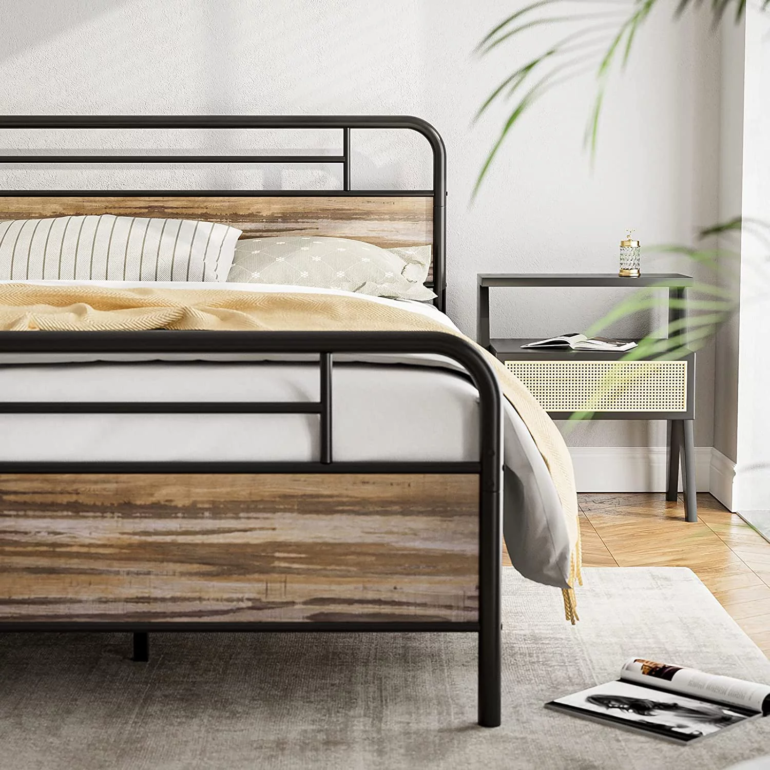 NNV California King Size Platform Metal Bed Frame with Leather Upholstered Headboard, Black