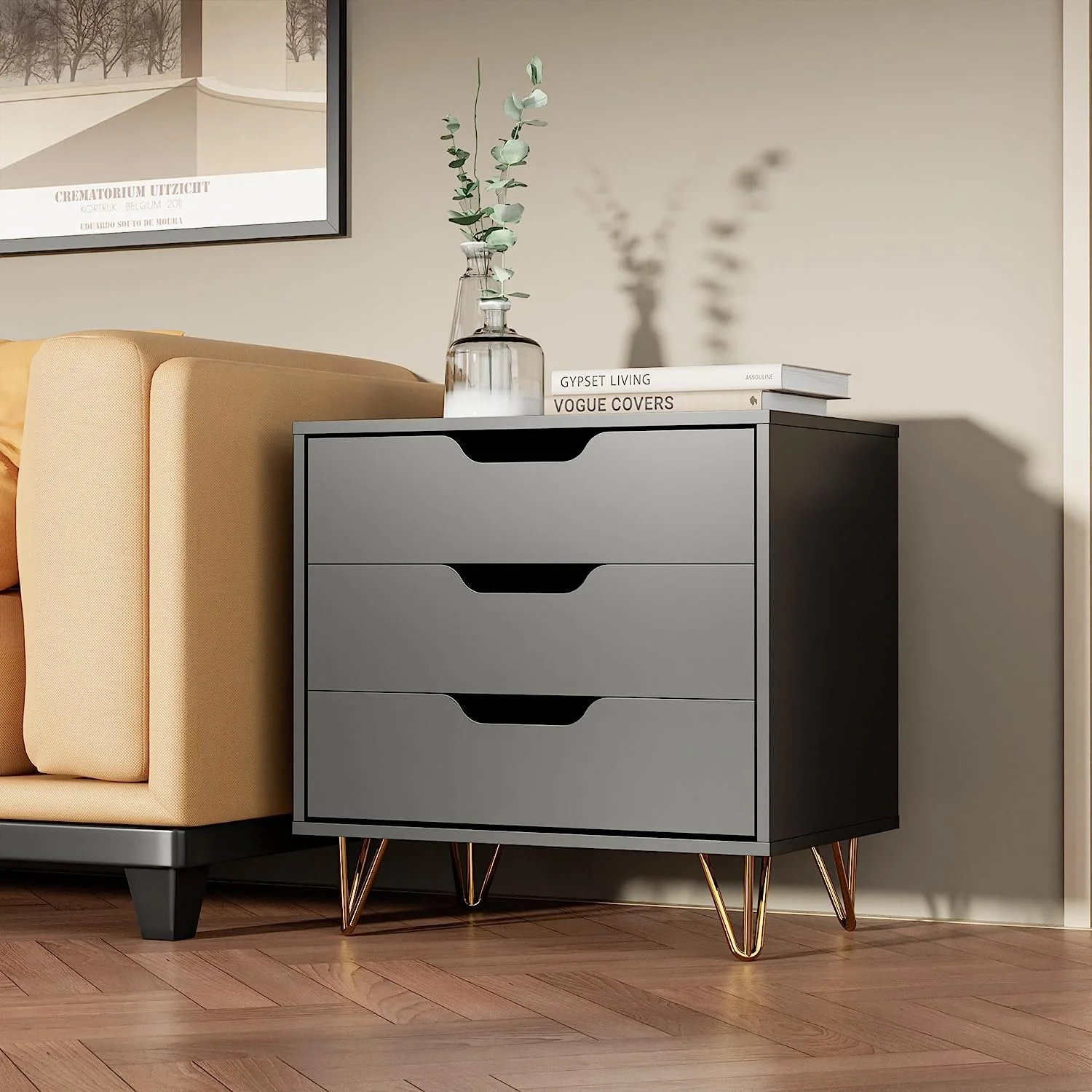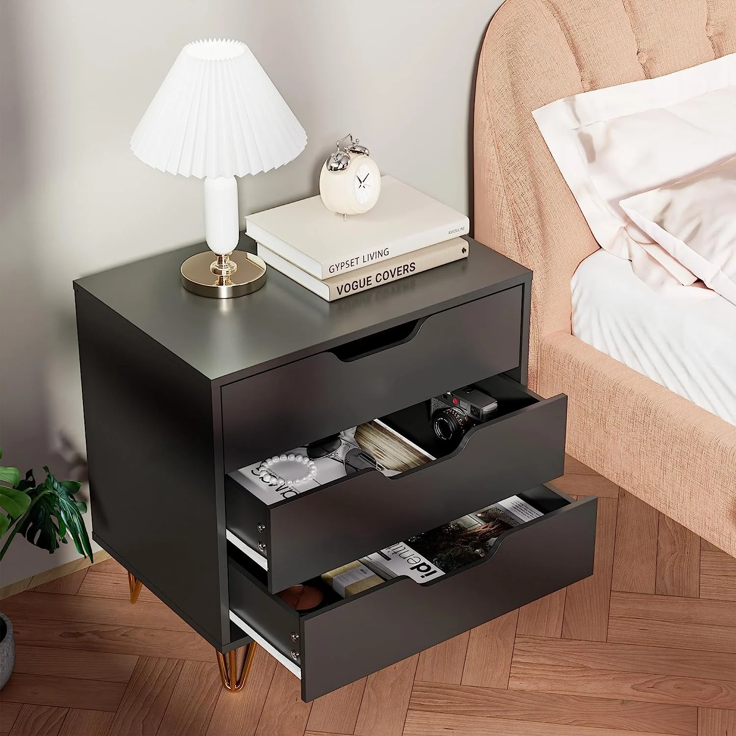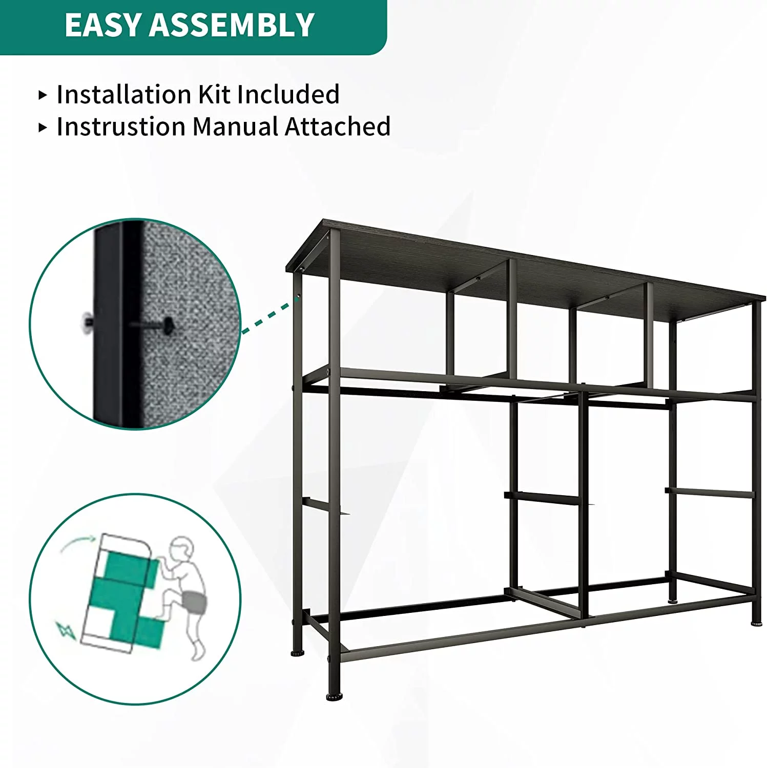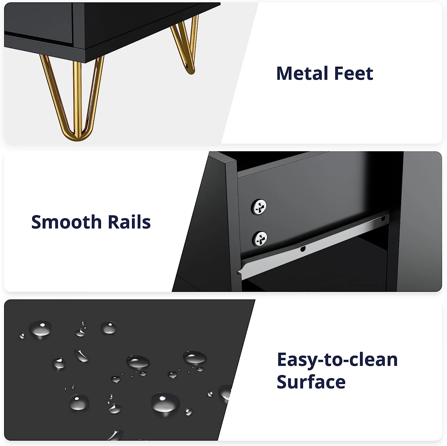 NNV California King Size Platform Metal Bed Frame with Leather Upholstered Headboard, Black