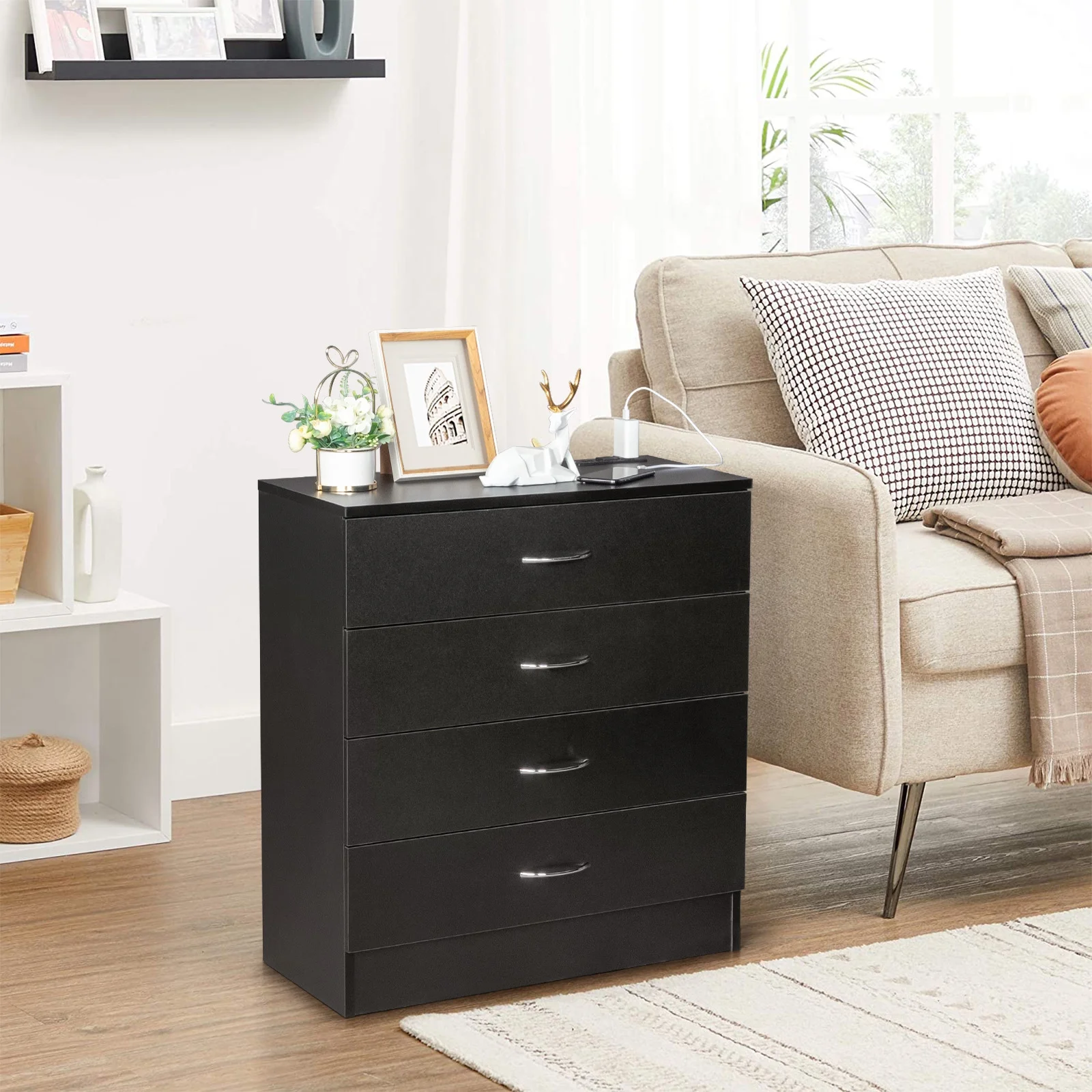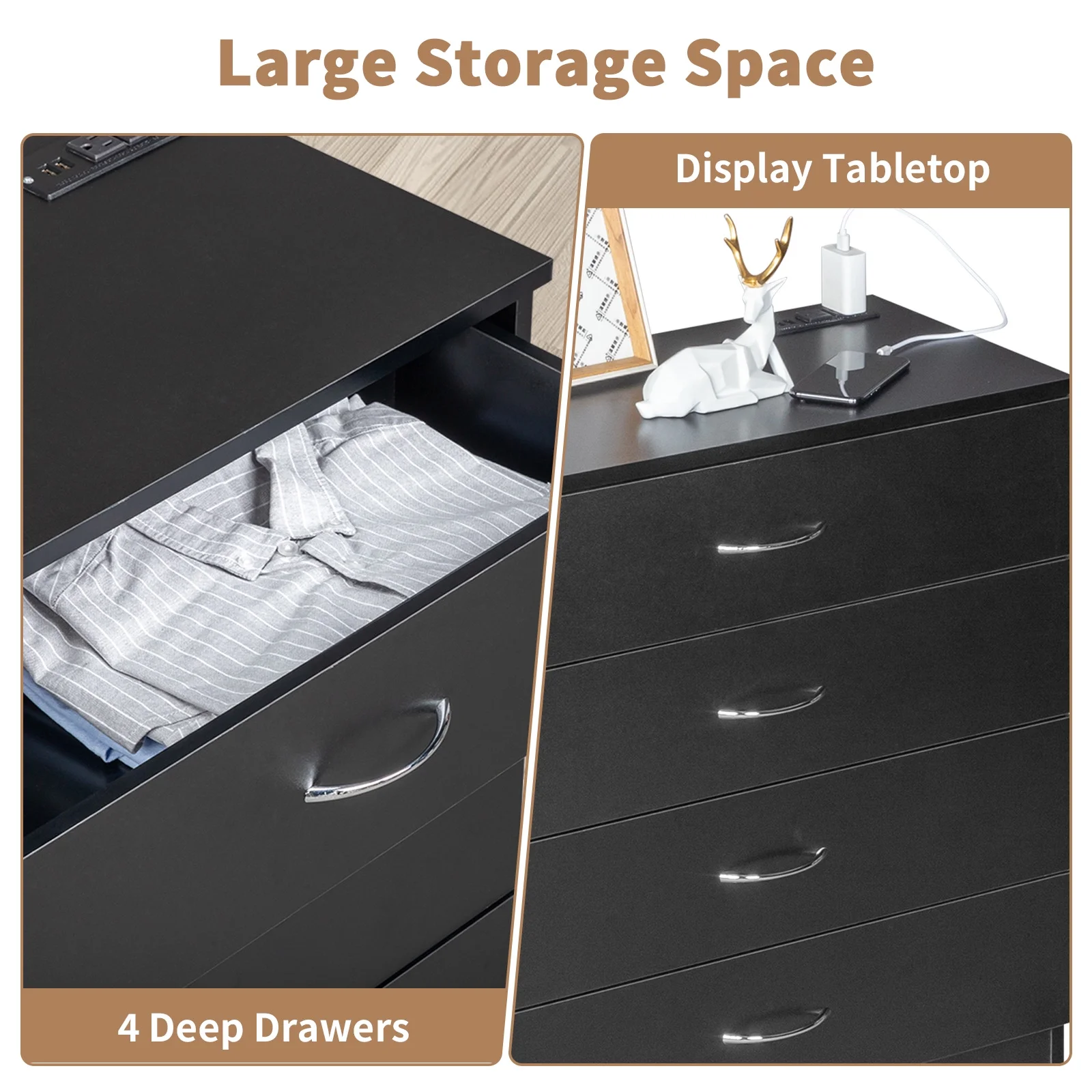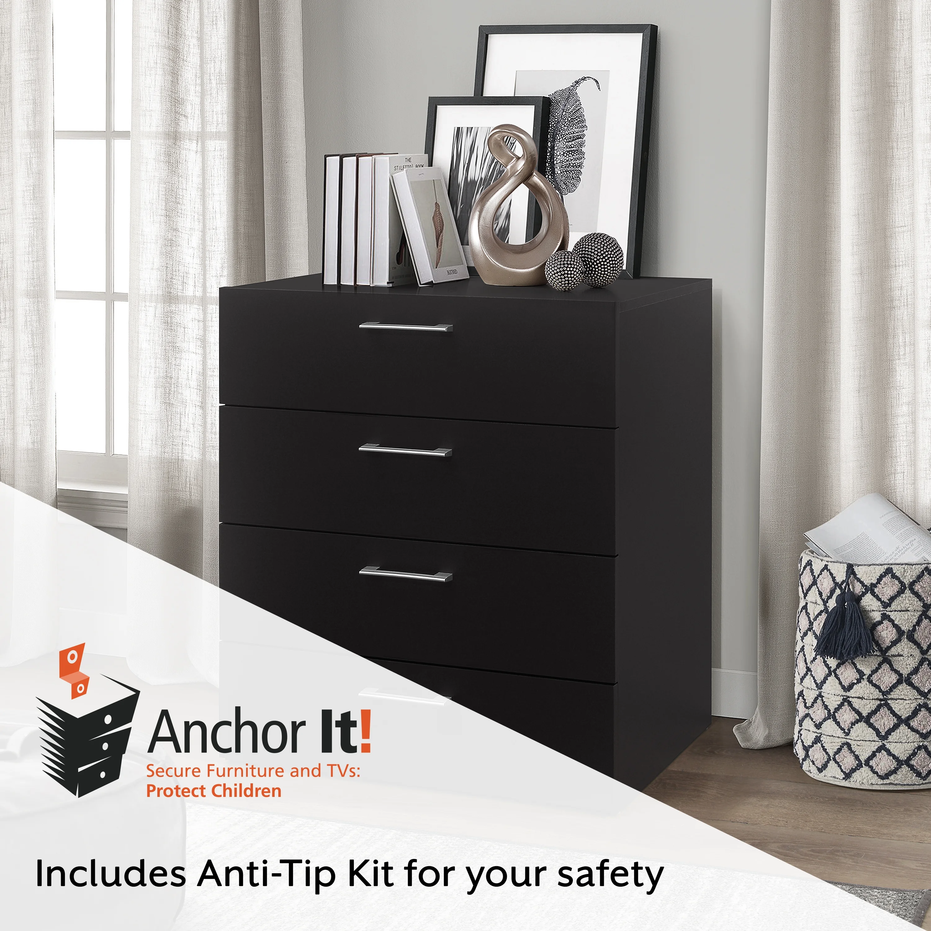 Home Square 2 Piece Furniture Set with Dresser and Chest in Black Woodgrain