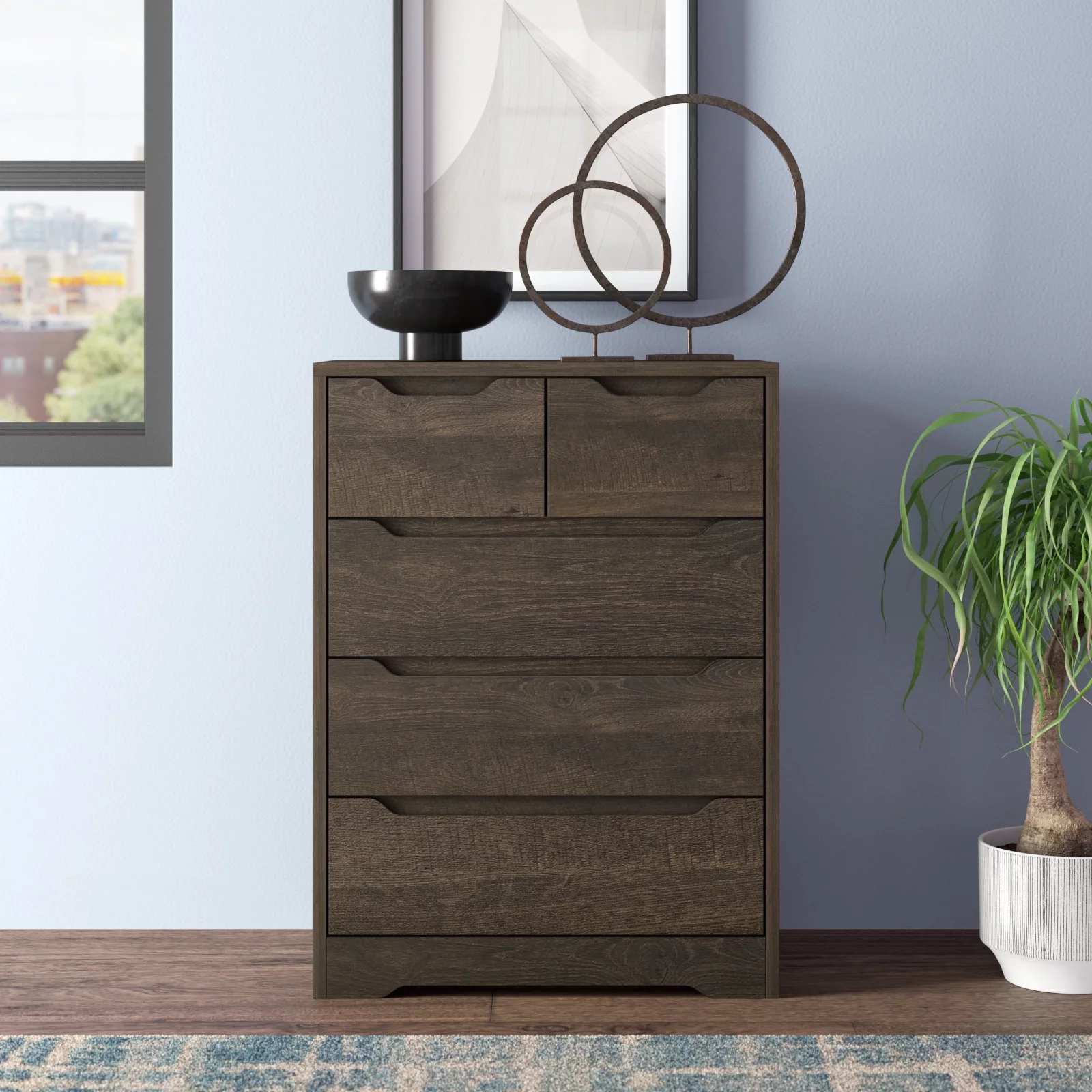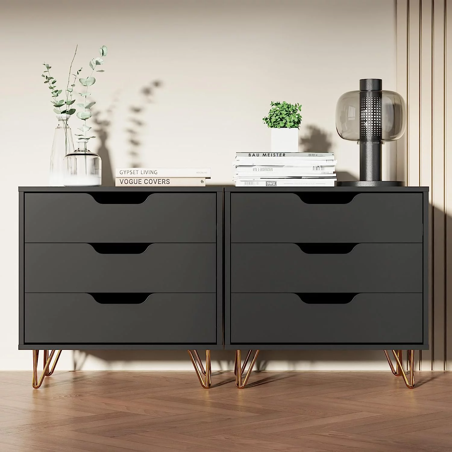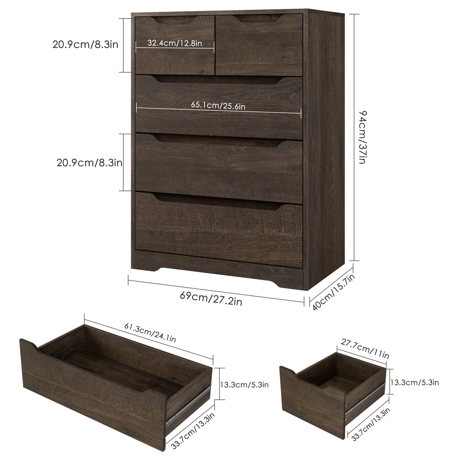 Home Square 2 Piece Furniture Set with Dresser and Chest in Black Woodgrain