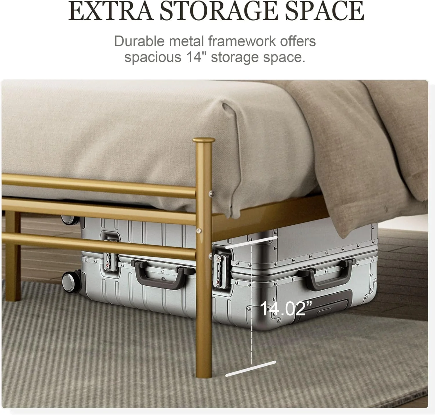 Boyd Sleep 14" Platform Metal Bed Frame with Under Bed Storage, Tool-Free Assembly, Heavy Duty, California King