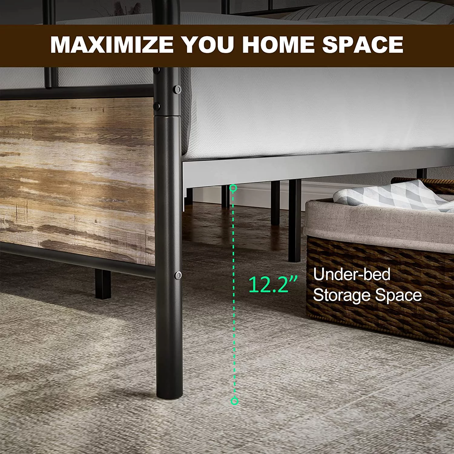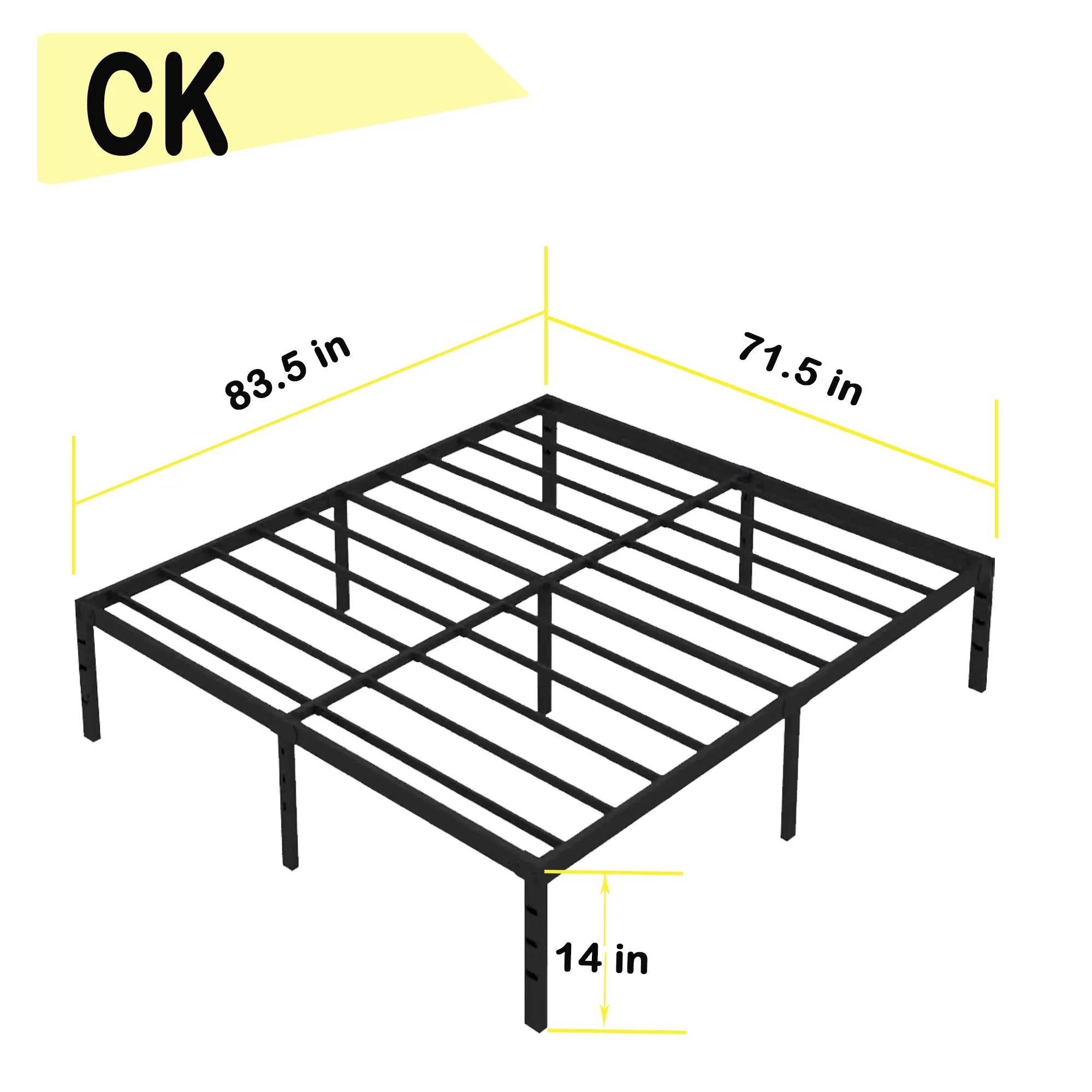 Rooflare 18'' Heavy Duty California King Metal Platform Bed Frame for Adult,Black