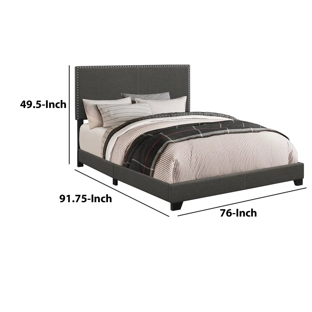 Cleo California King Bed Frame, Solid Wood, Soft Gray Linen Upholstery- Saltoro Sherpi
