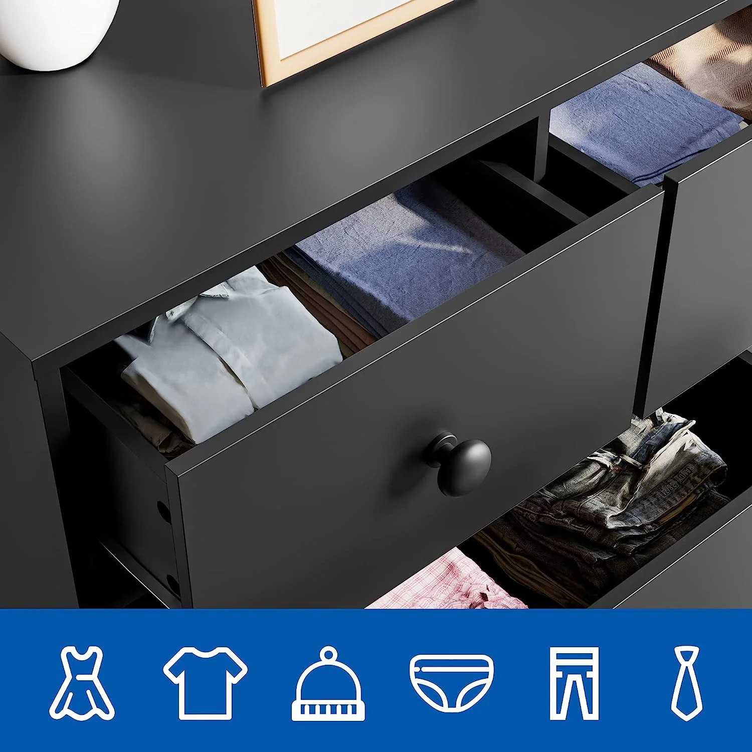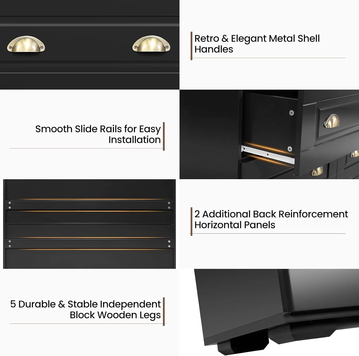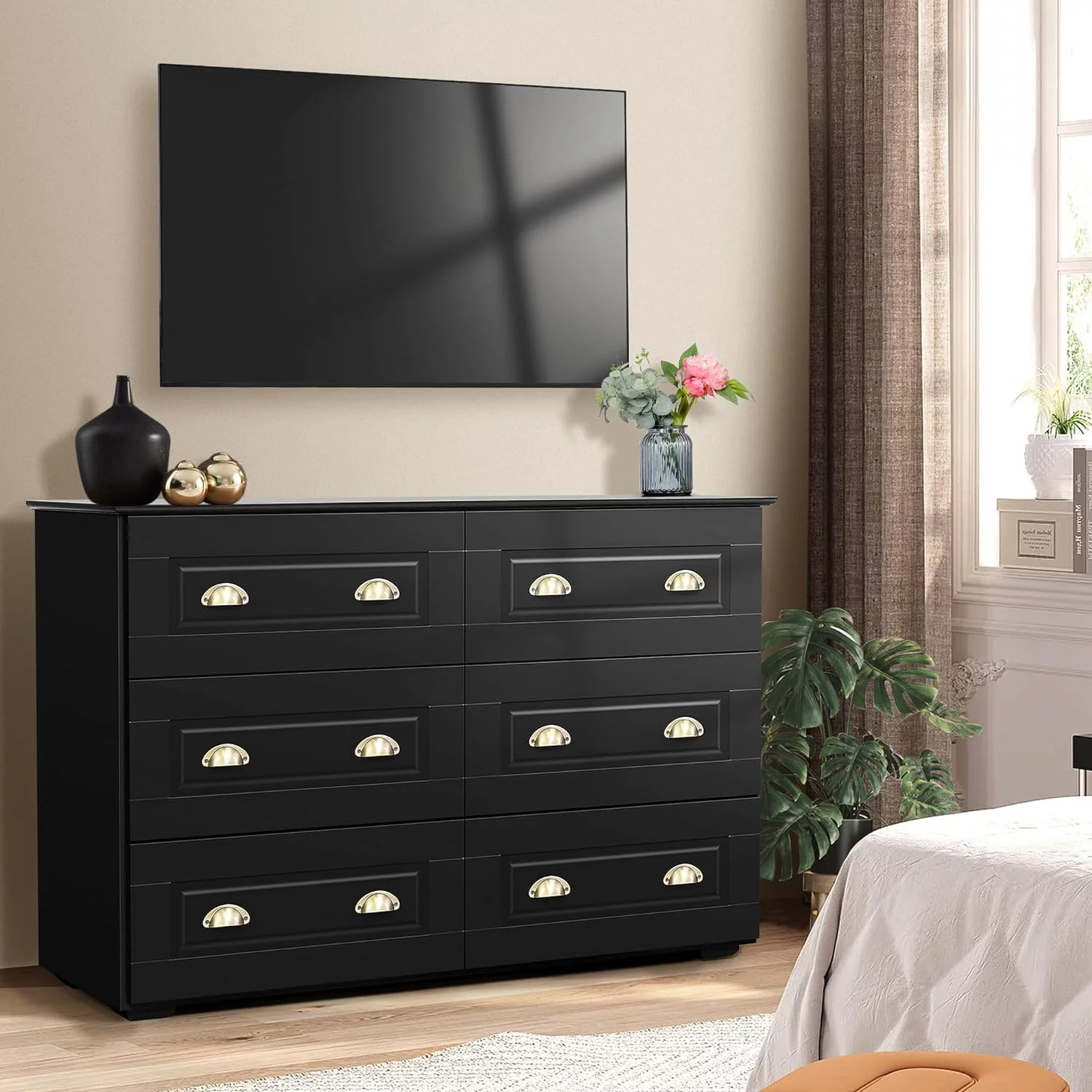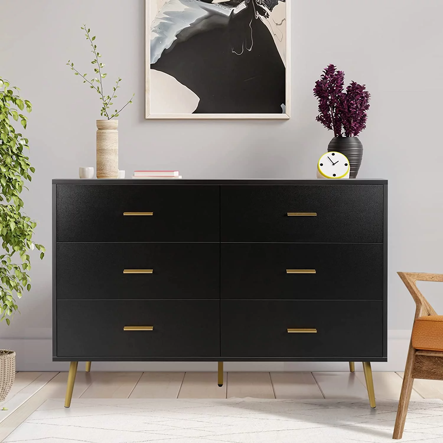 REHOOPEX Black Dresser for Bedroom, Wood Dressers & Colthes Chests of 6 Drawers for Home