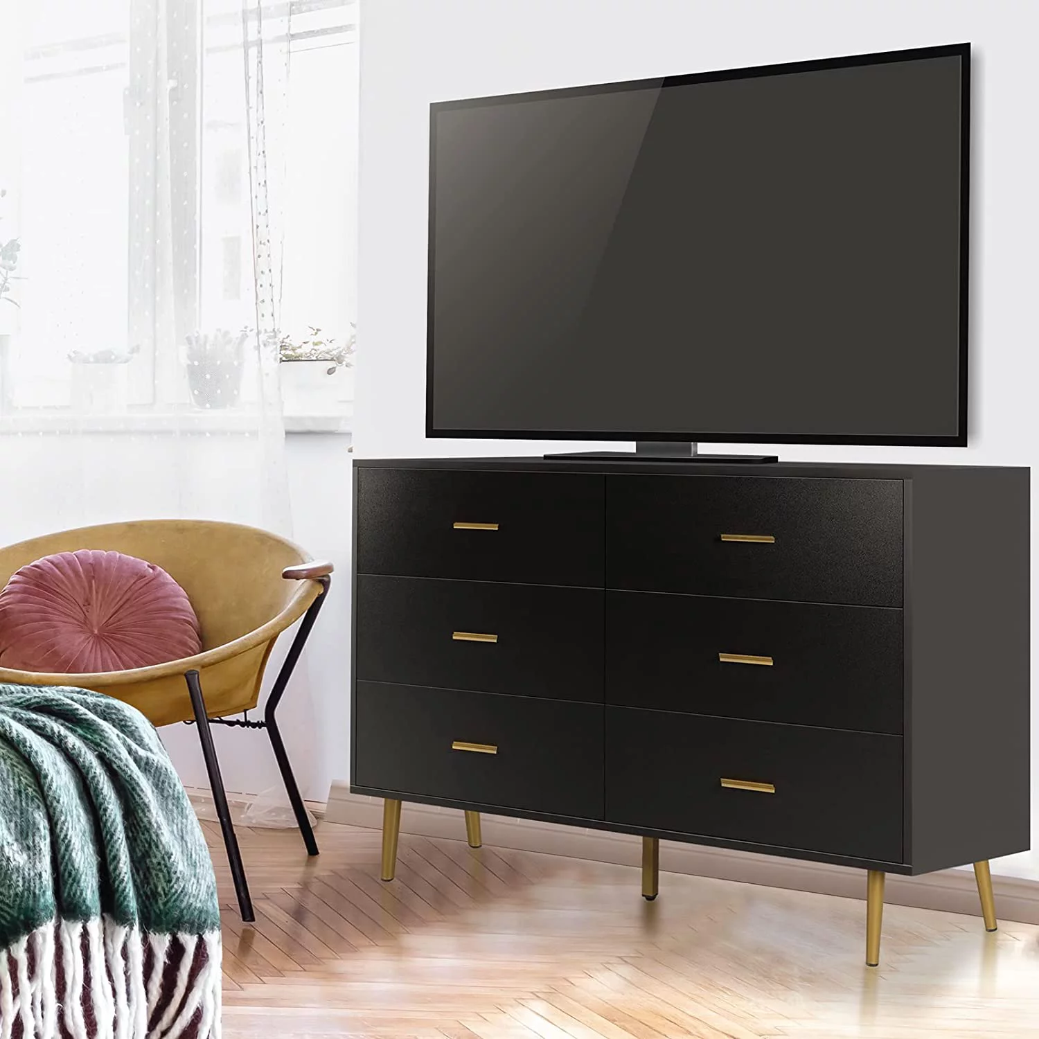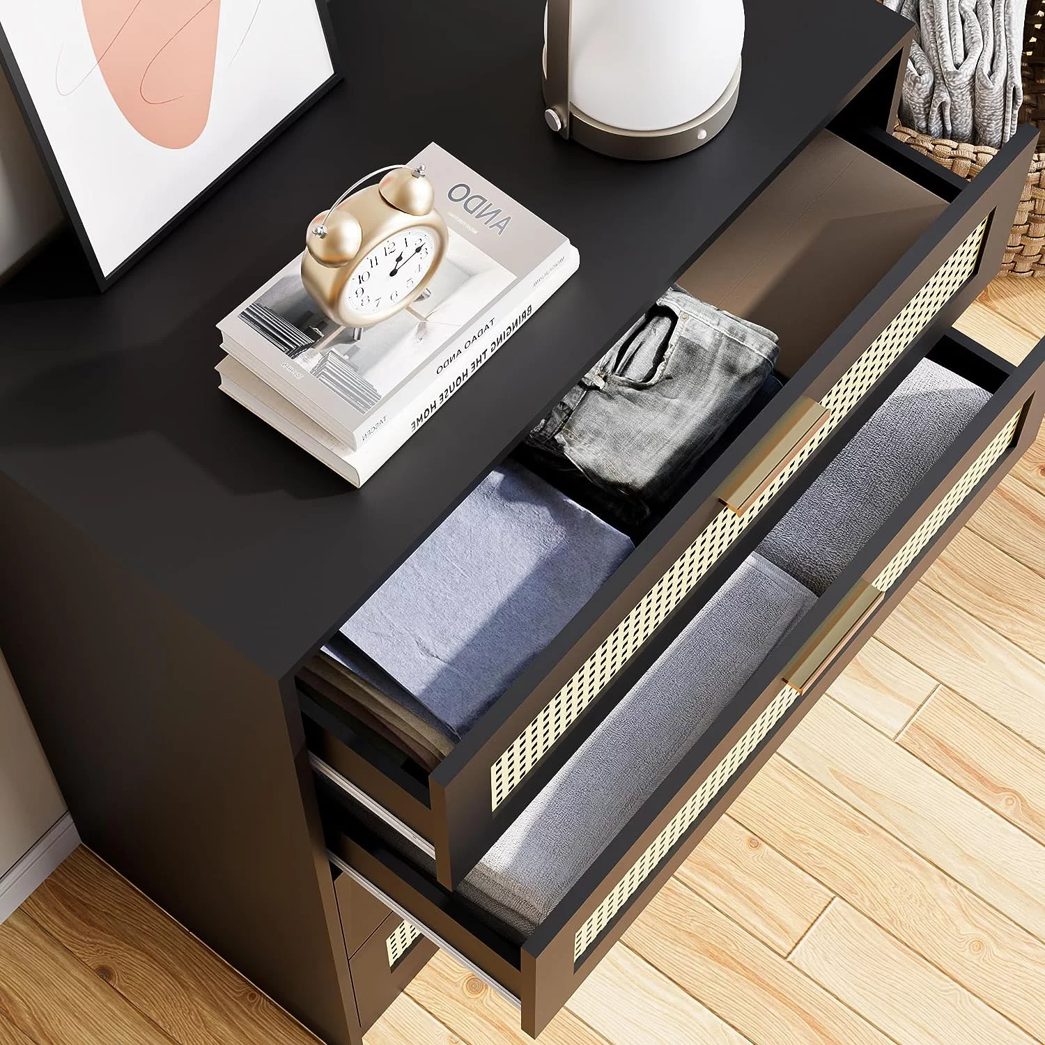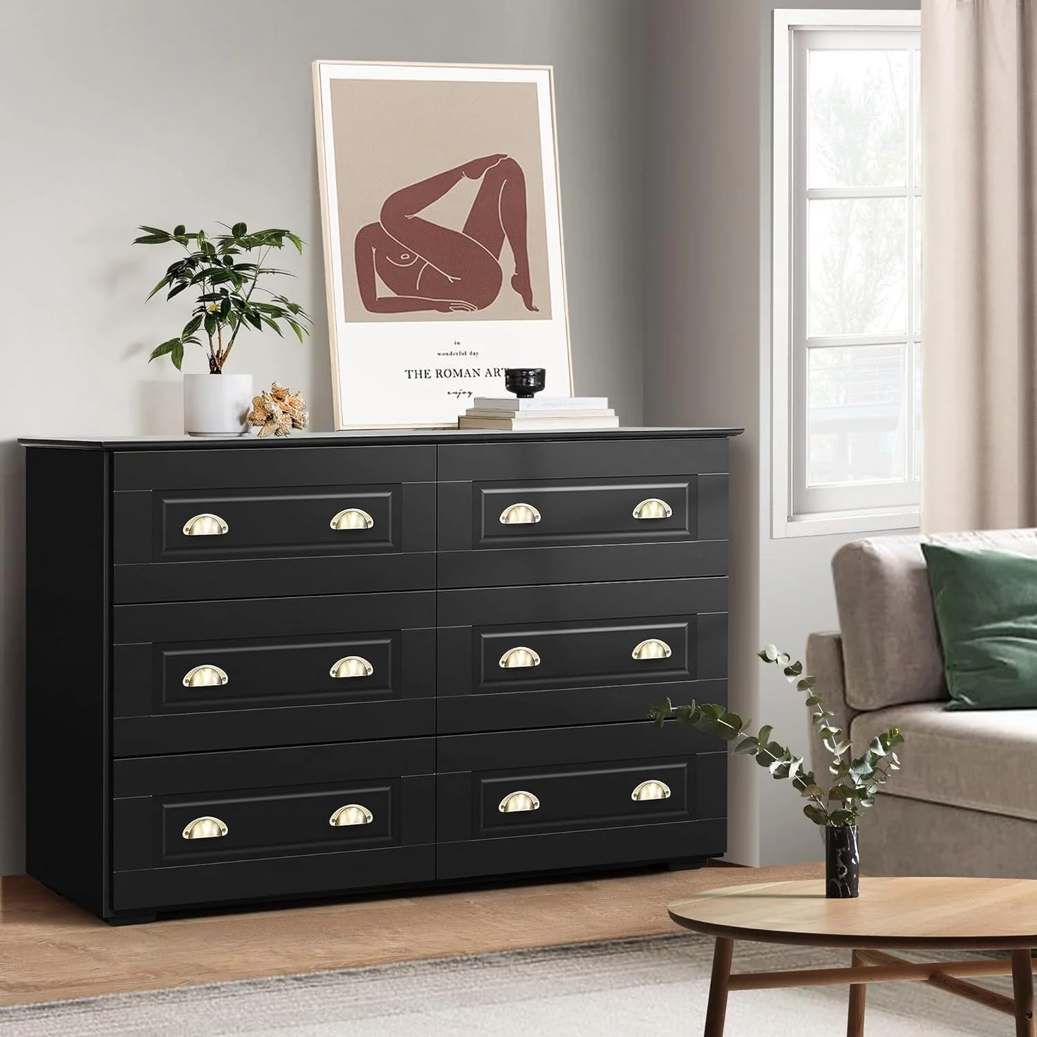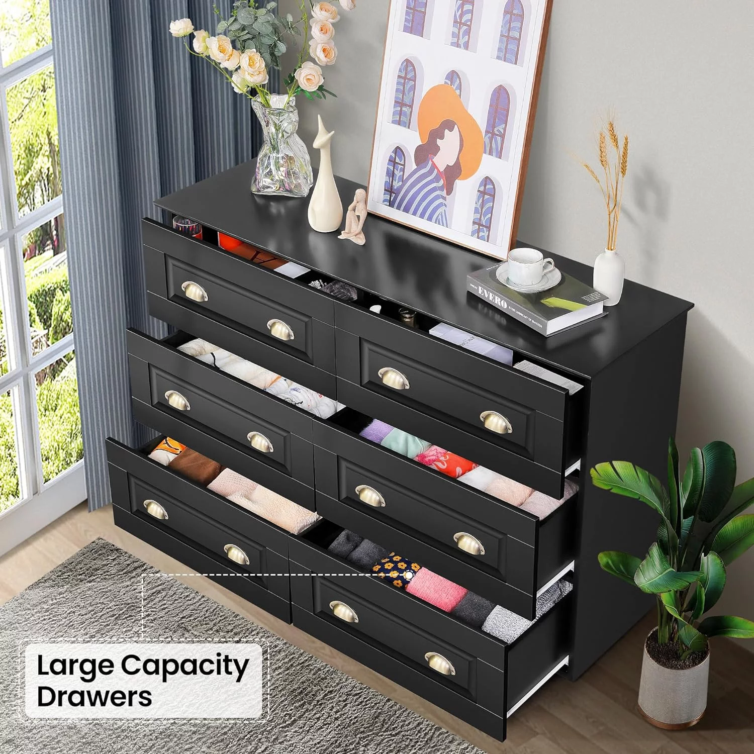 REHOOPEX Black Dresser for Bedroom, Wood Dressers & Colthes Chests of 6 Drawers for Home