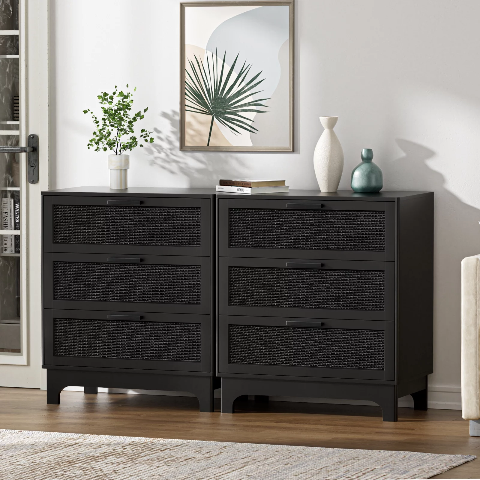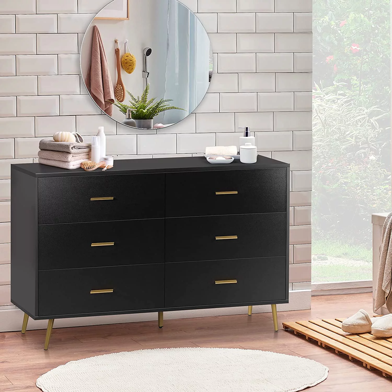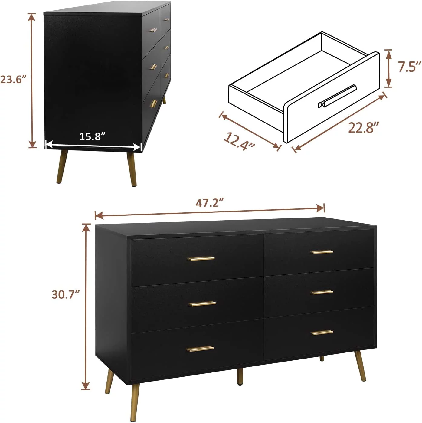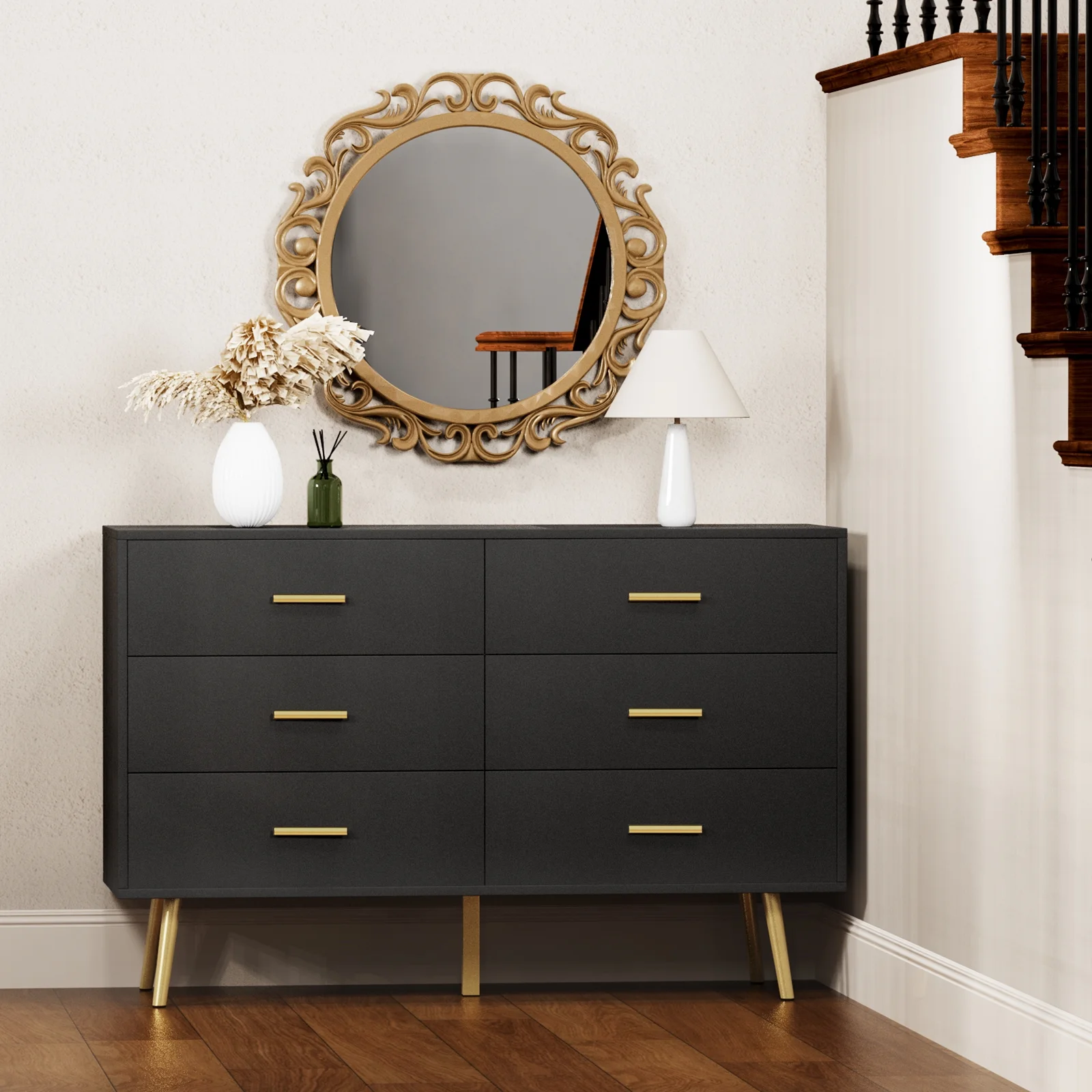 REHOOPEX Black Dresser for Bedroom, Wood Dressers & Colthes Chests of 6 Drawers for Home