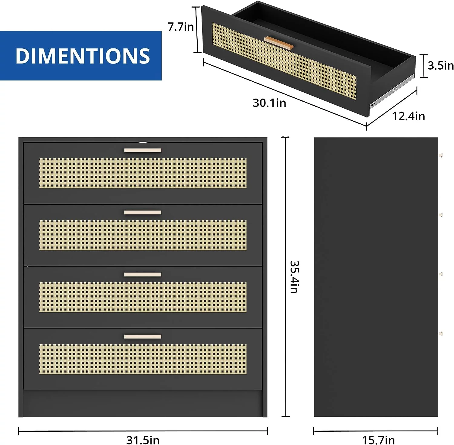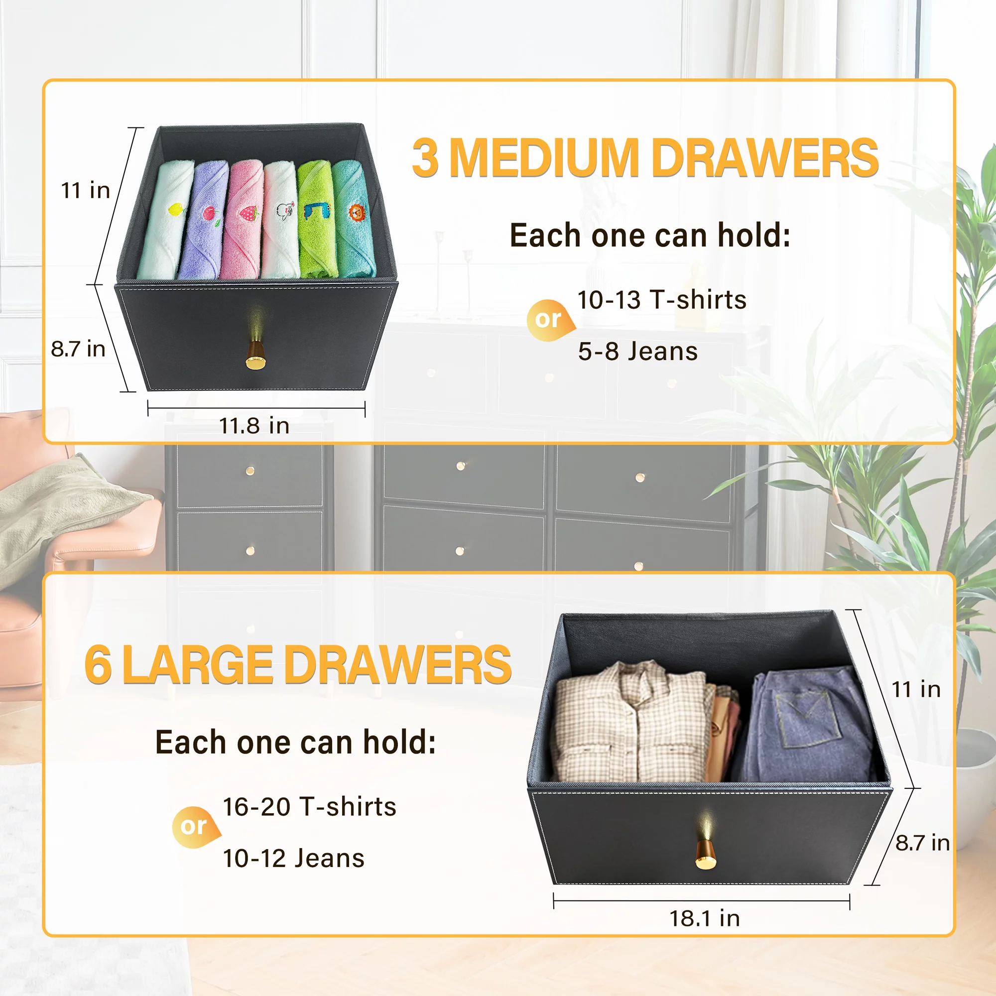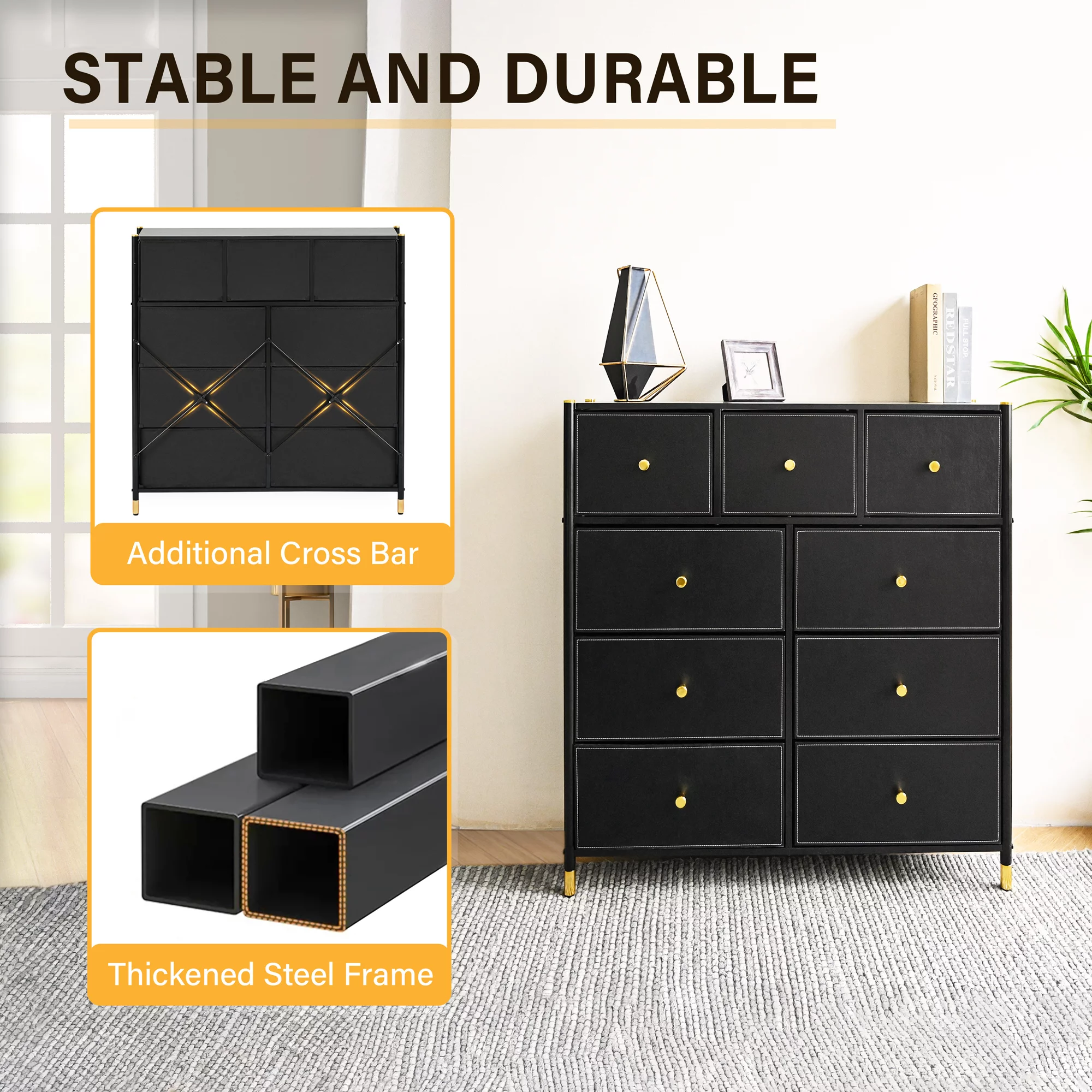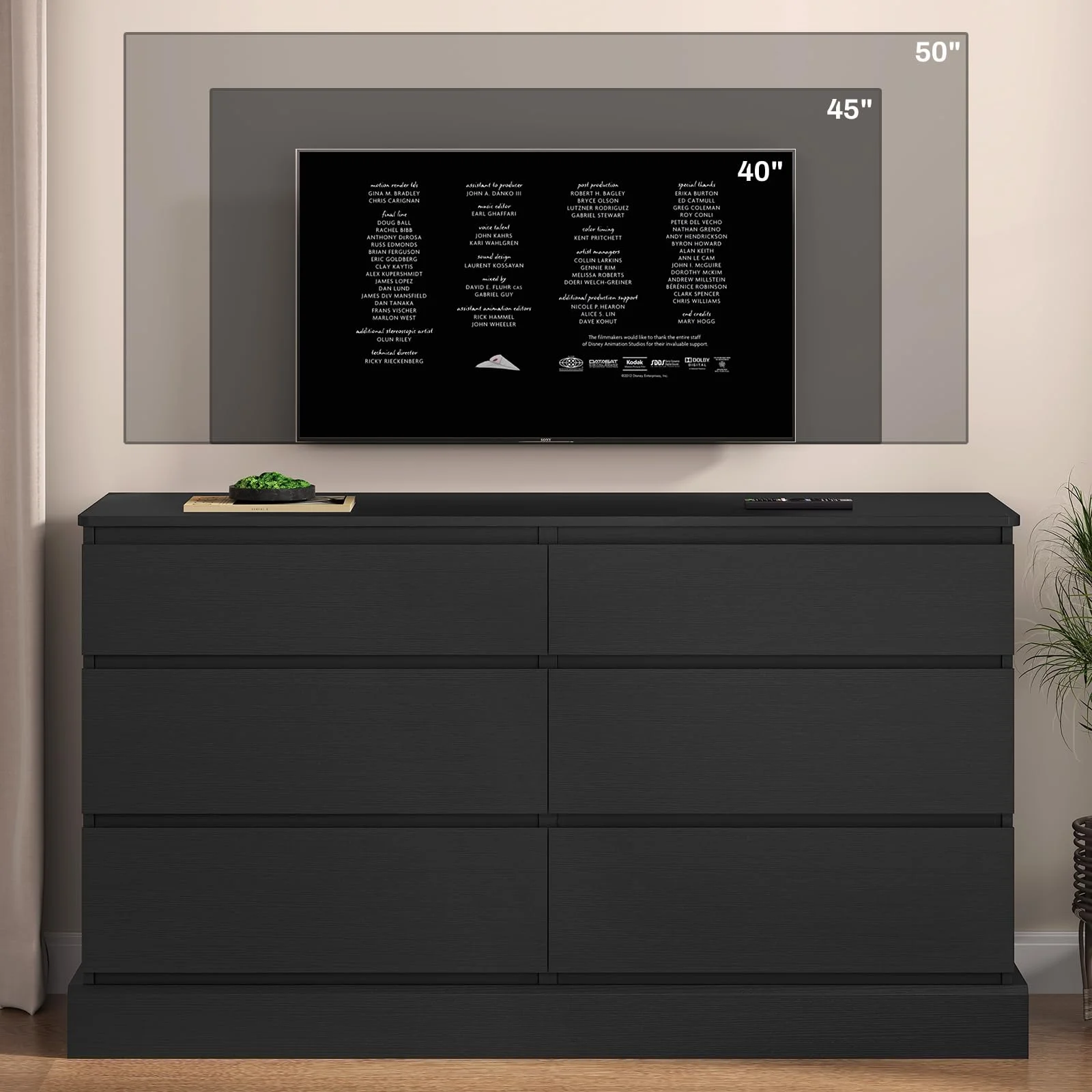REHOOPEX Black Dresser for Bedroom, Wood Dressers & Colthes Chests of 6 Drawers for Home