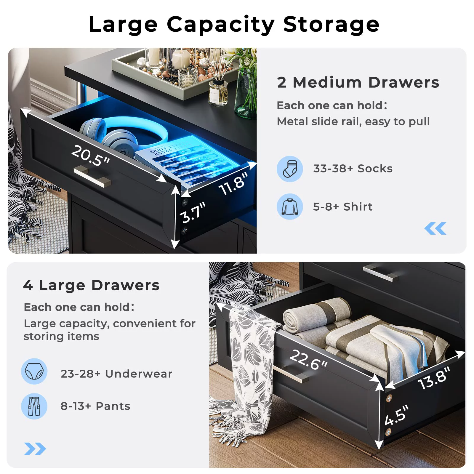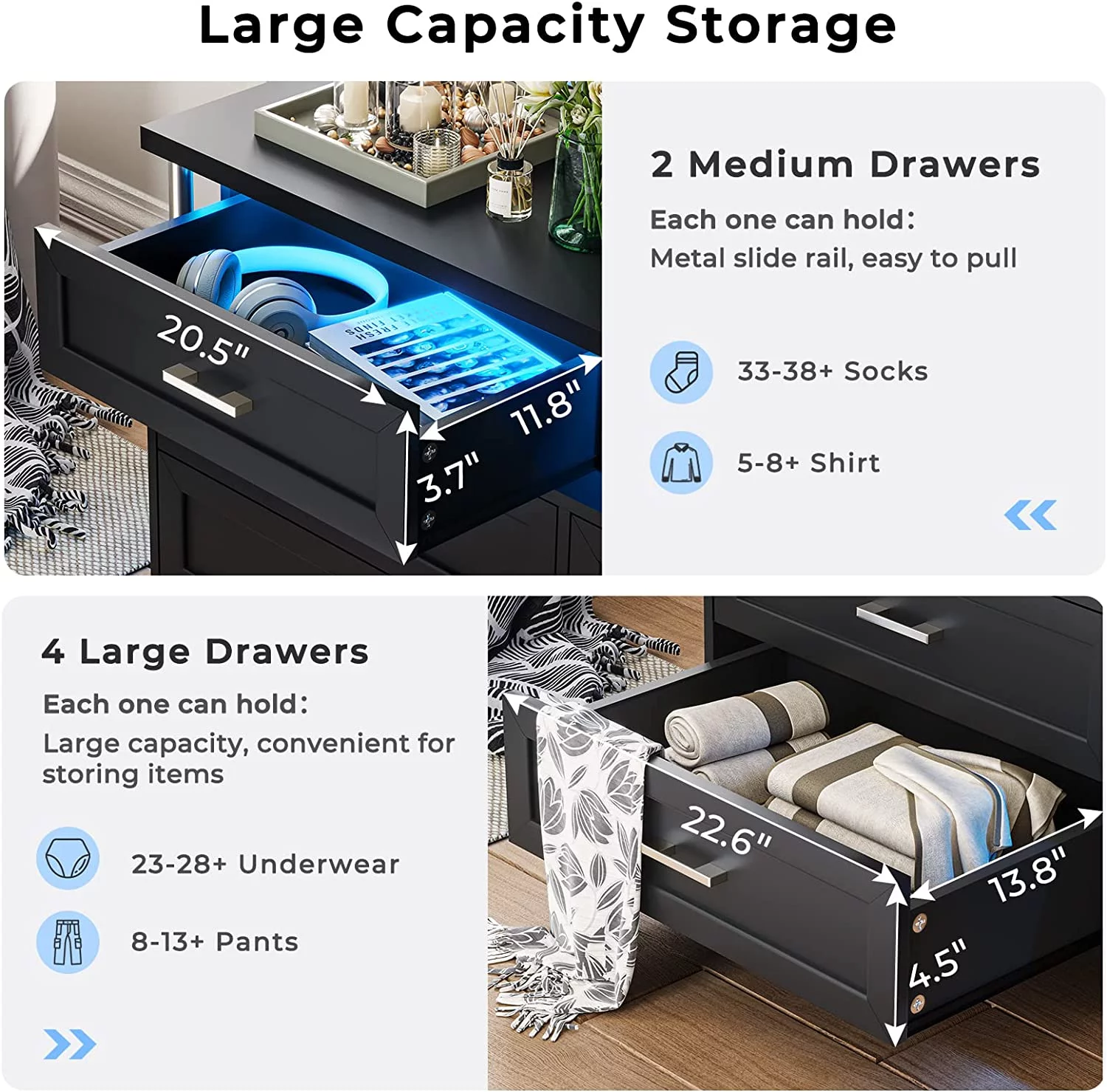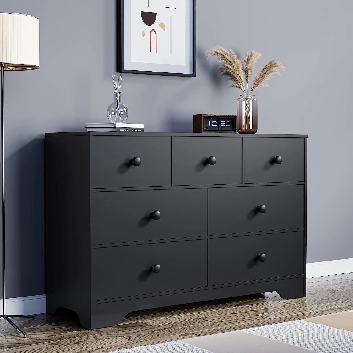 EPHEX LED Black Dresser for Bedroom,7 Drawer Dressers, Dressers and Chests of Drawers