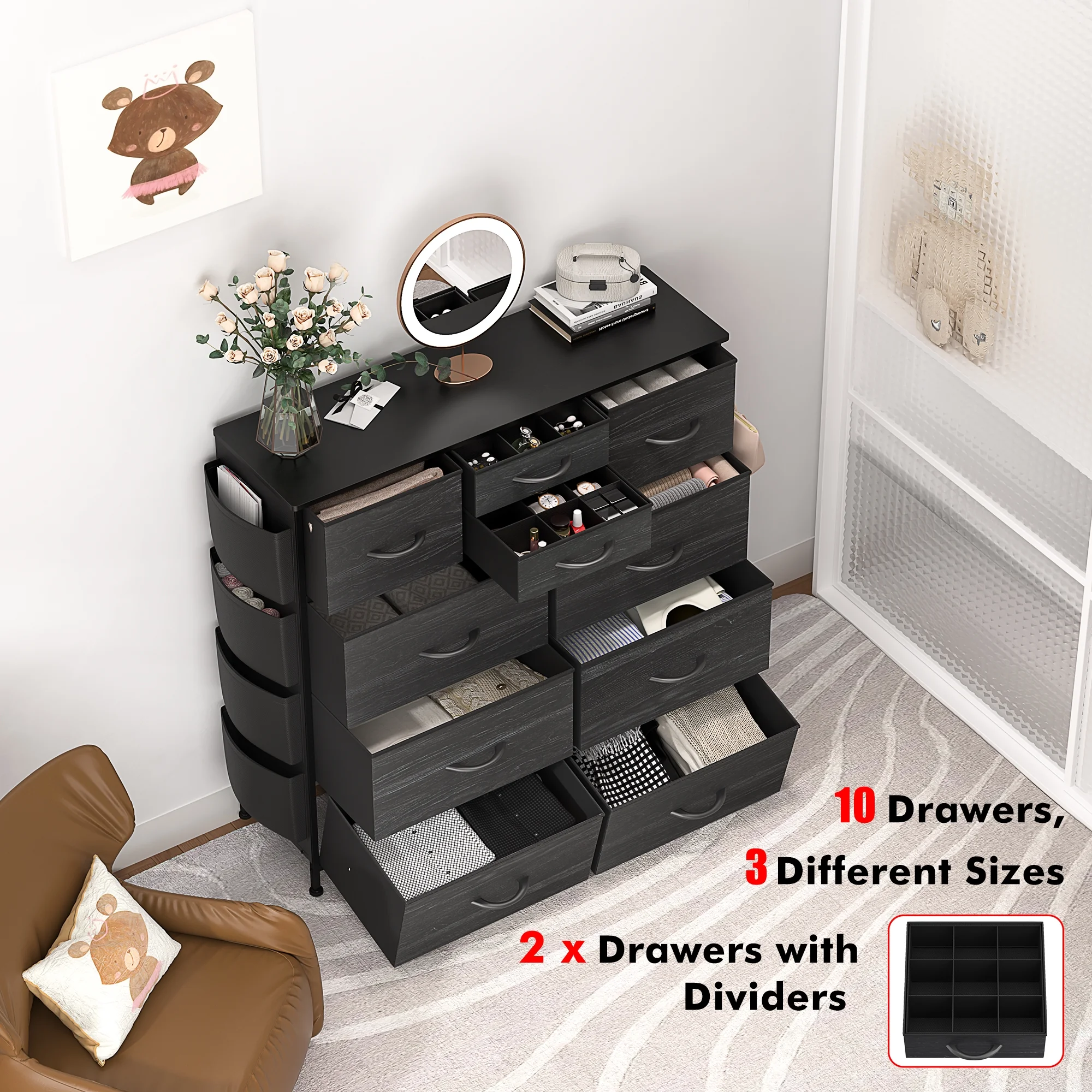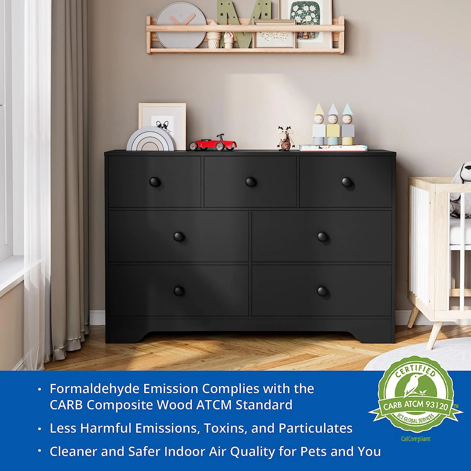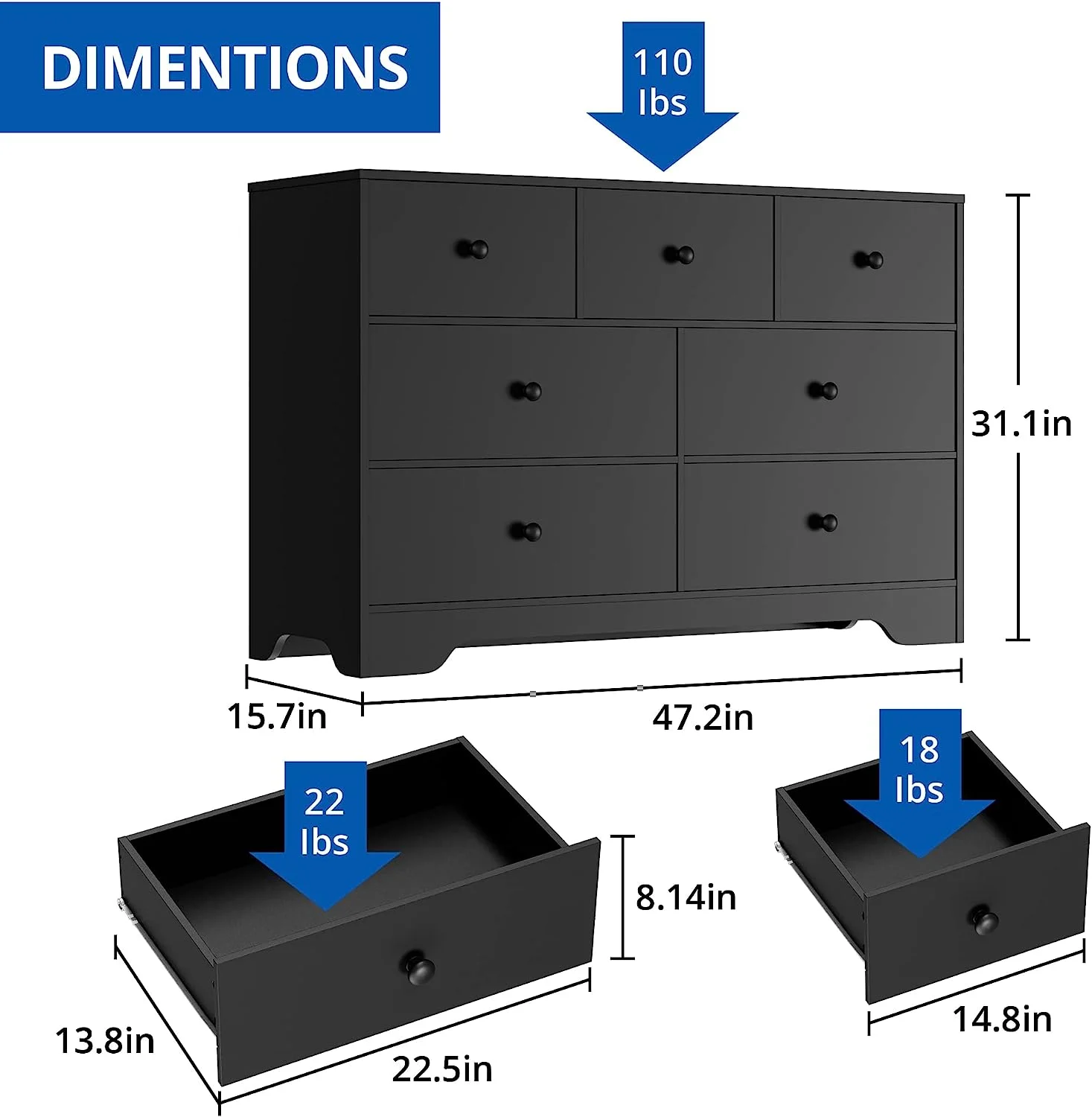EPHEX LED Black Dresser for Bedroom,7 Drawer Dressers, Dressers and Chests of Drawers
