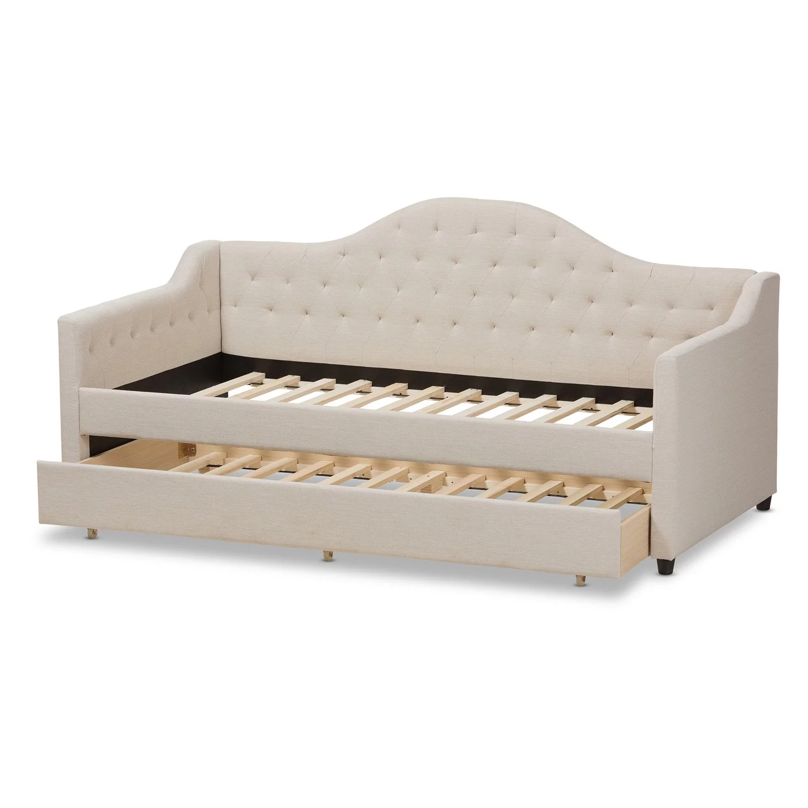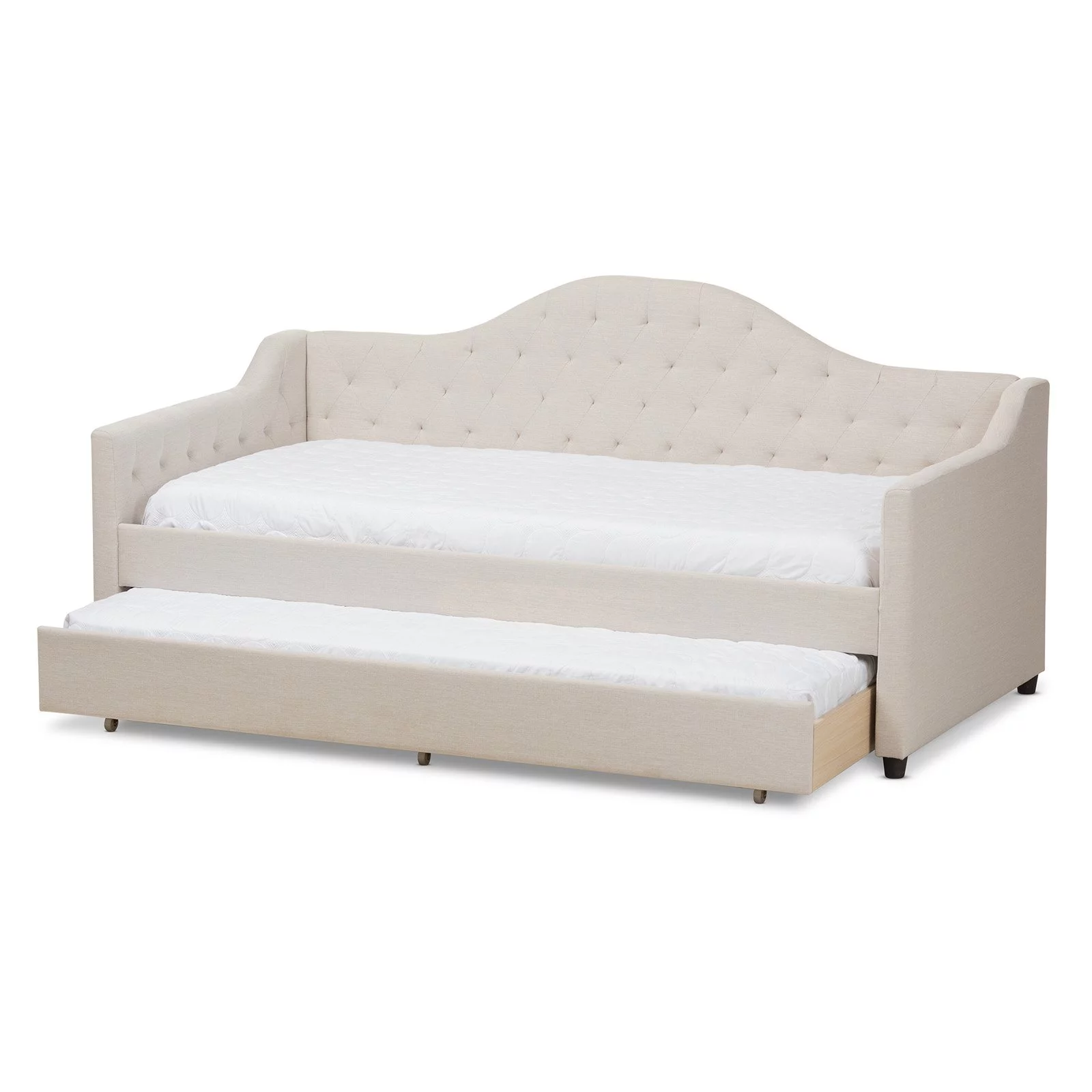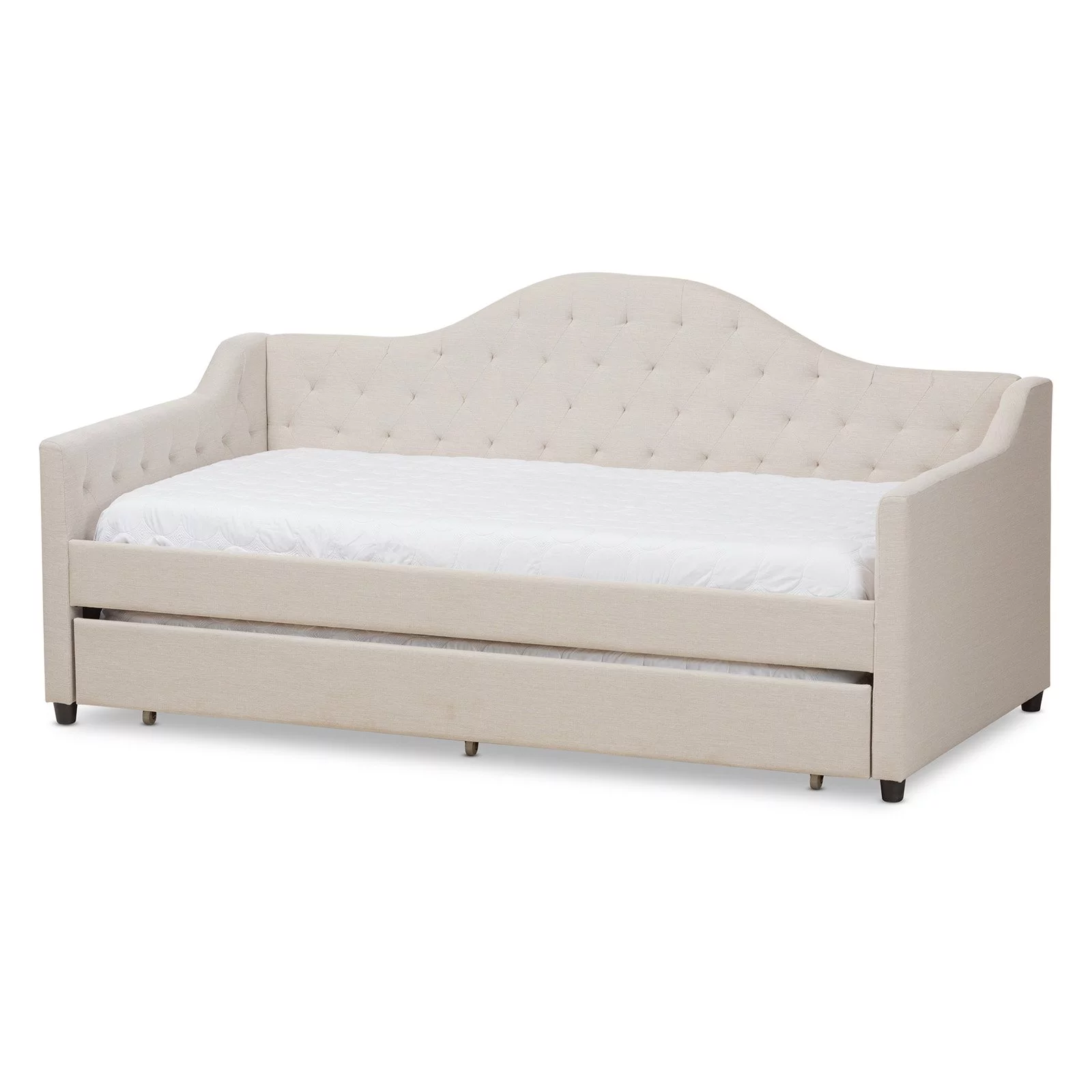 Baxton Studio Cherine Classic and Contemporary Fabric Upholstered Daybed with Trundle, Beige
