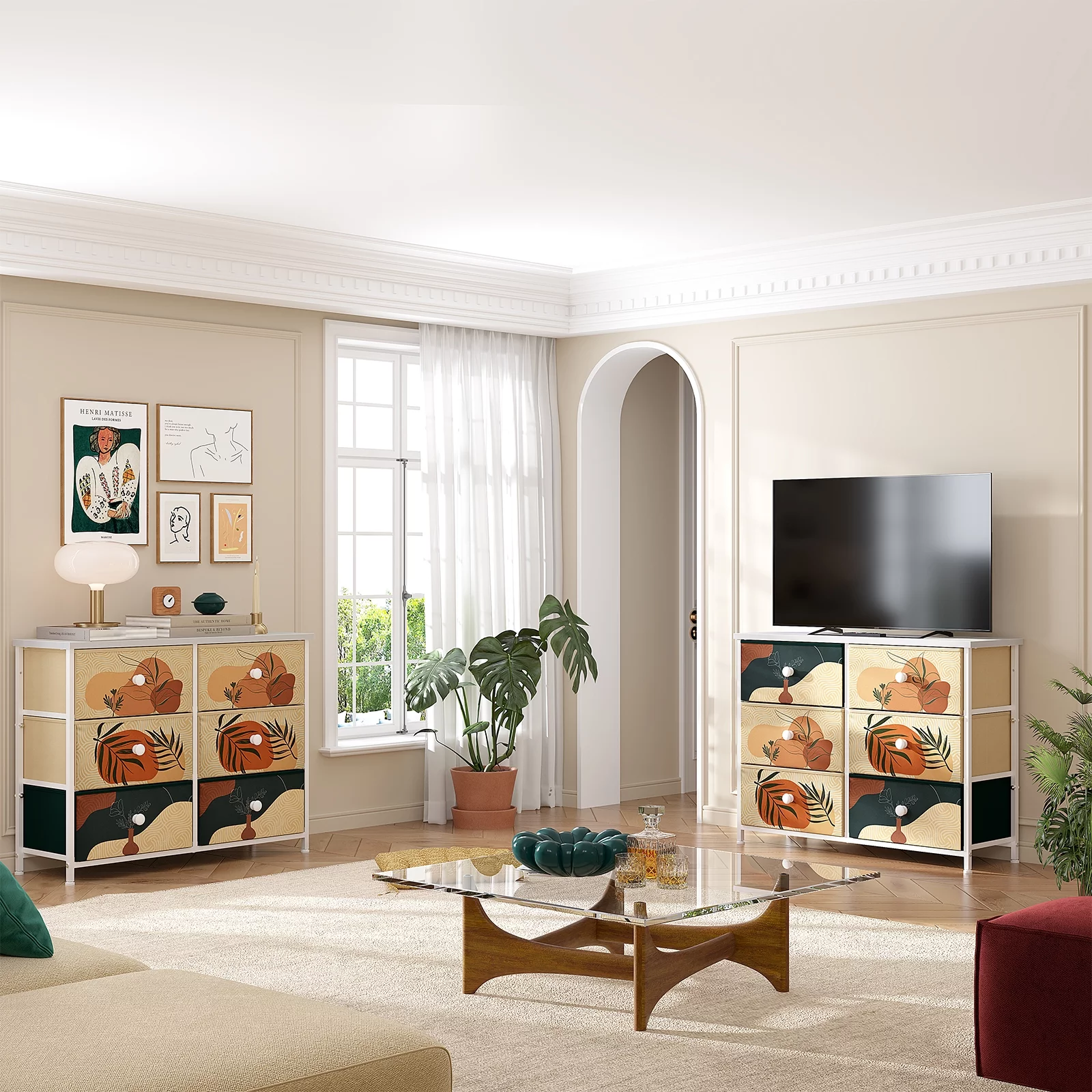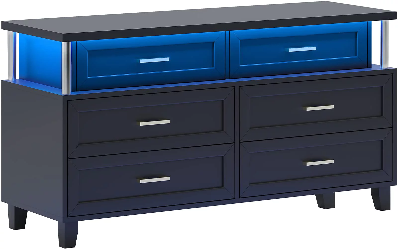 Tiptiper 6 Drawer Dresser for Bedroom,, Modern Chest of Drawers, Wood Dresser with LED Light, Black
