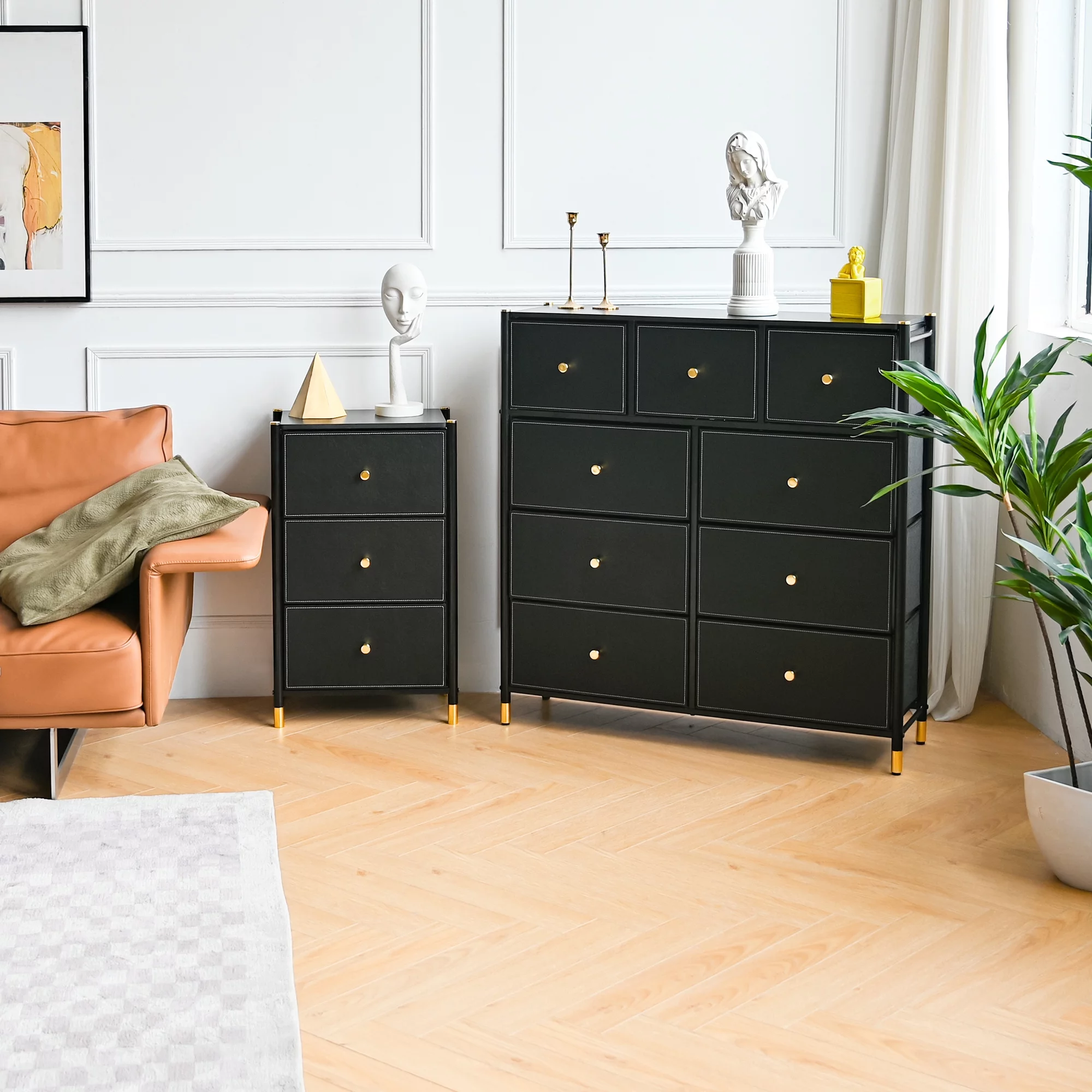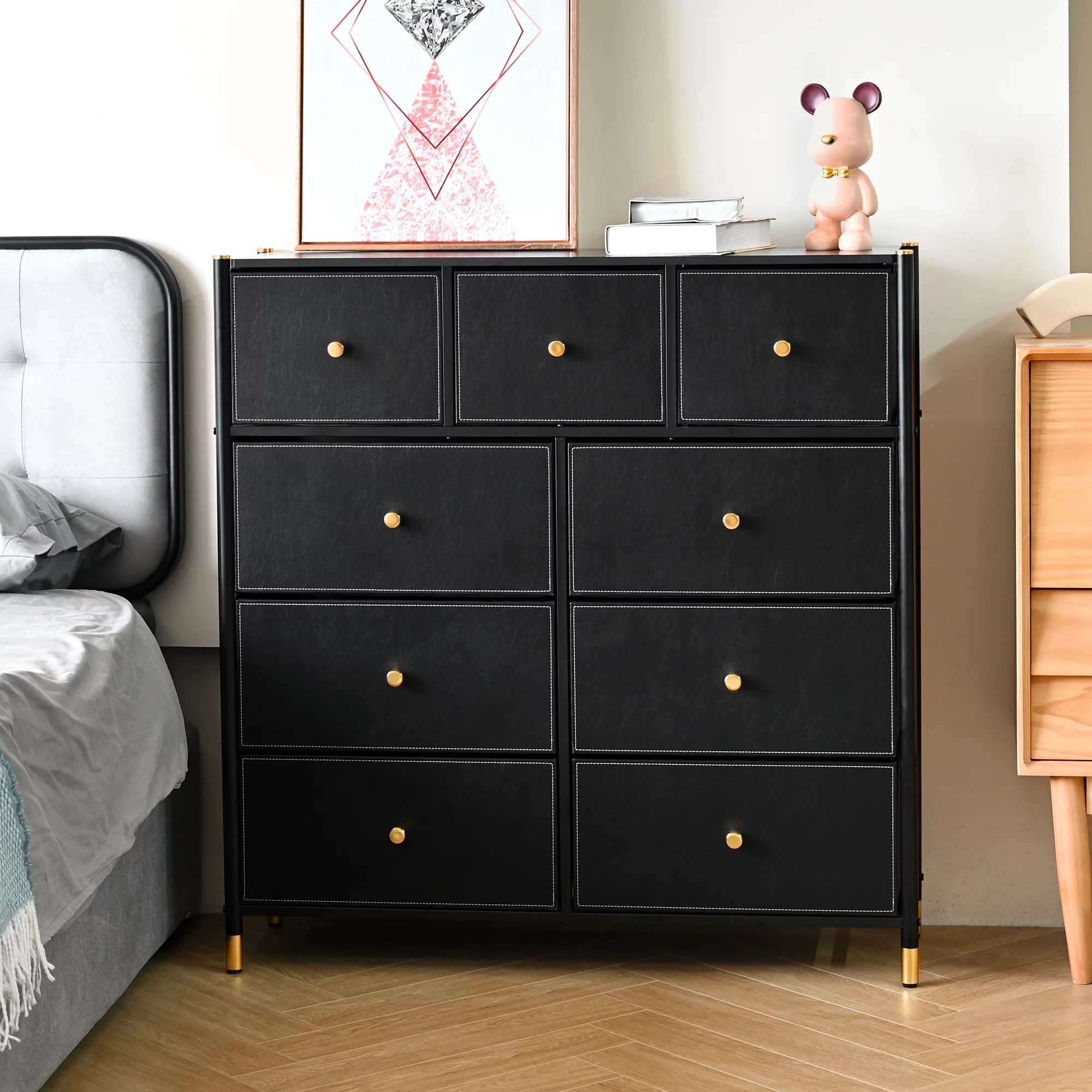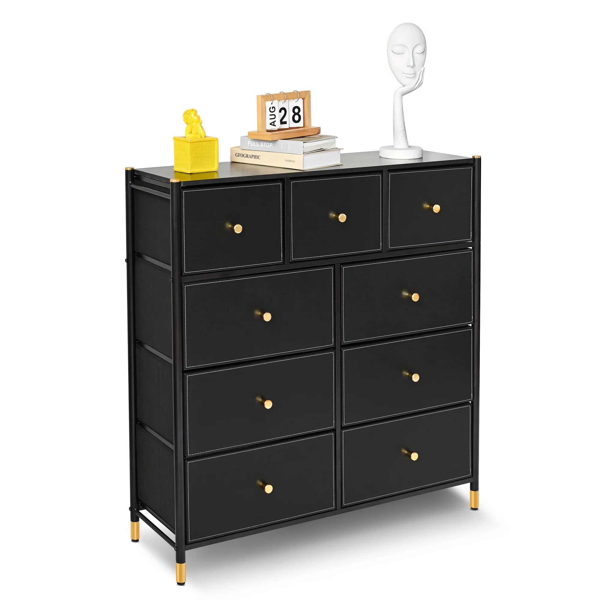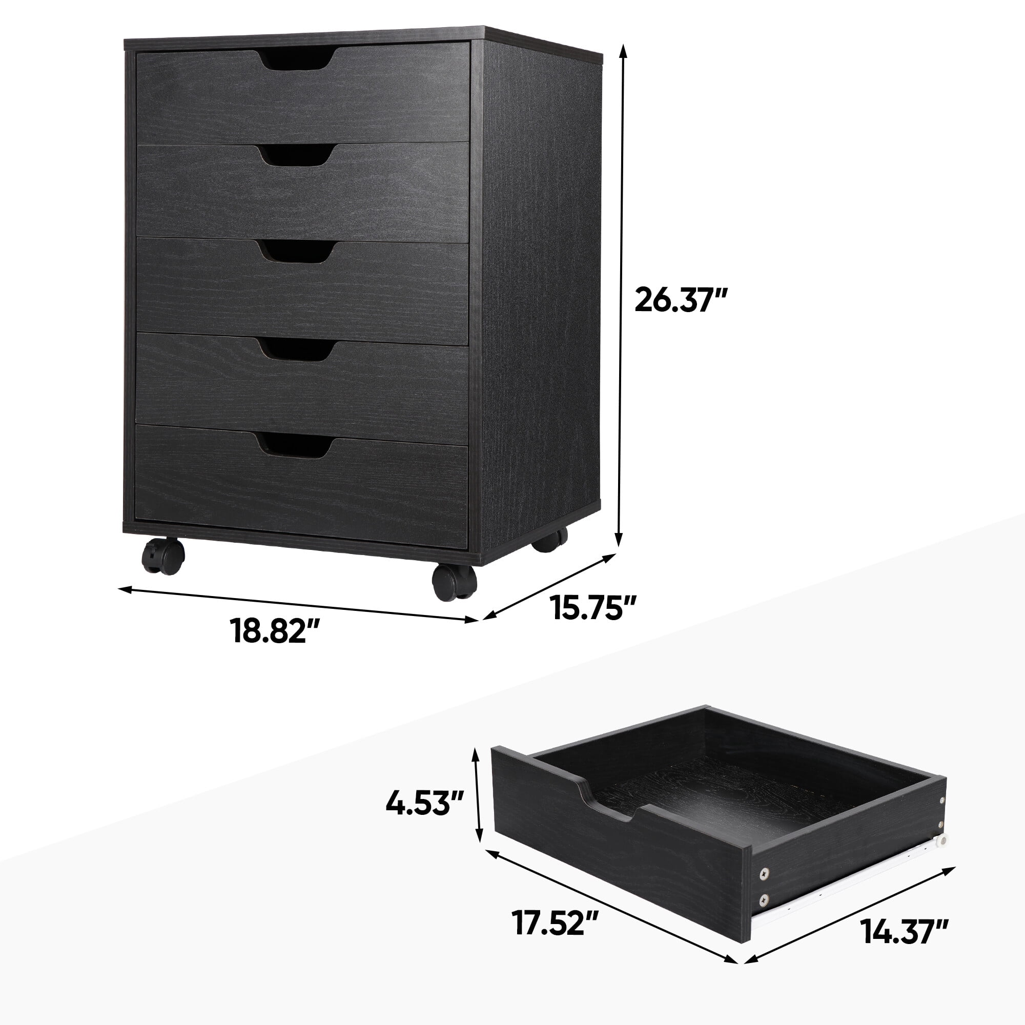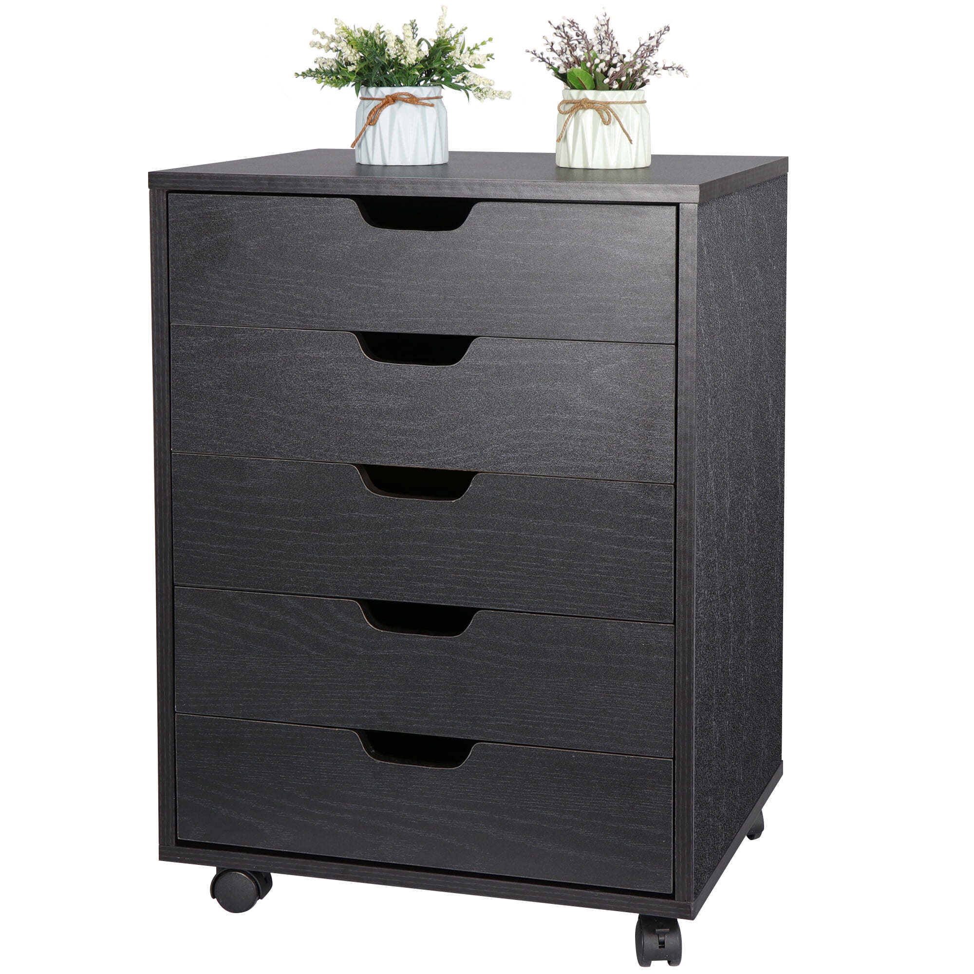 HomGarden 5-Drawer Chest Organizer, Modern MDF Storage Dresser Cabinet Lockable Casters , Black