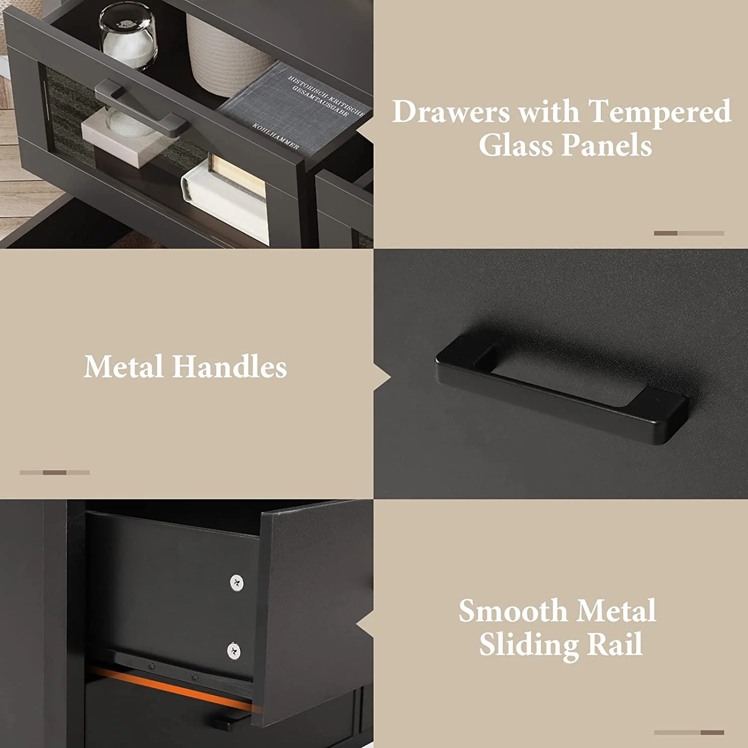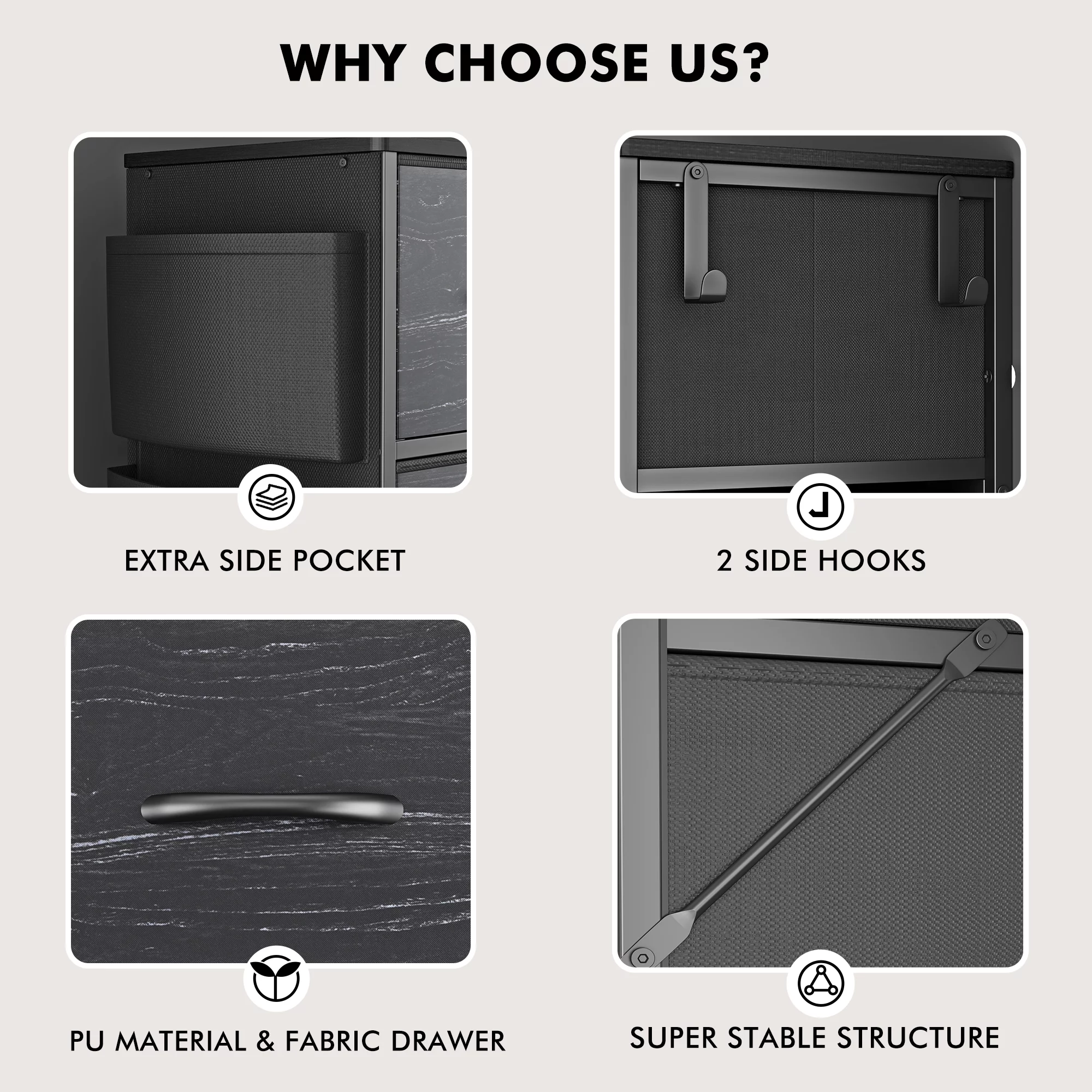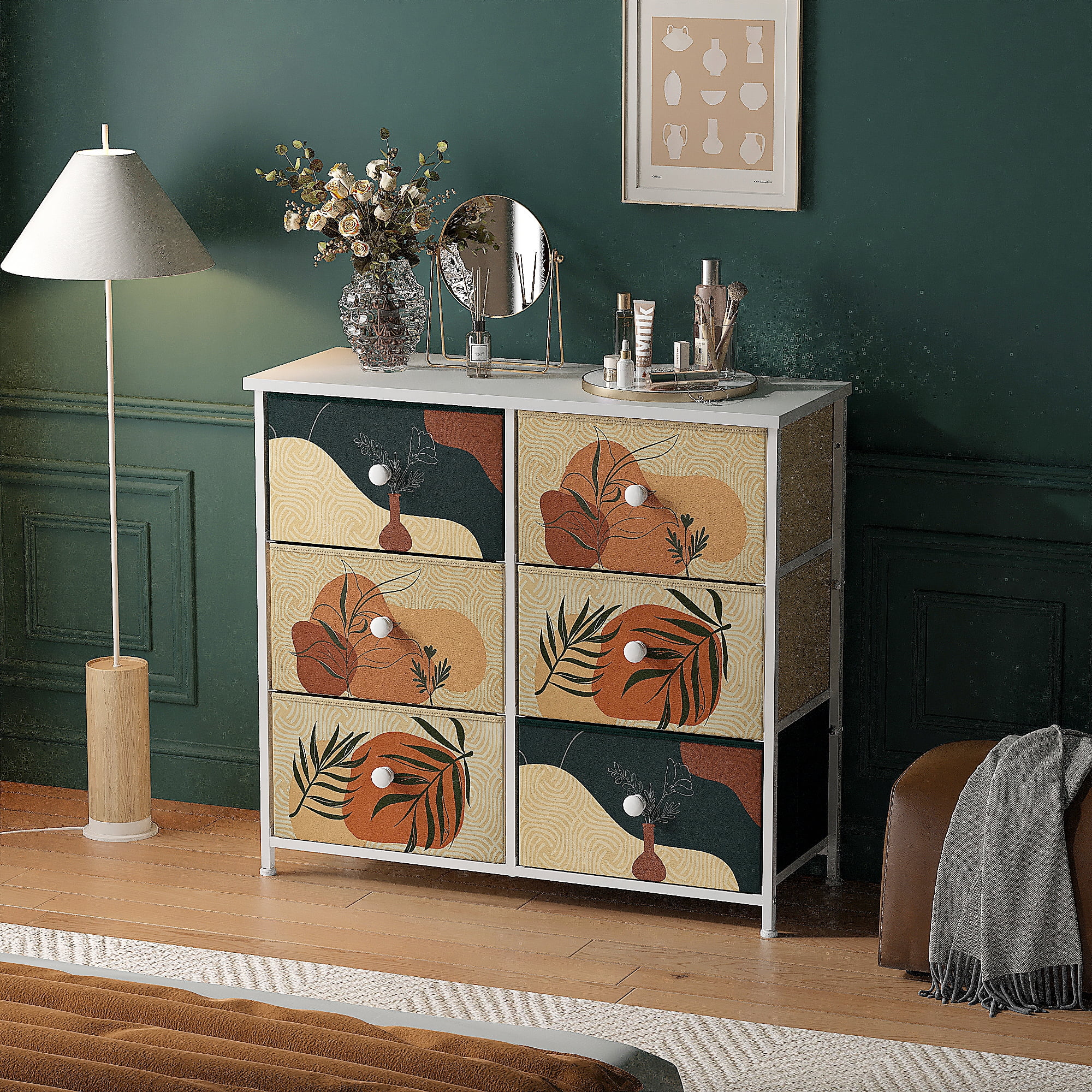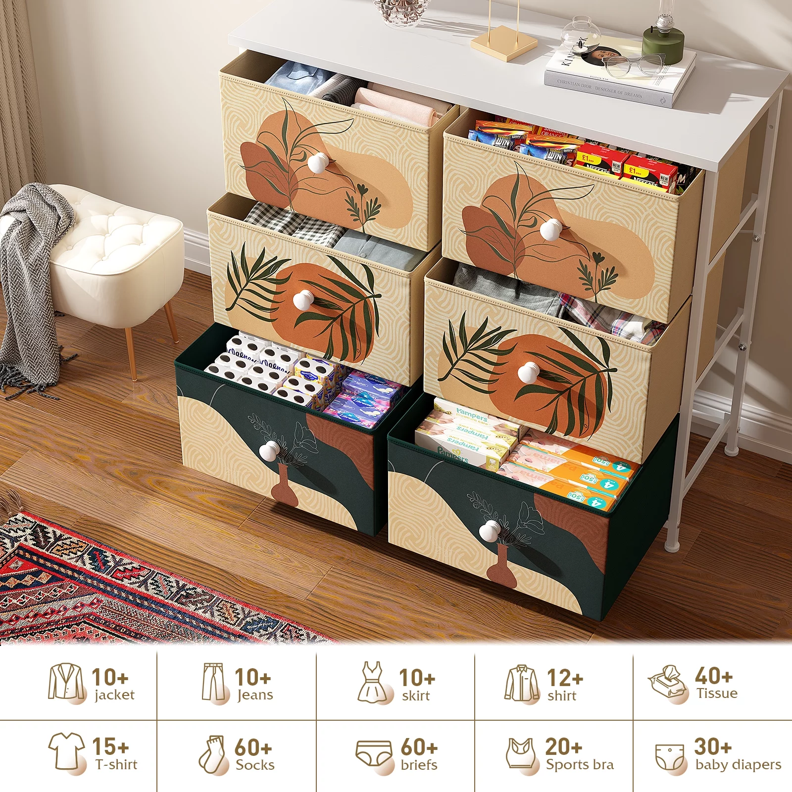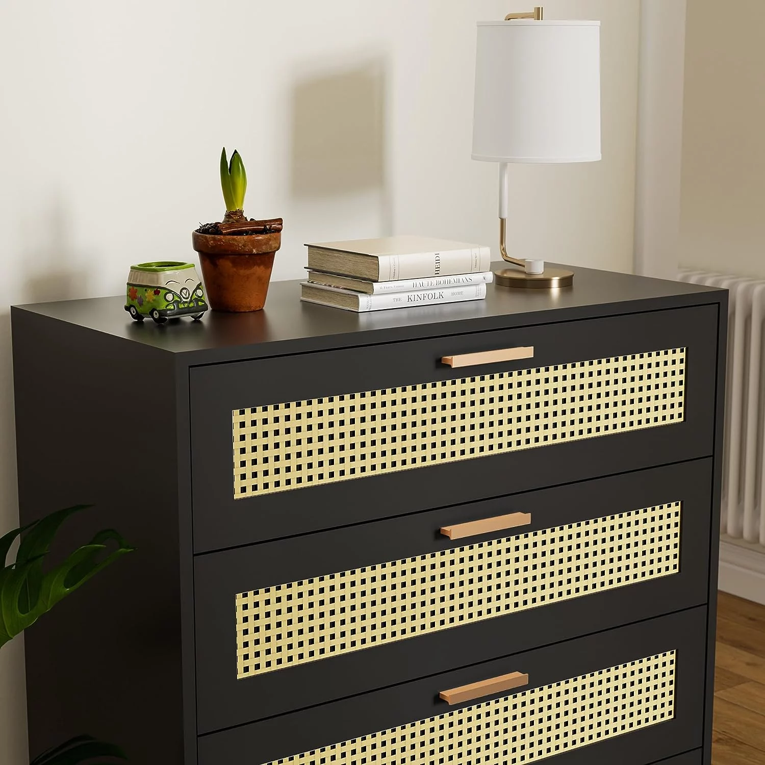 HomGarden 5-Drawer Chest Organizer, Modern MDF Storage Dresser Cabinet Lockable Casters , Black