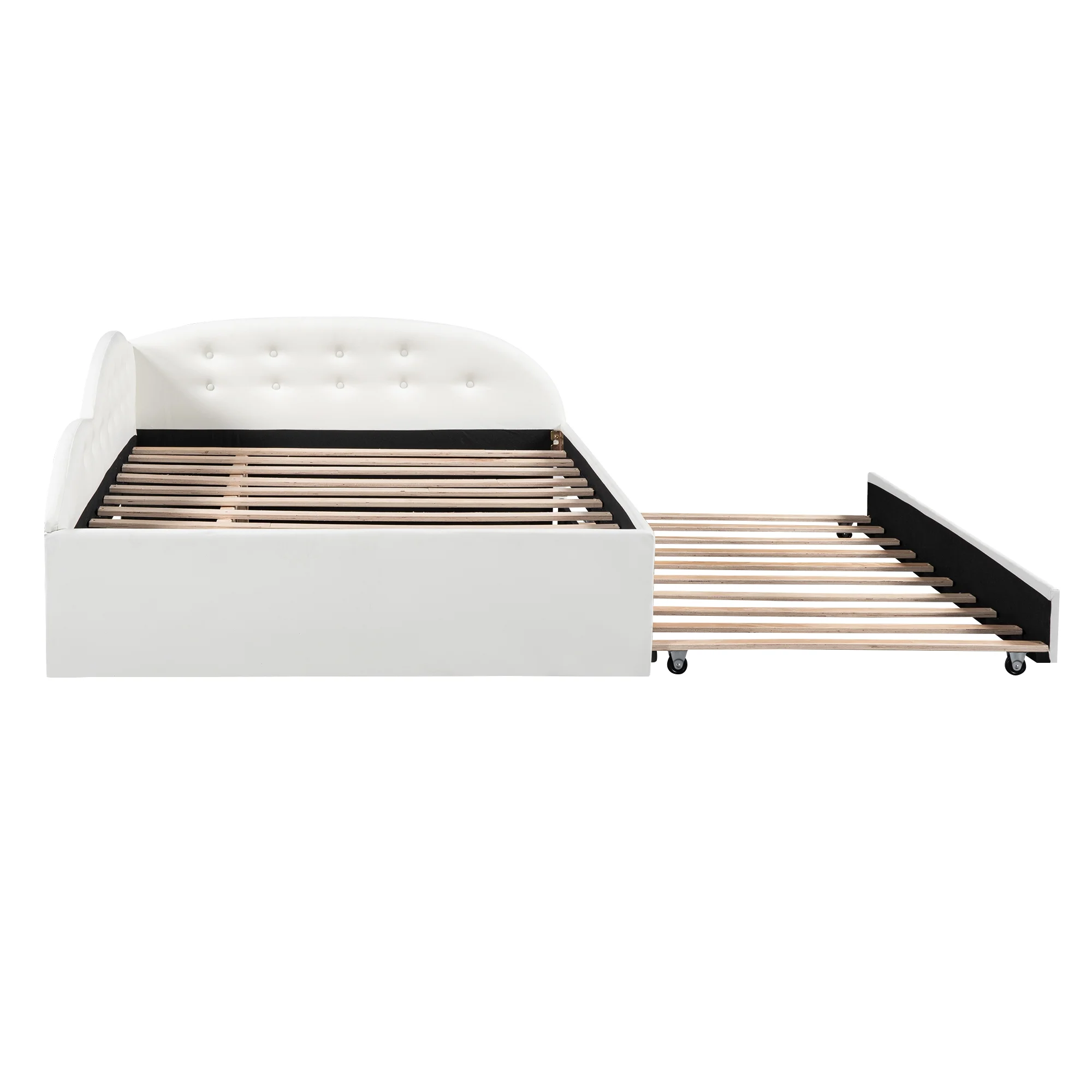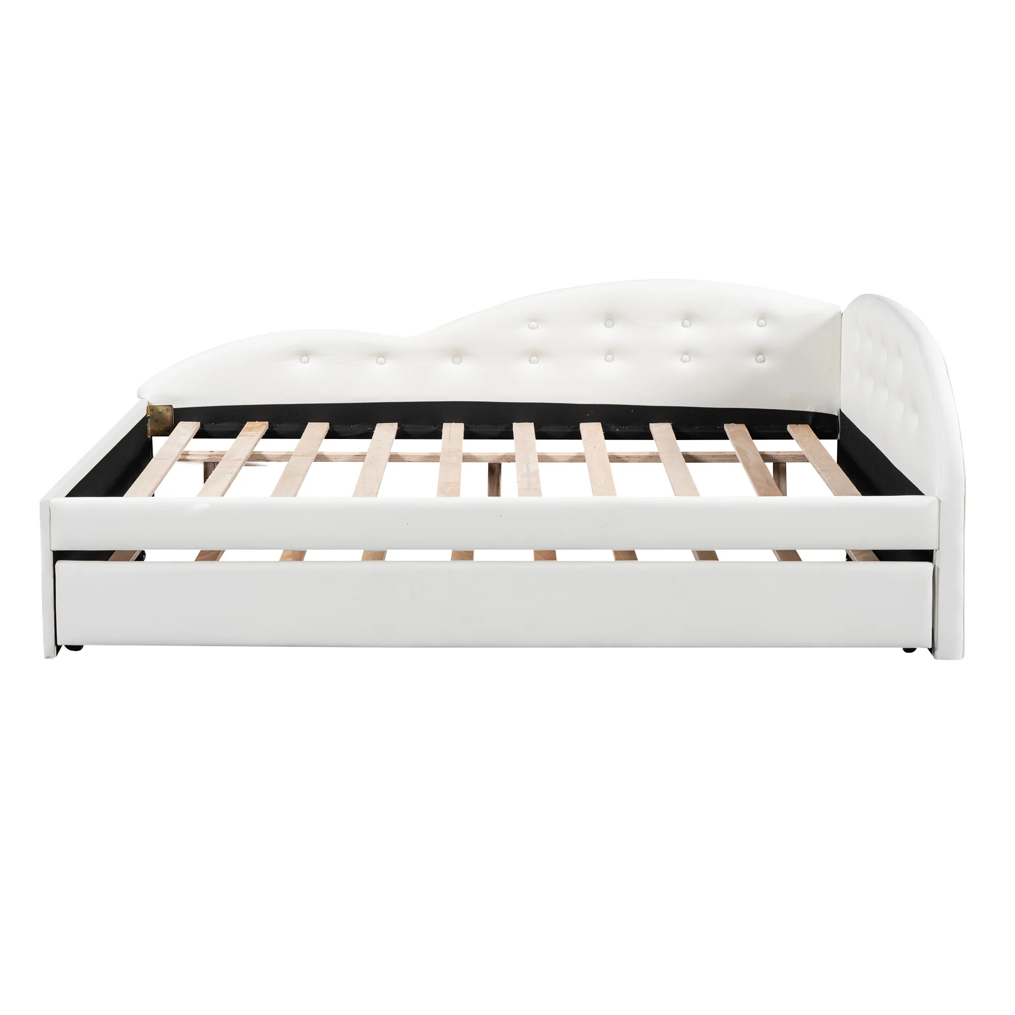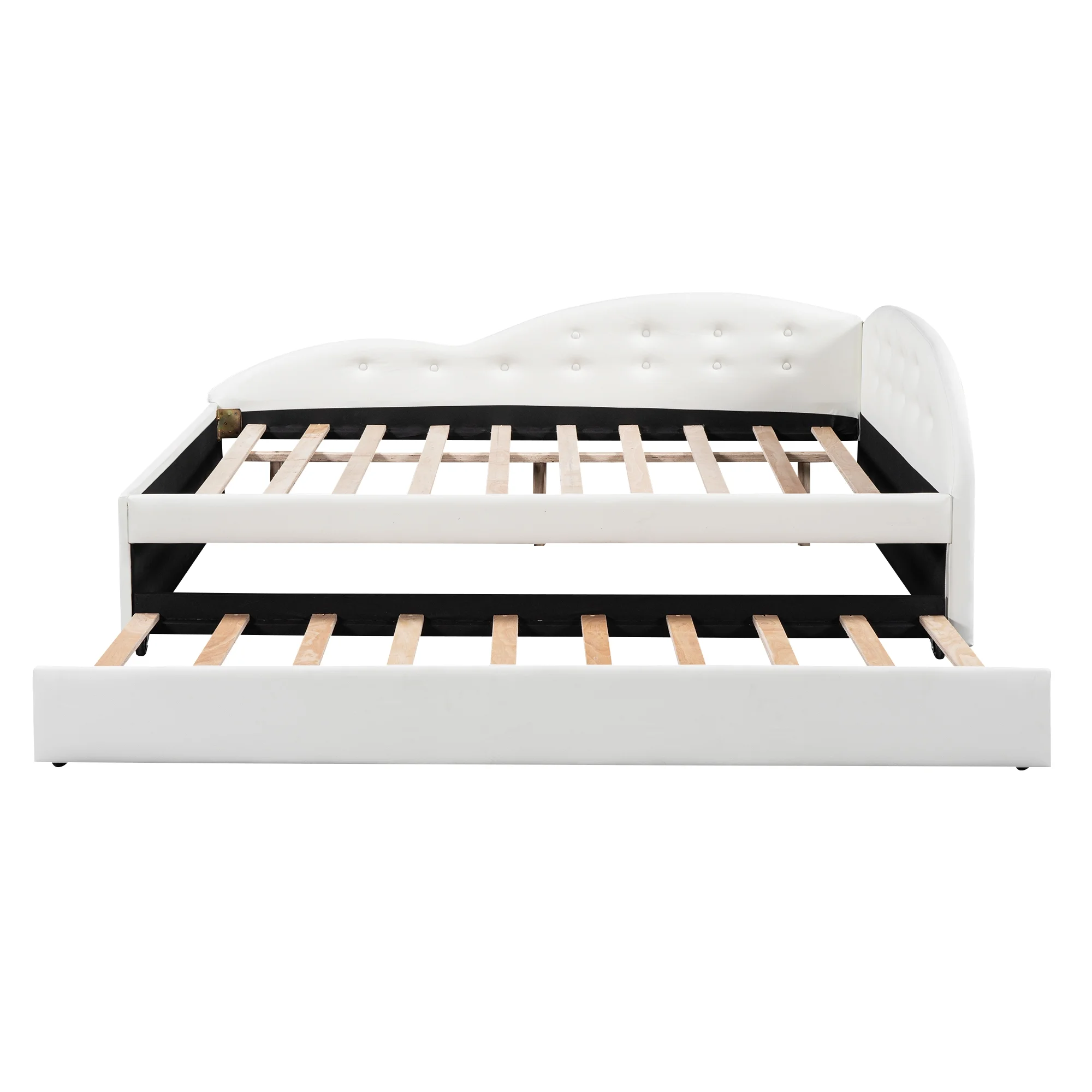 Euroco Full Size PU Upholstery Daybed, Tufted Sofa Bed with Trundle for Kids Room, White