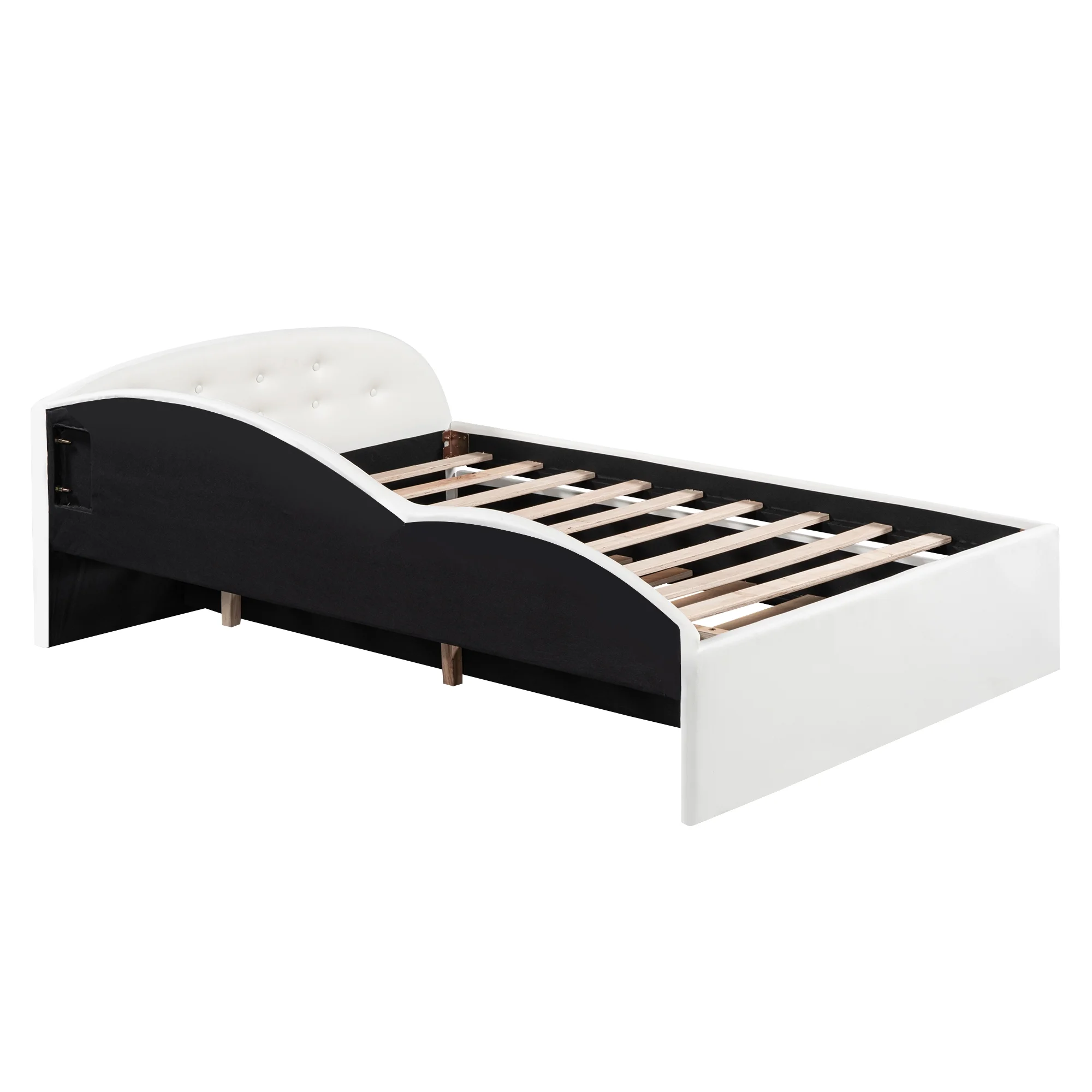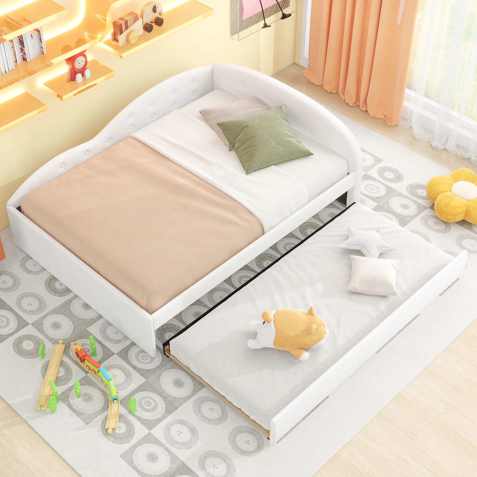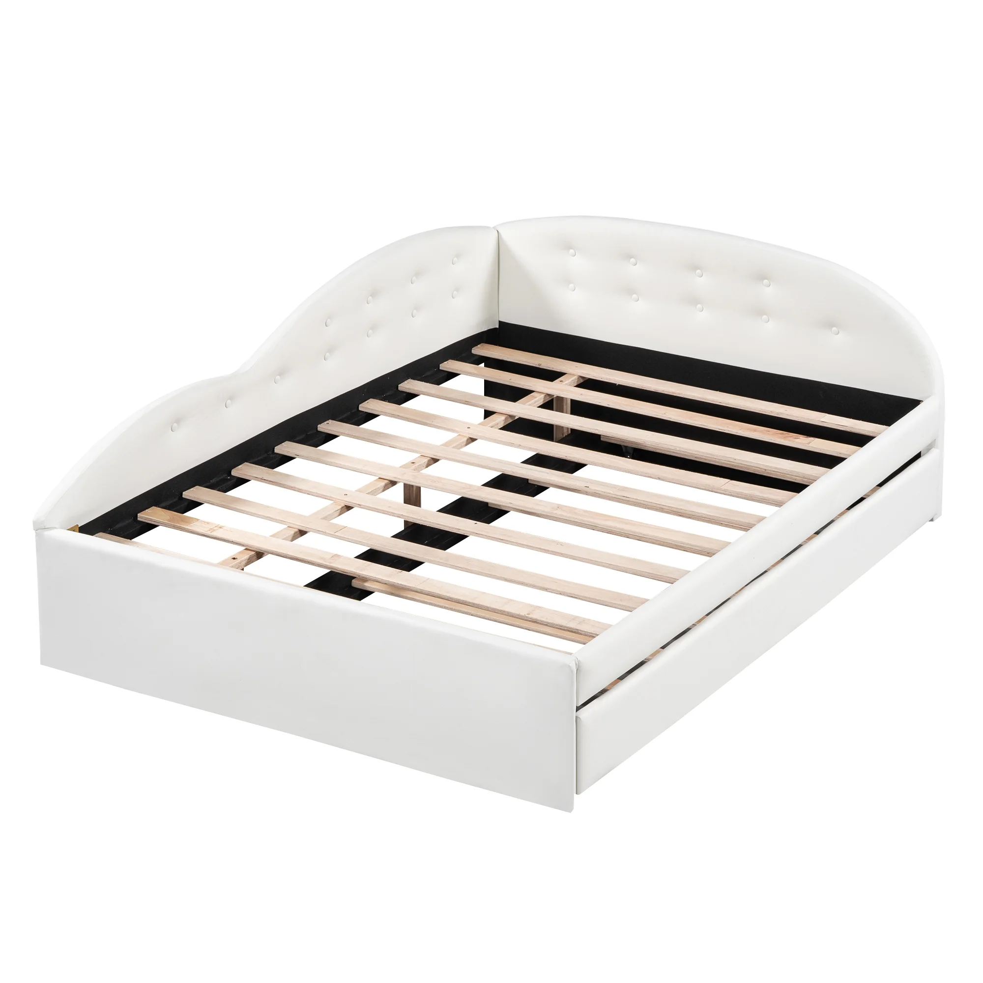 Euroco Full Size PU Upholstery Daybed, Tufted Sofa Bed with Trundle for Kids Room, White