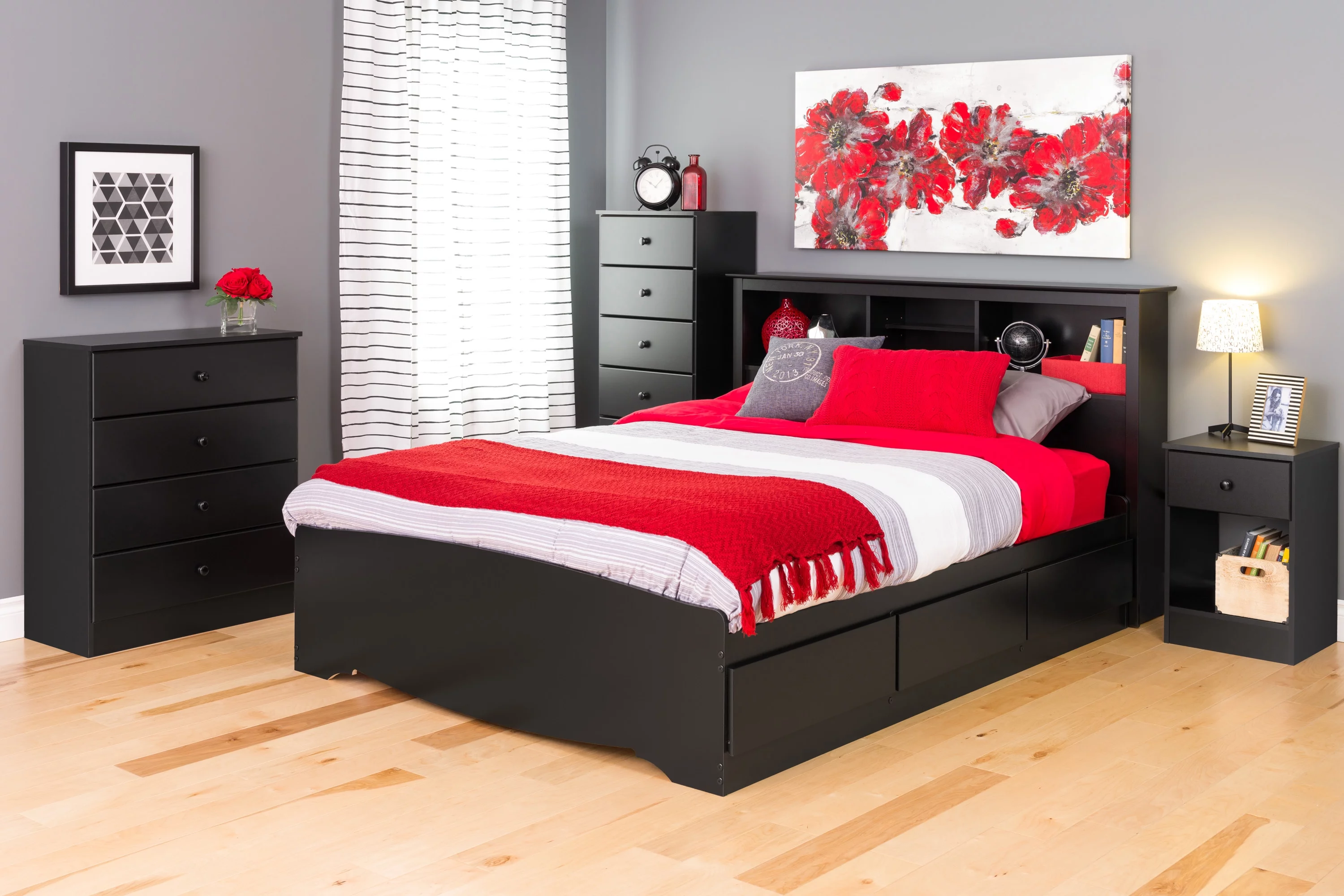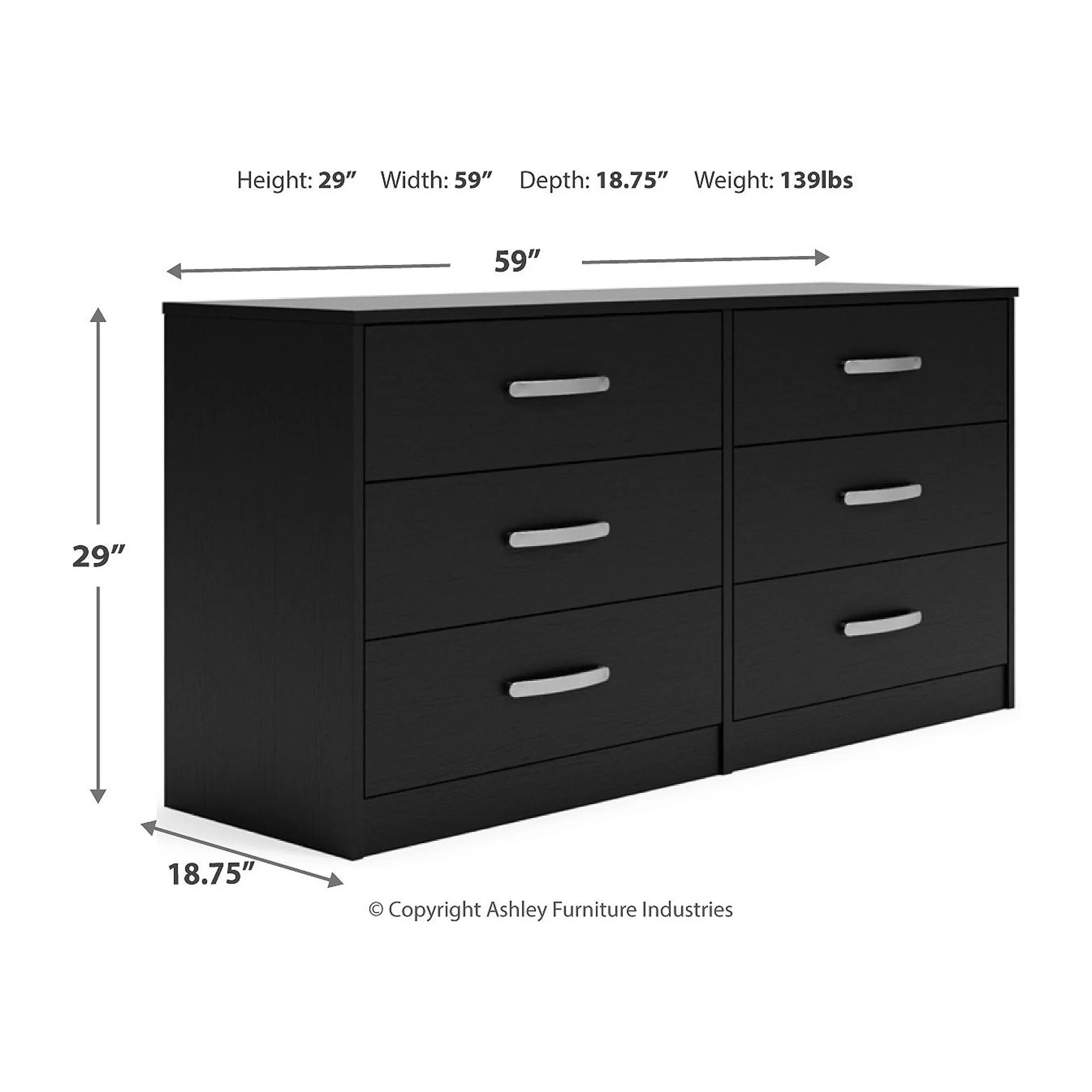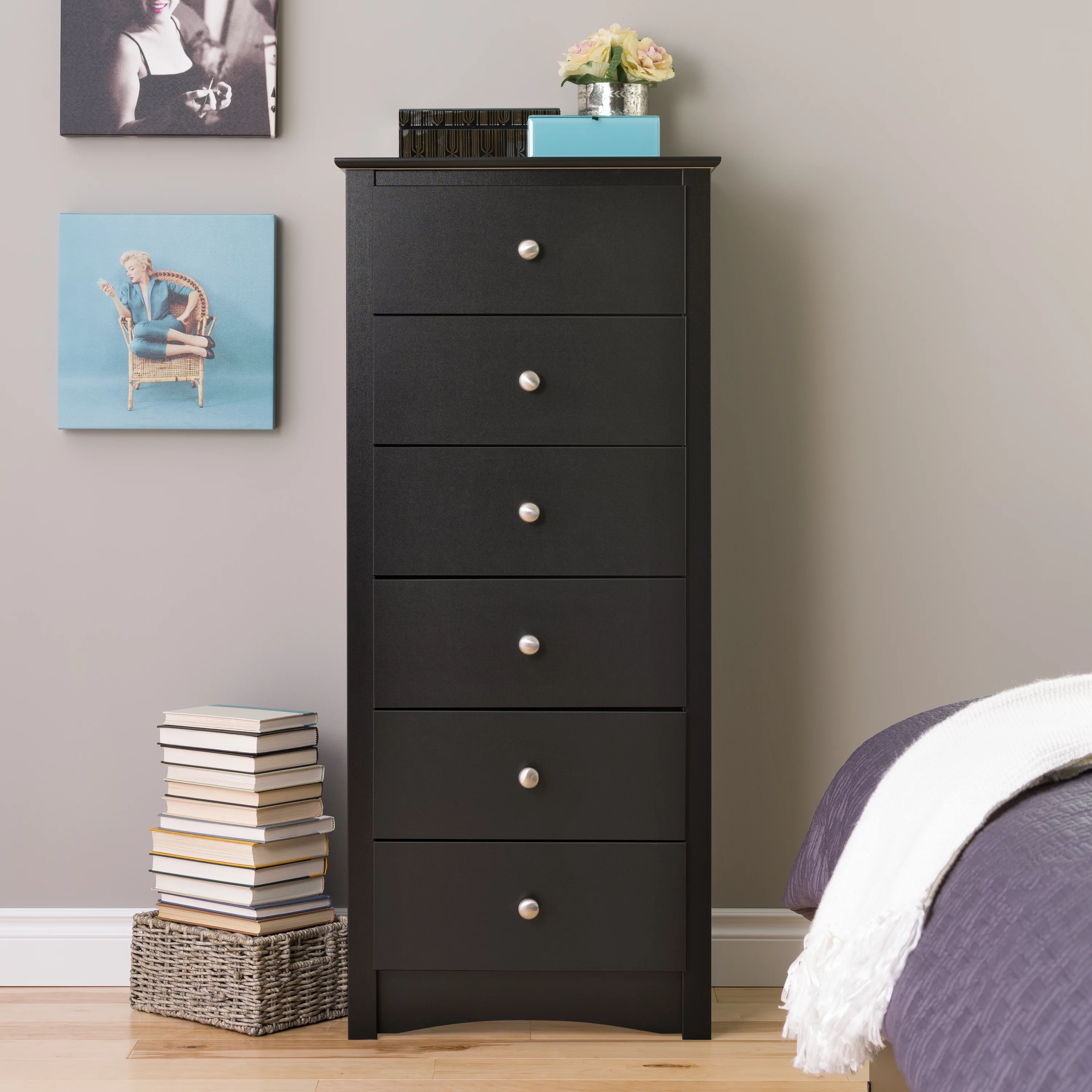 Prepac Sonoma 6 Drawer Wooden Dresser Chest, 17.65" x 23.25" x 53", Black