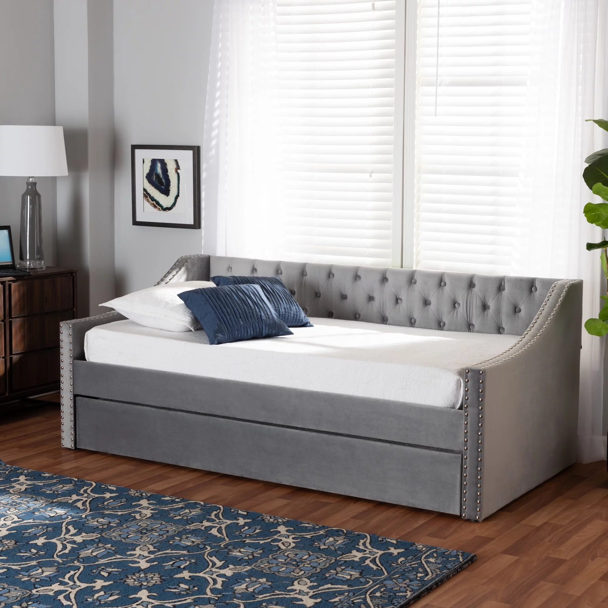 Baxton Studio Raphael Contemporary Upholstered with Trundle Daybed, Twin, Grey
