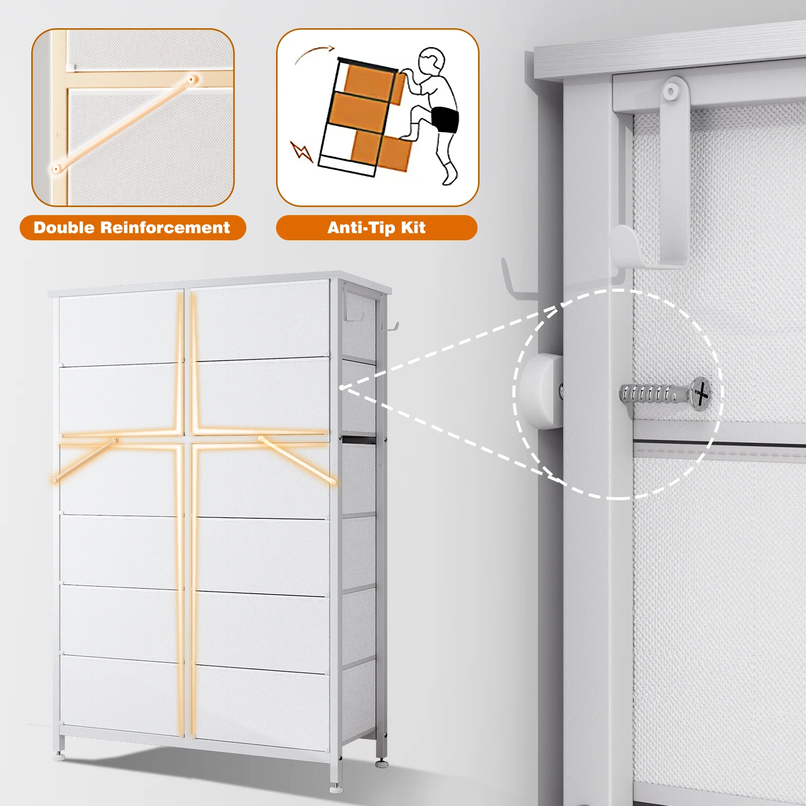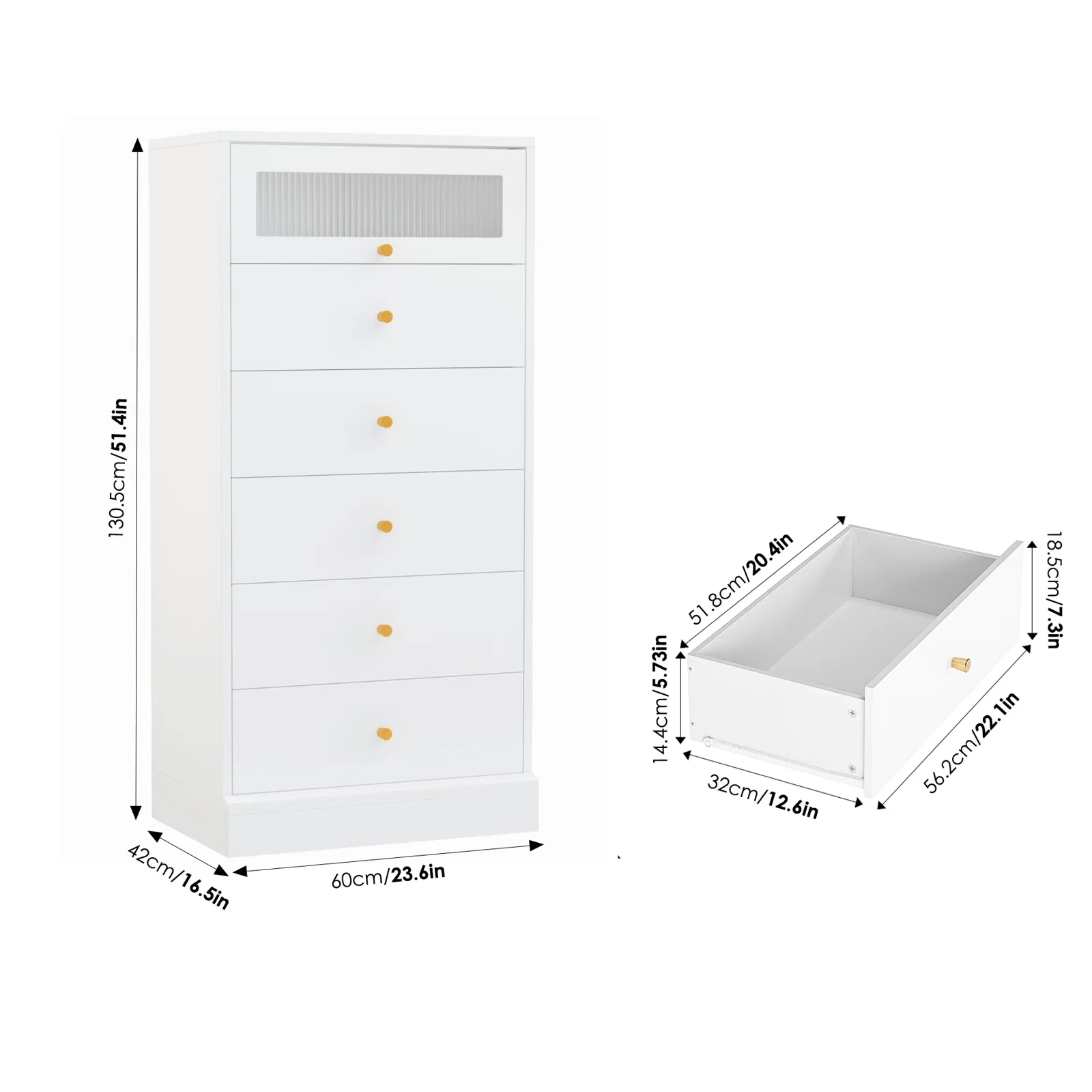 Homfa 6 Drawers Dresser, 47"H White Dresser, Modern Chest with Drawer for Bedroom