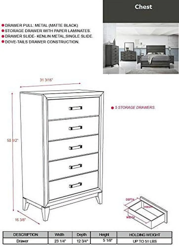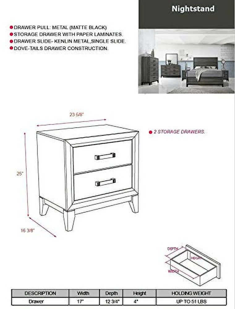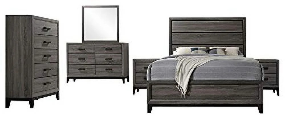 Kings Brand Furniture Ambroise 6-Piece King Size Bedroom Set, Grey/Black. Bed, Dresser, Mirror, Chest & 2 Night Stands