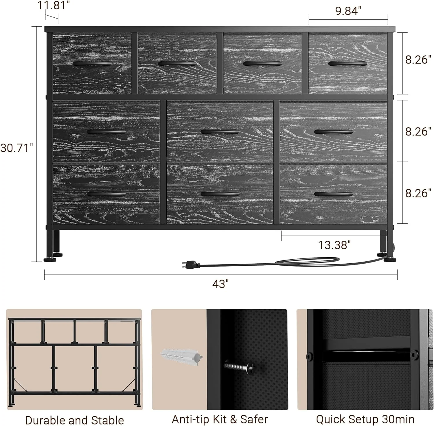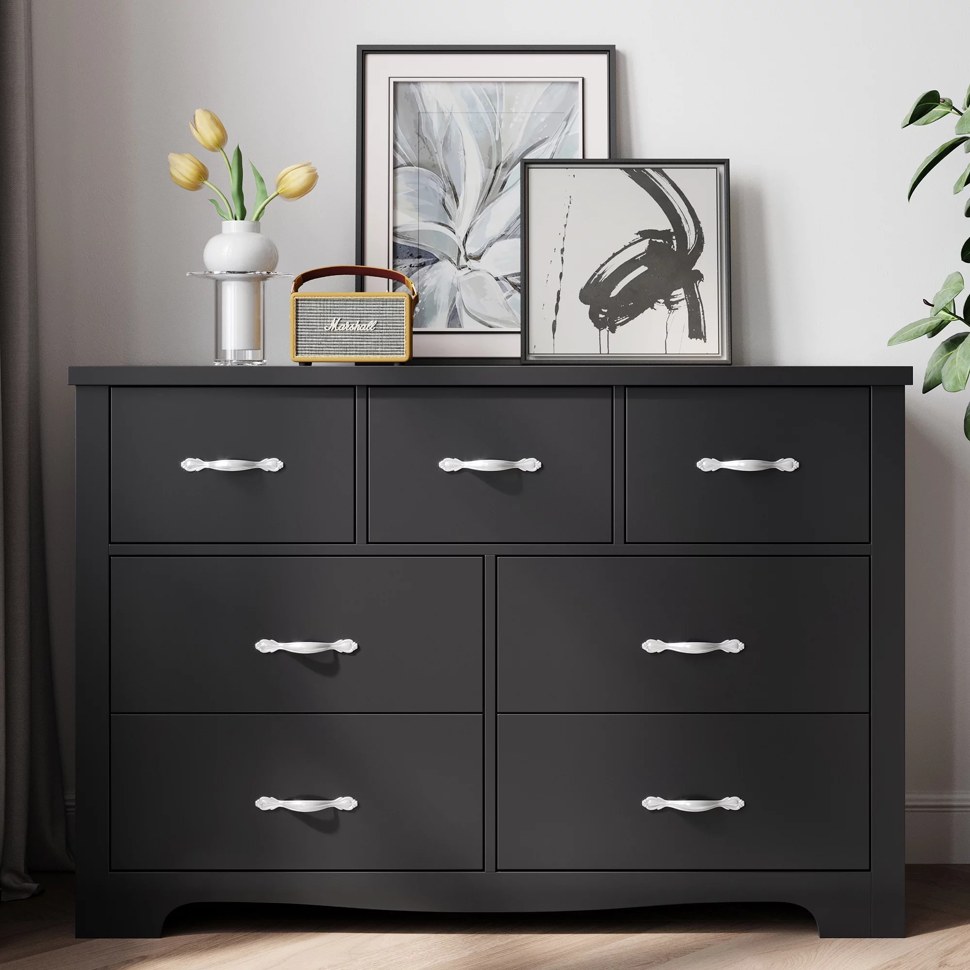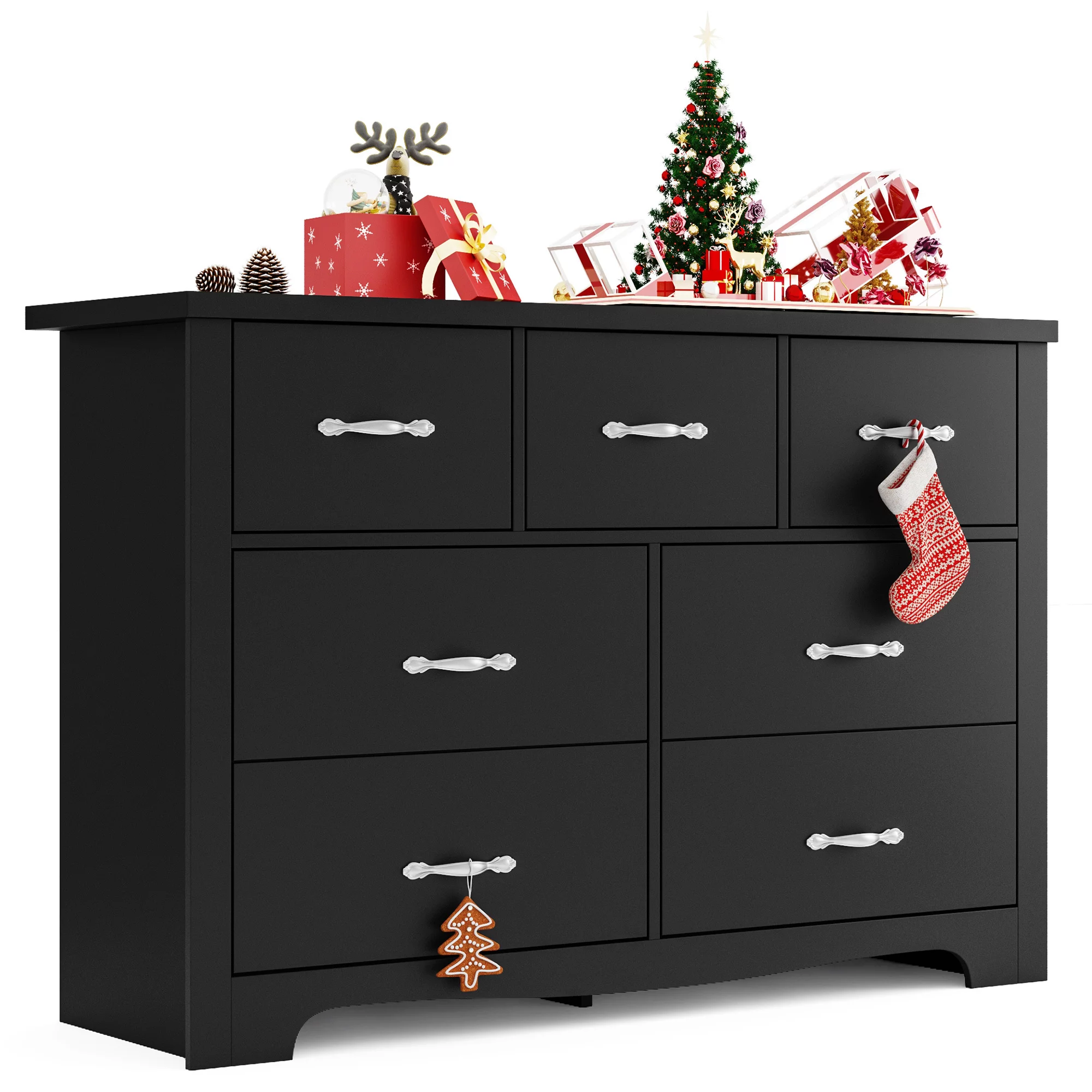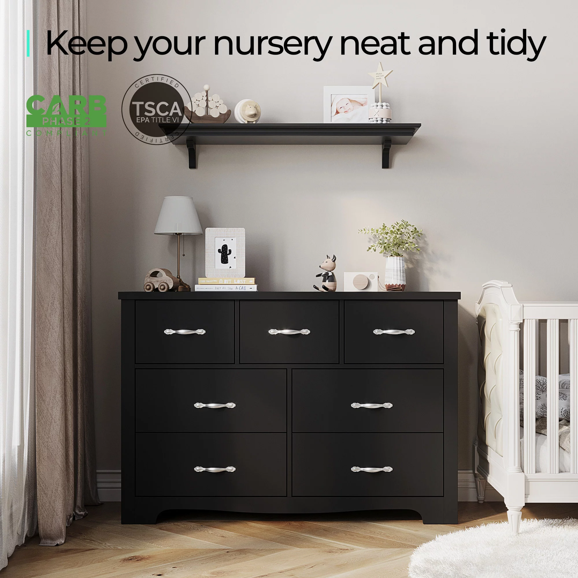 LINSY HOME Dressers for Bedroom, 7 Drawers Chest, Nursery Dresser Organizer, Wide Dresser Chest of Drawers - Black