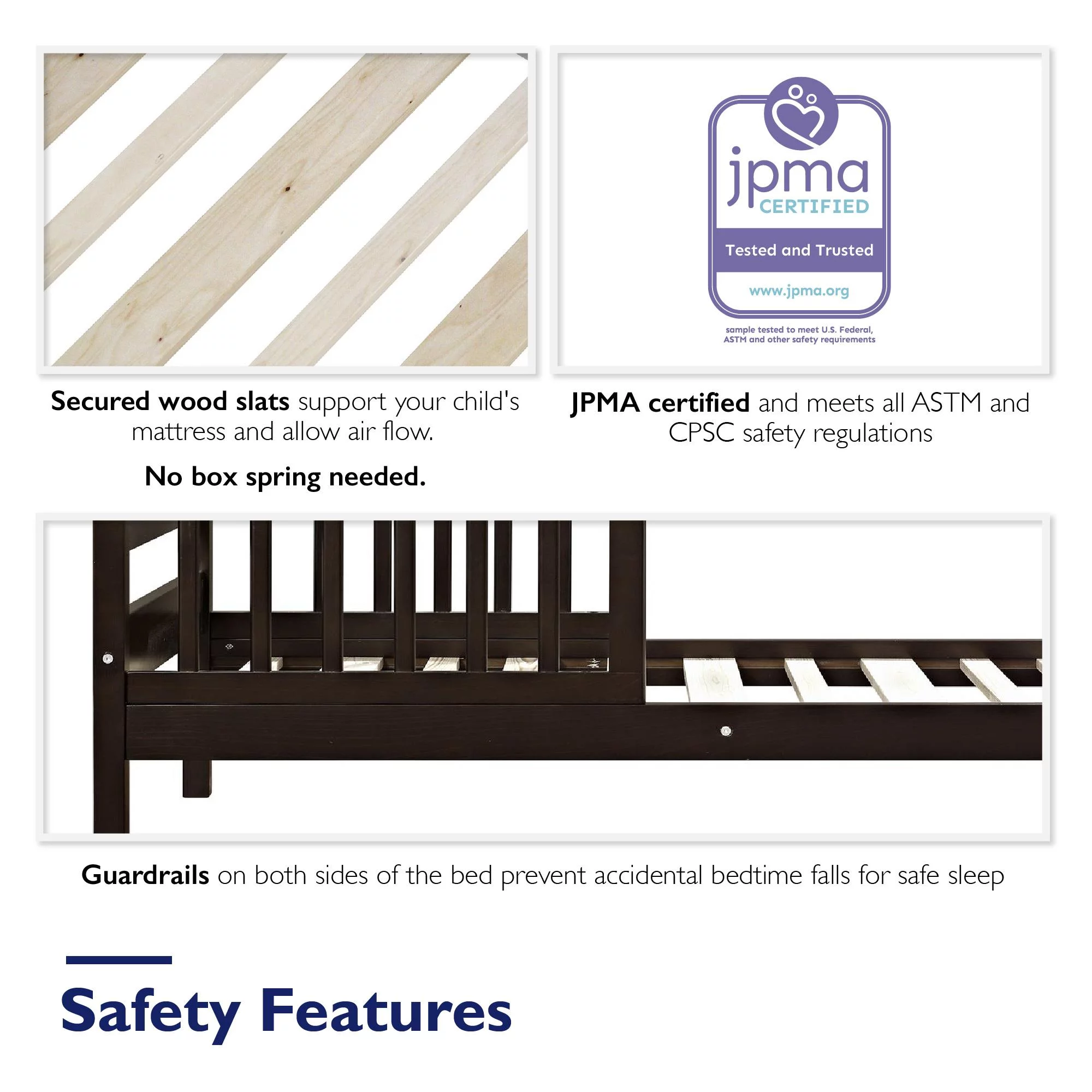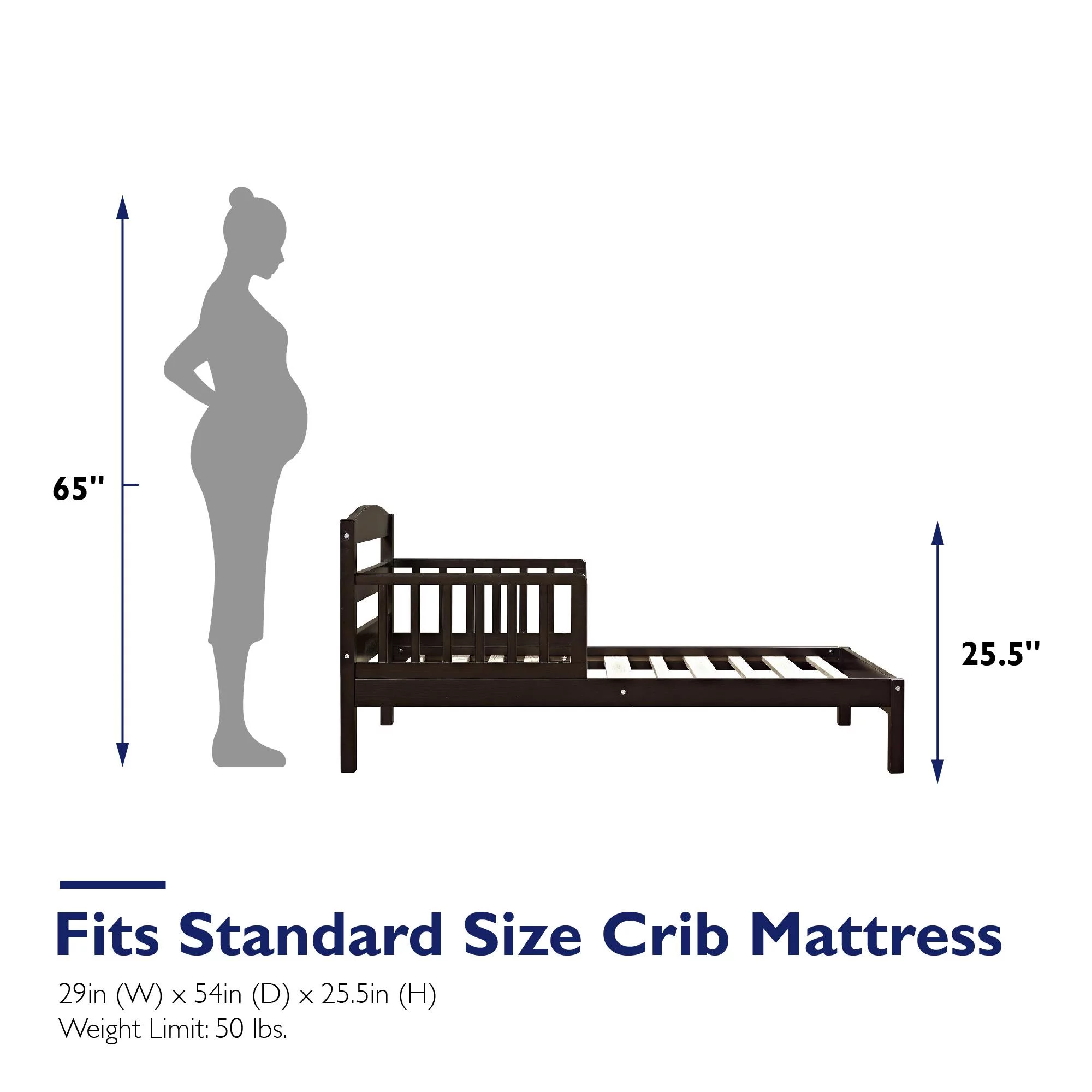 Baby Relax Jackson Kids Wood Toddler Bed with Safety Guardrails, Espresso