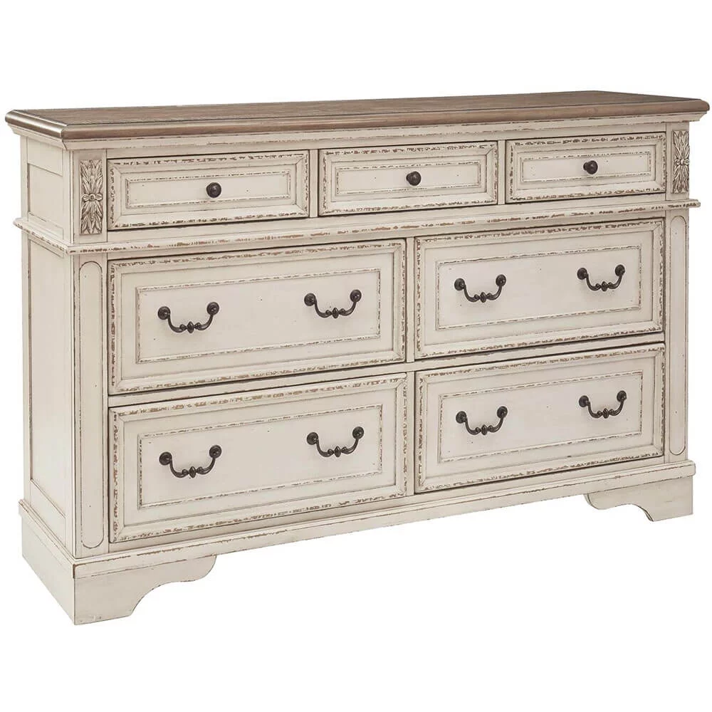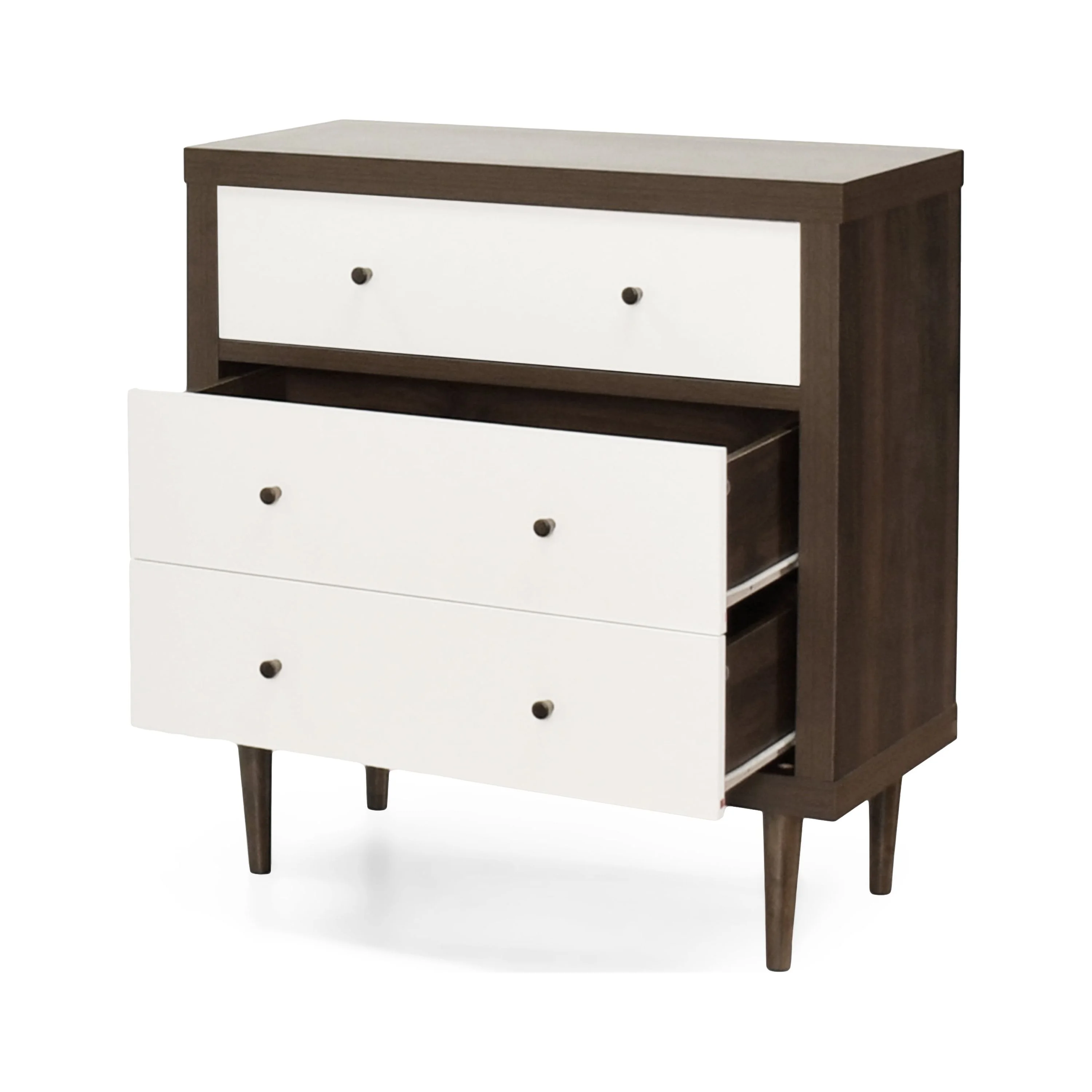 GDF Studio Farhart Mid Century Modern 2 Piece 3 Drawer Chest and 4 Drawer Dresser Bedroom Set, Walnut and White