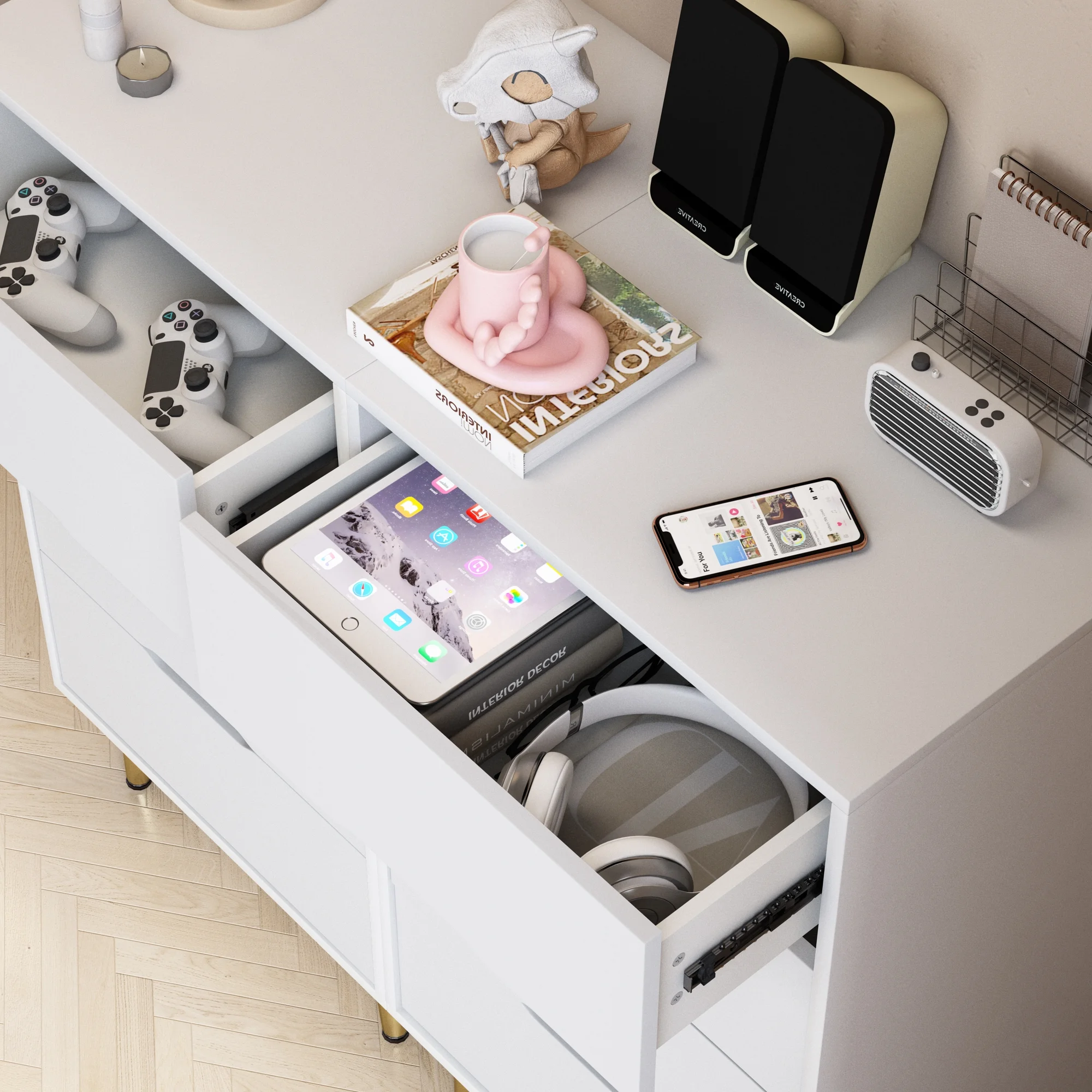 Glavbiku Modern 6 Drawer Dresser with Sturdy Metal Leg for Home,Storage Cabinet White Finish,Adult