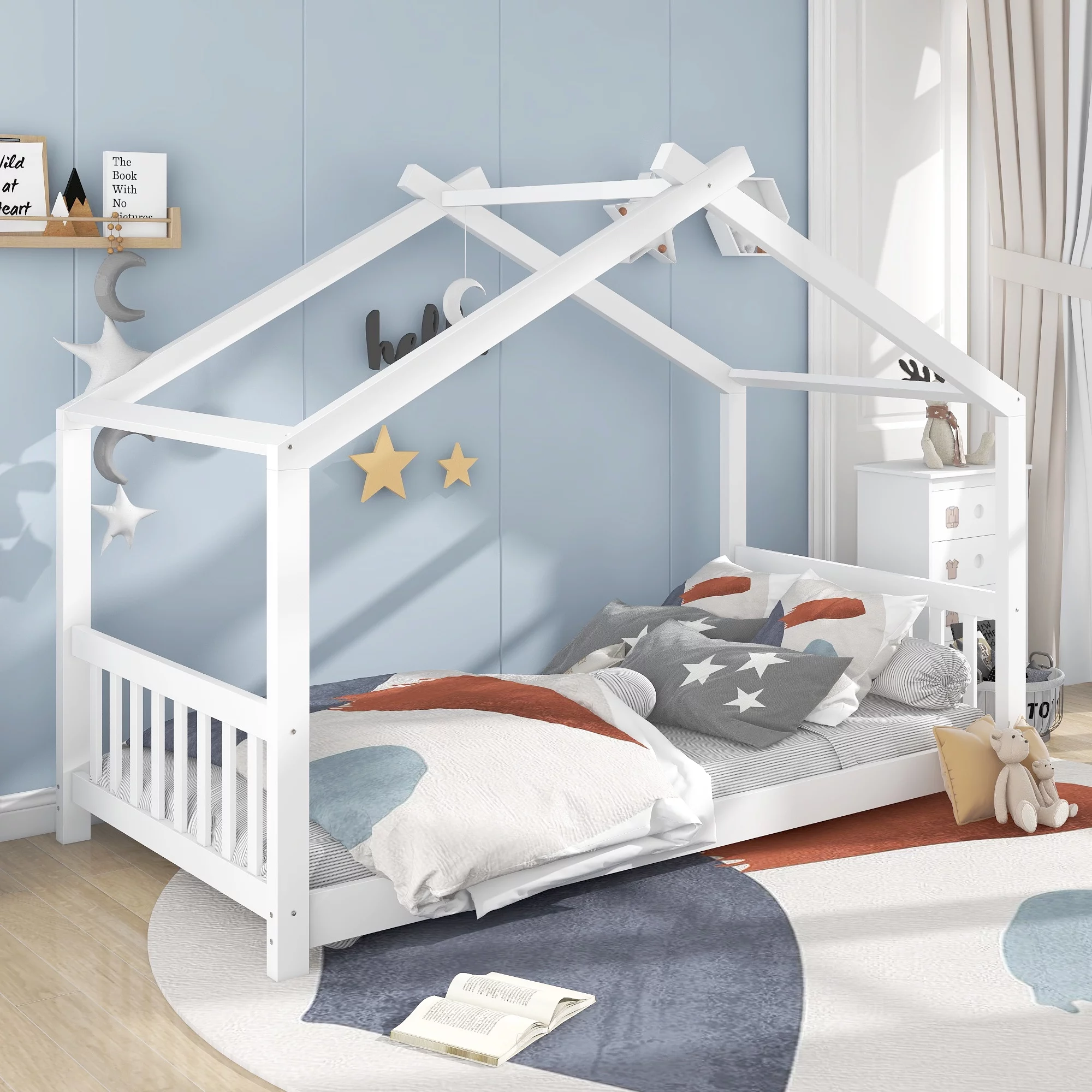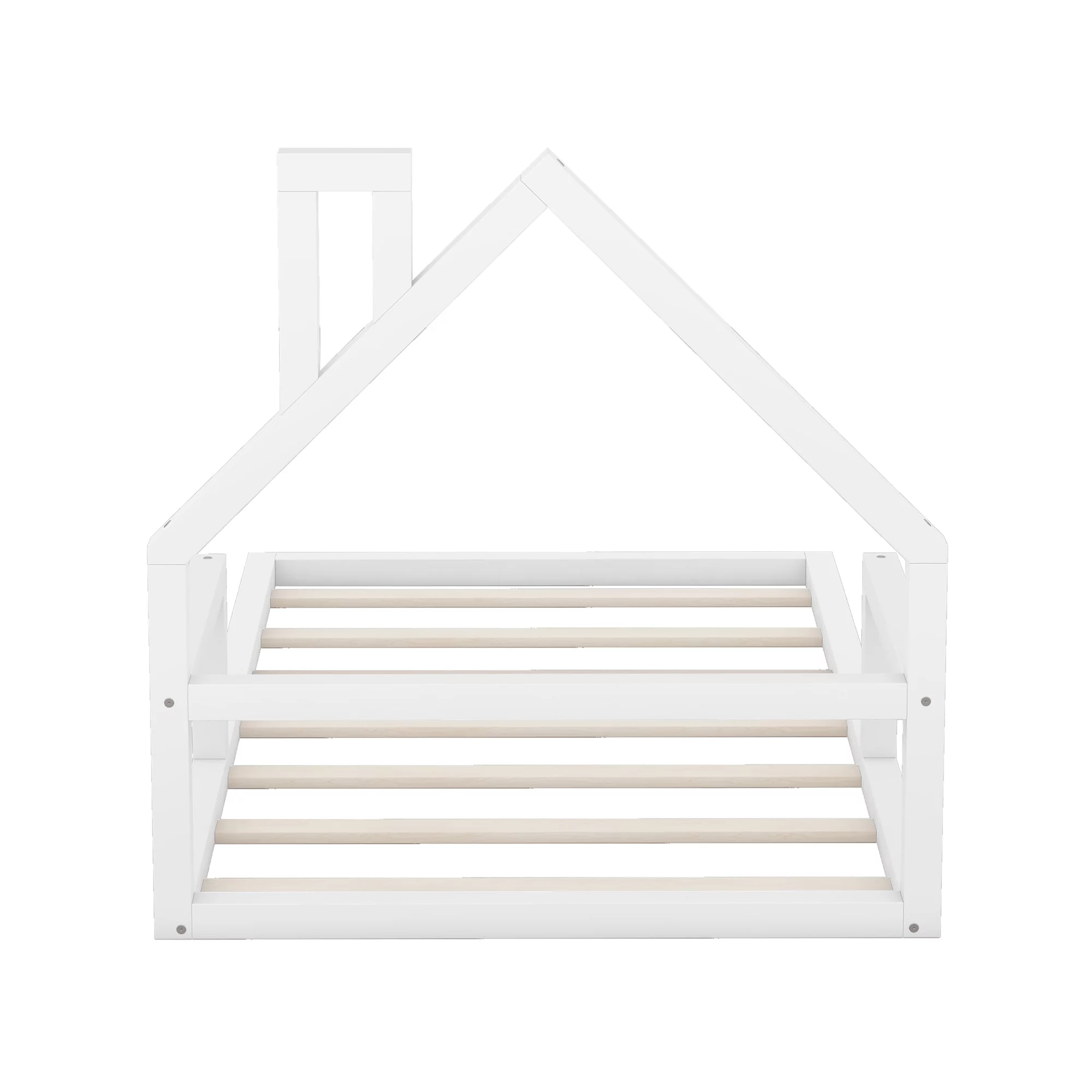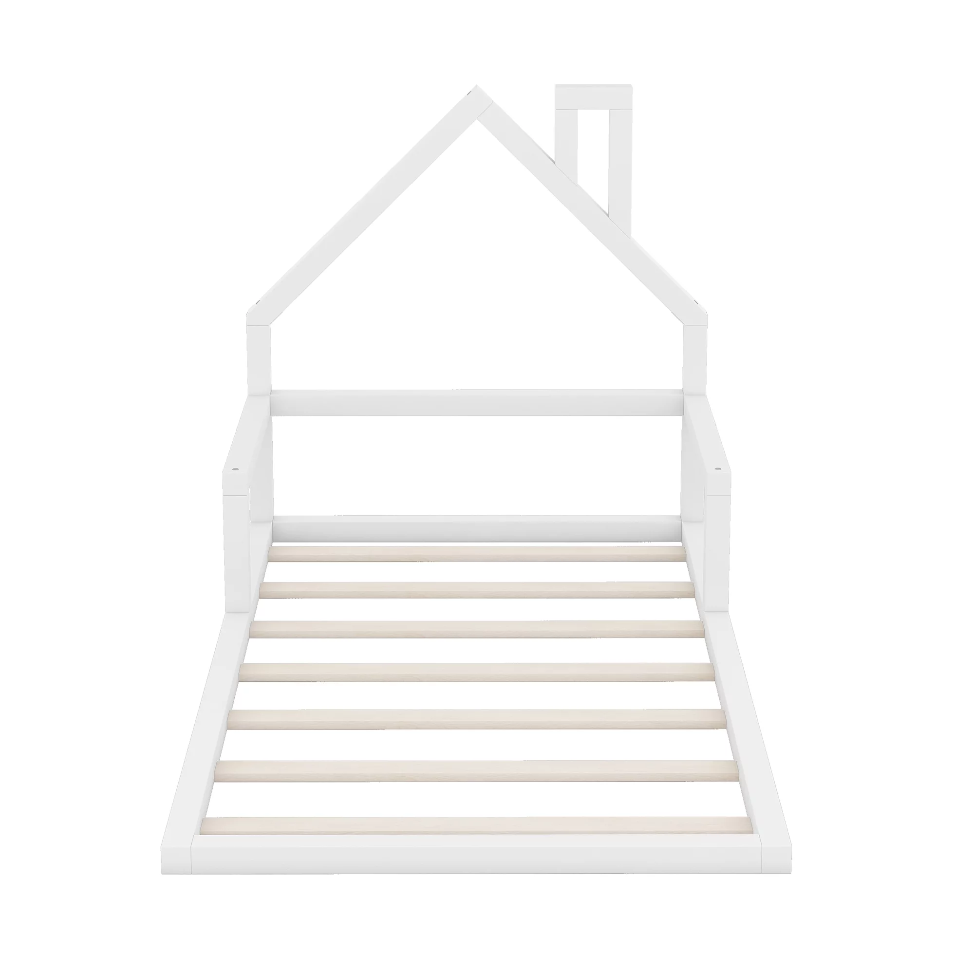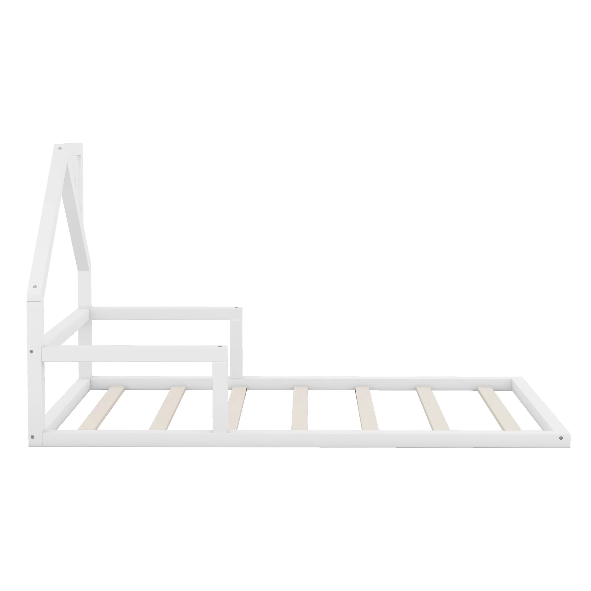 Euroco Wood Twin House Two Beds in One with Movable Desk for Kids Bedroom, White