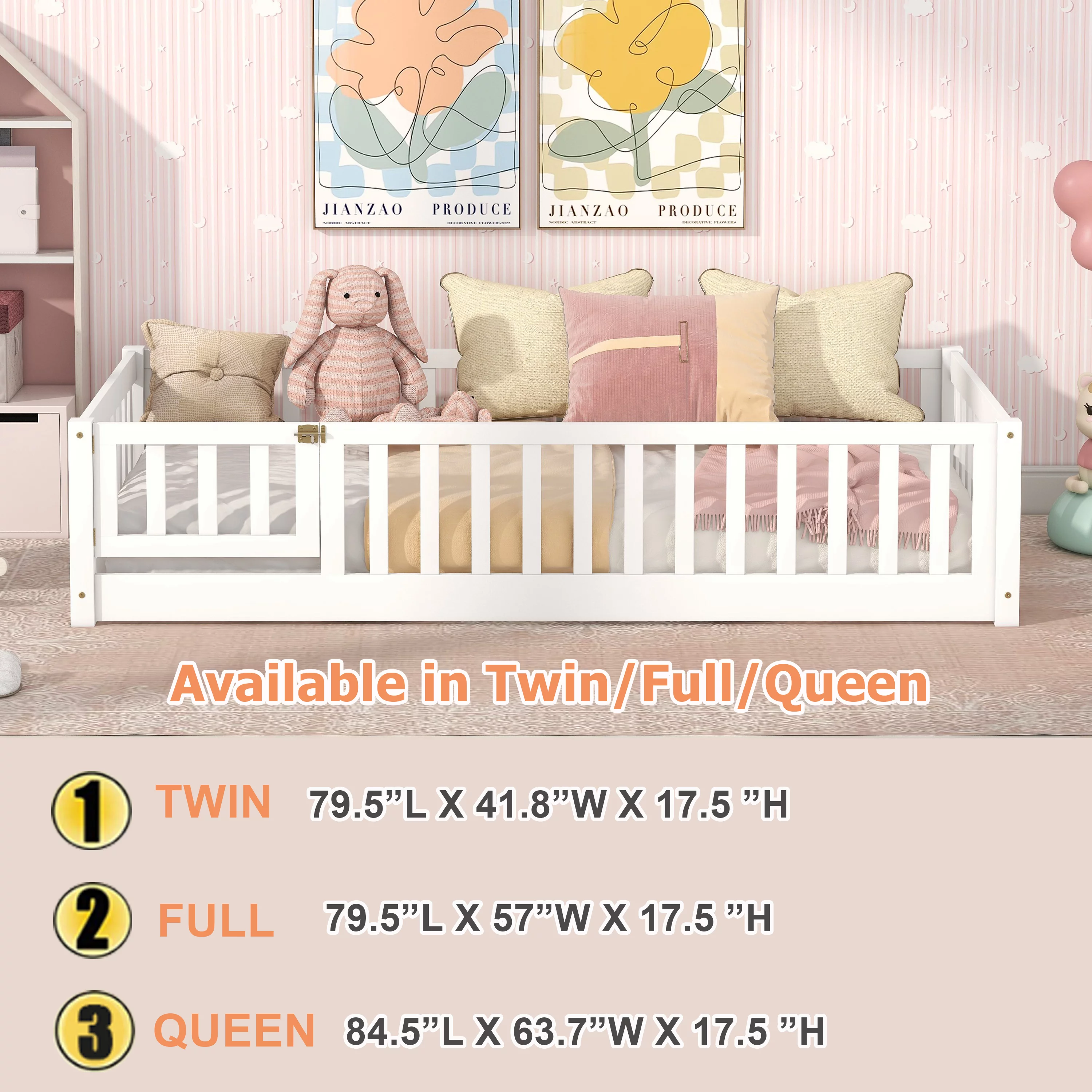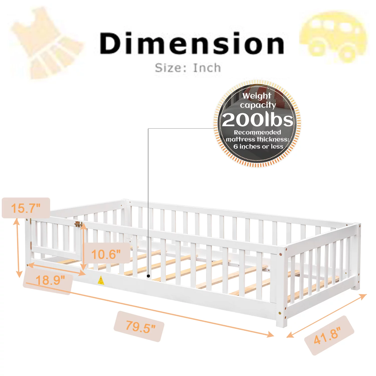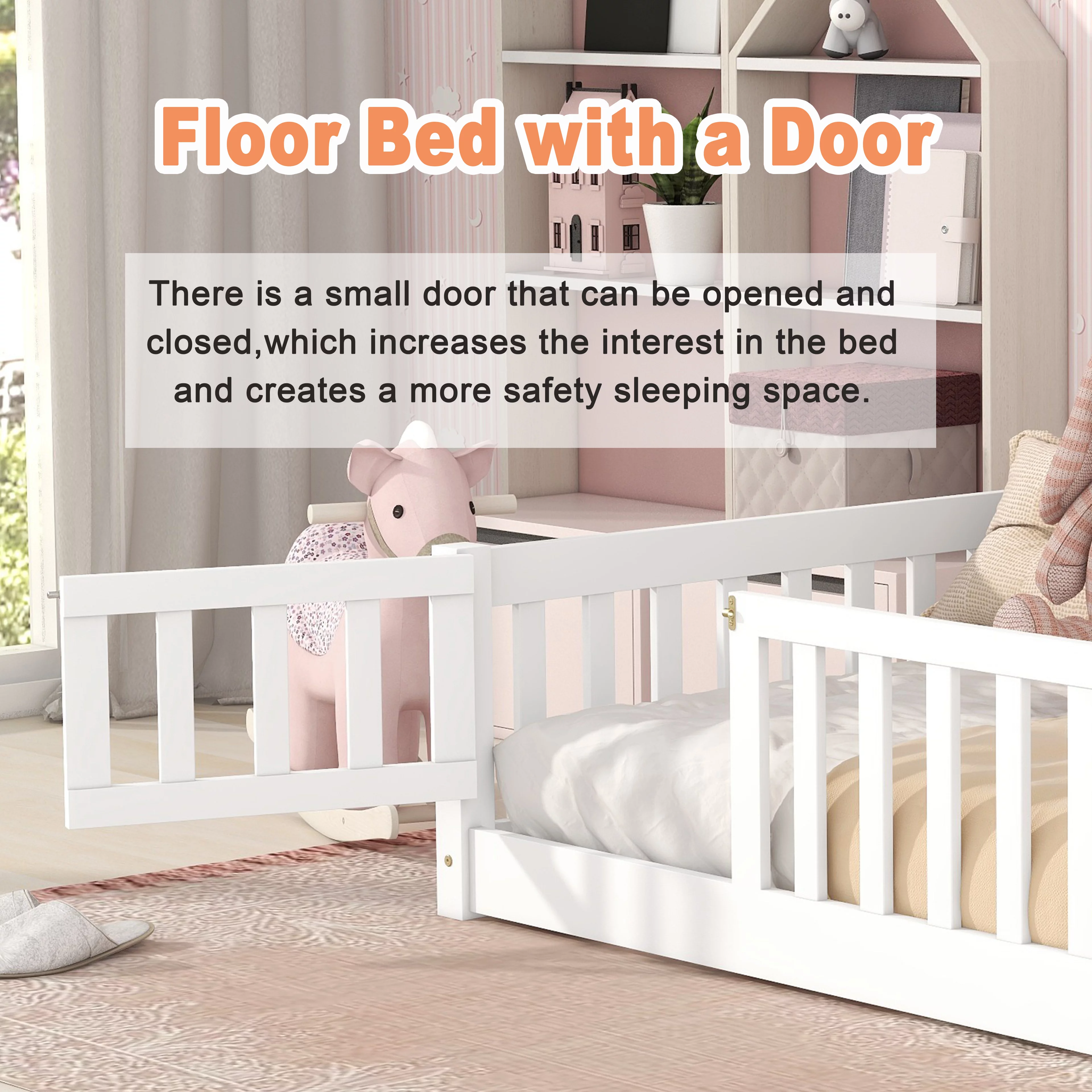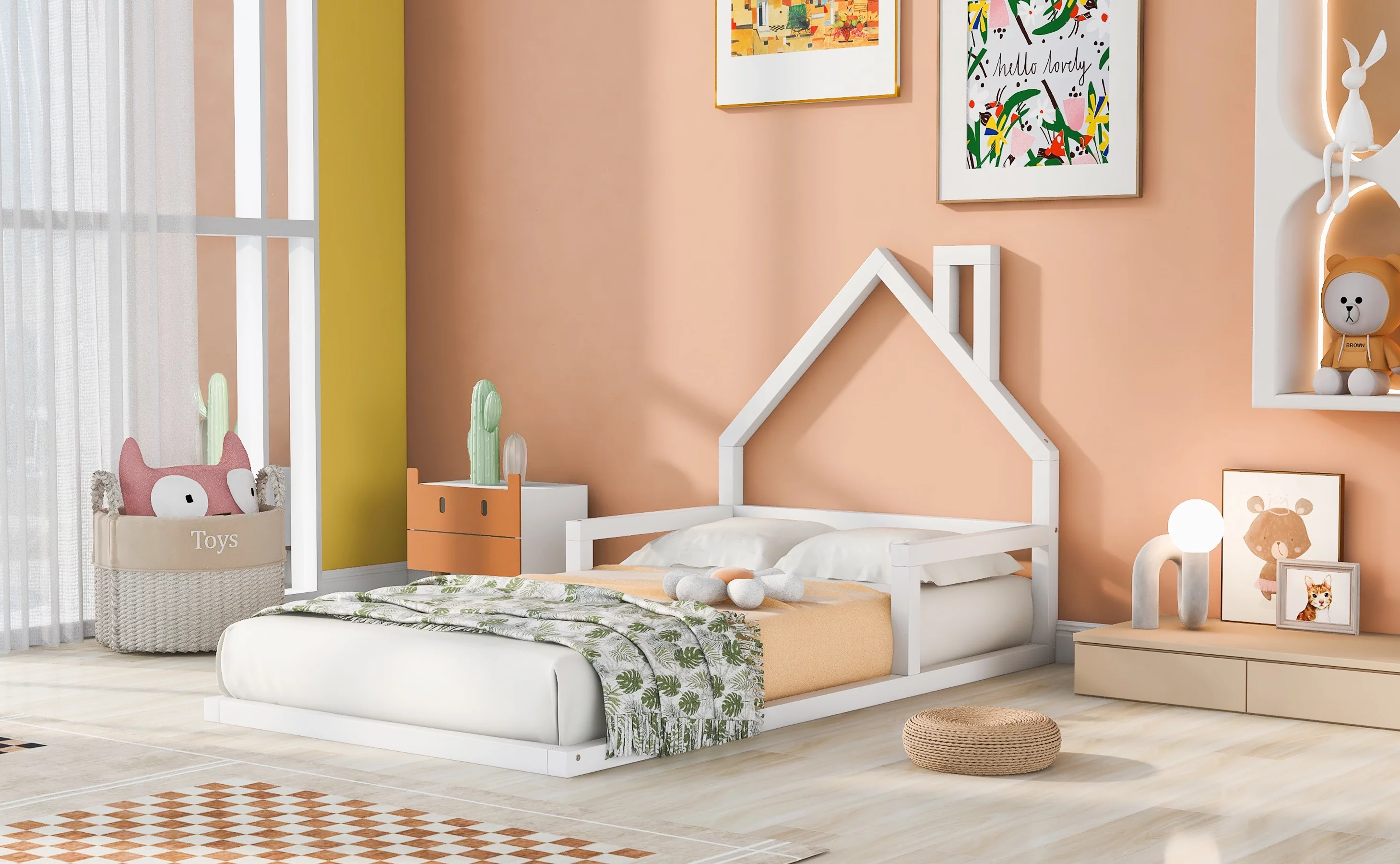 Euroco Wood Twin House Two Beds in One with Movable Desk for Kids Bedroom, White