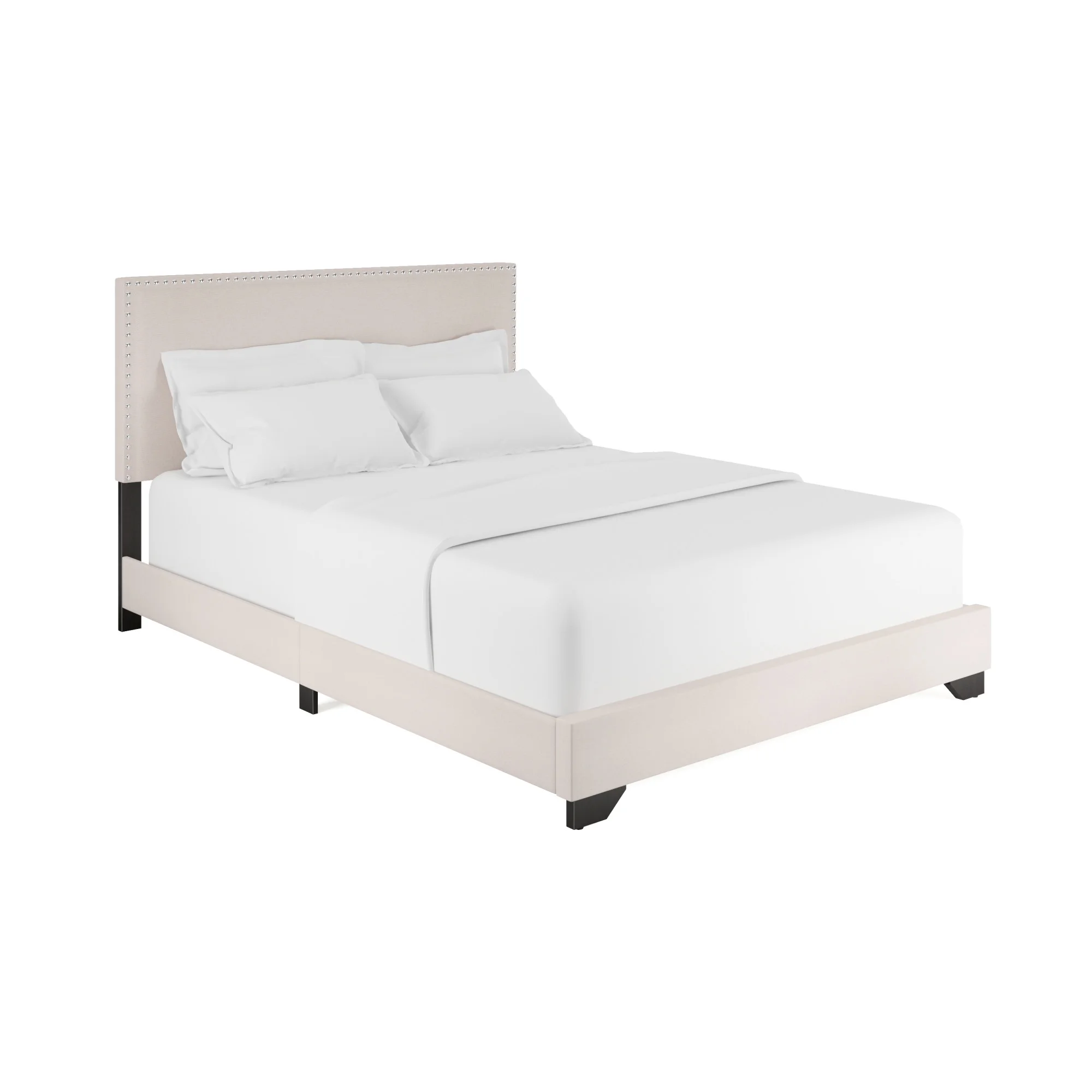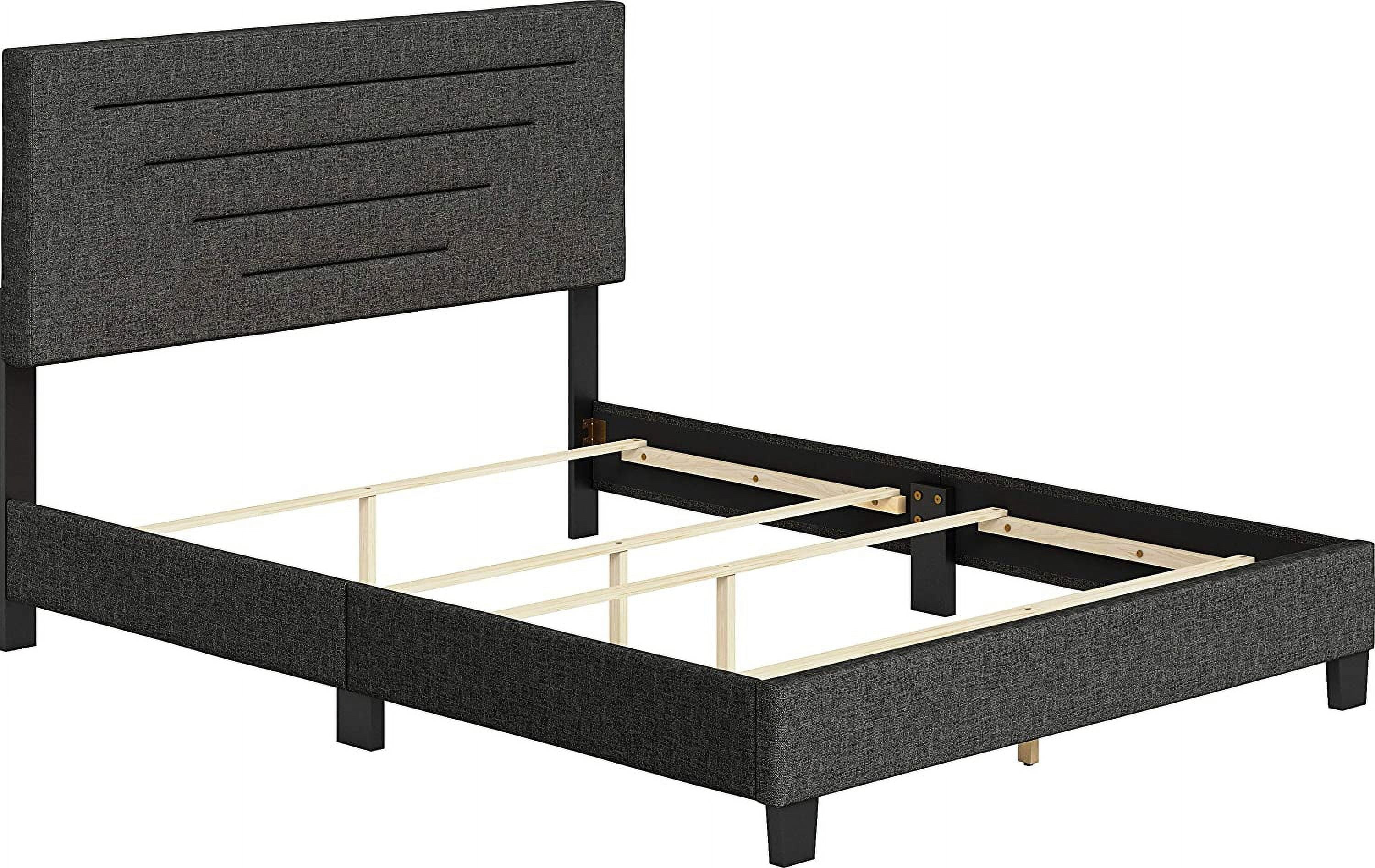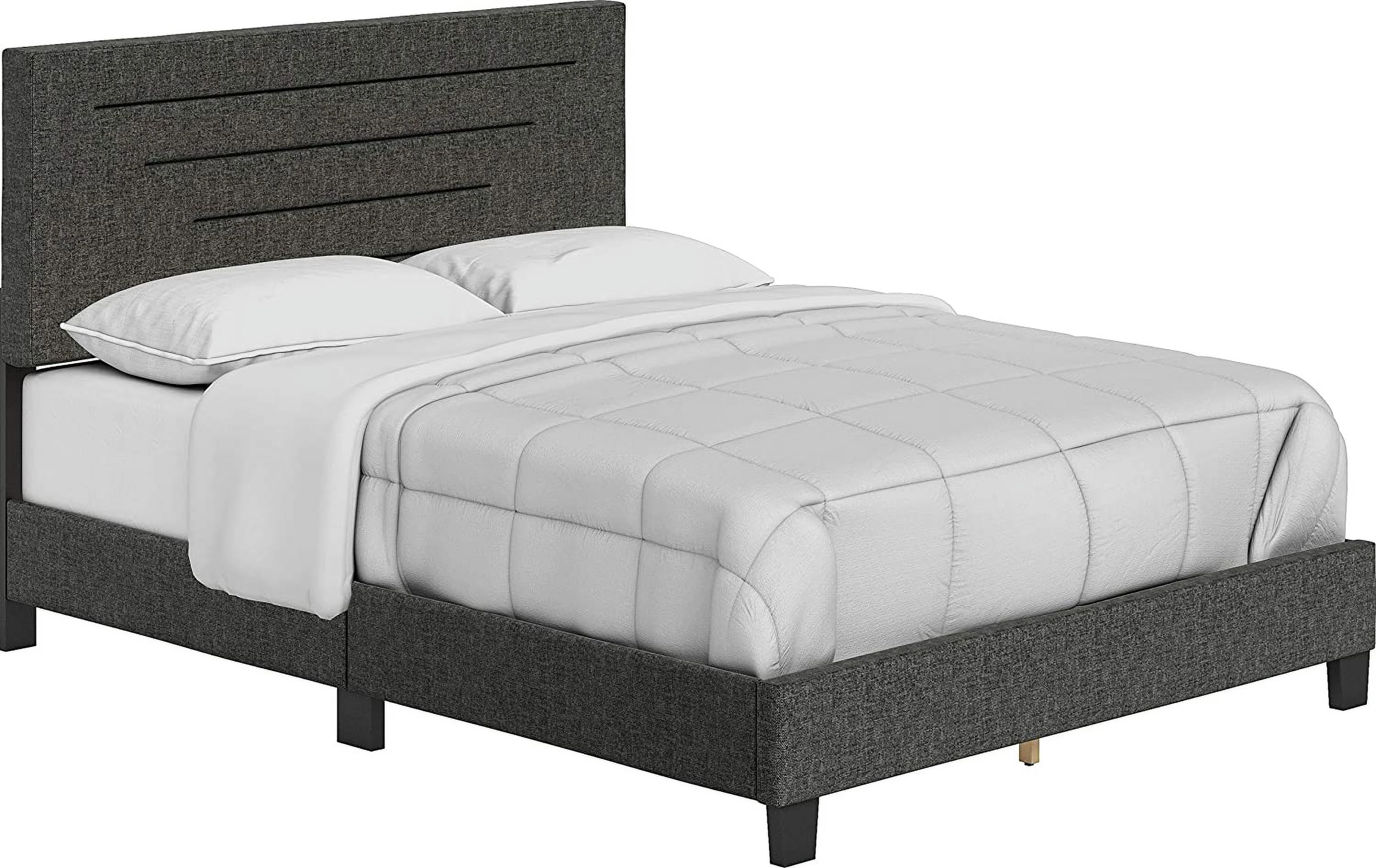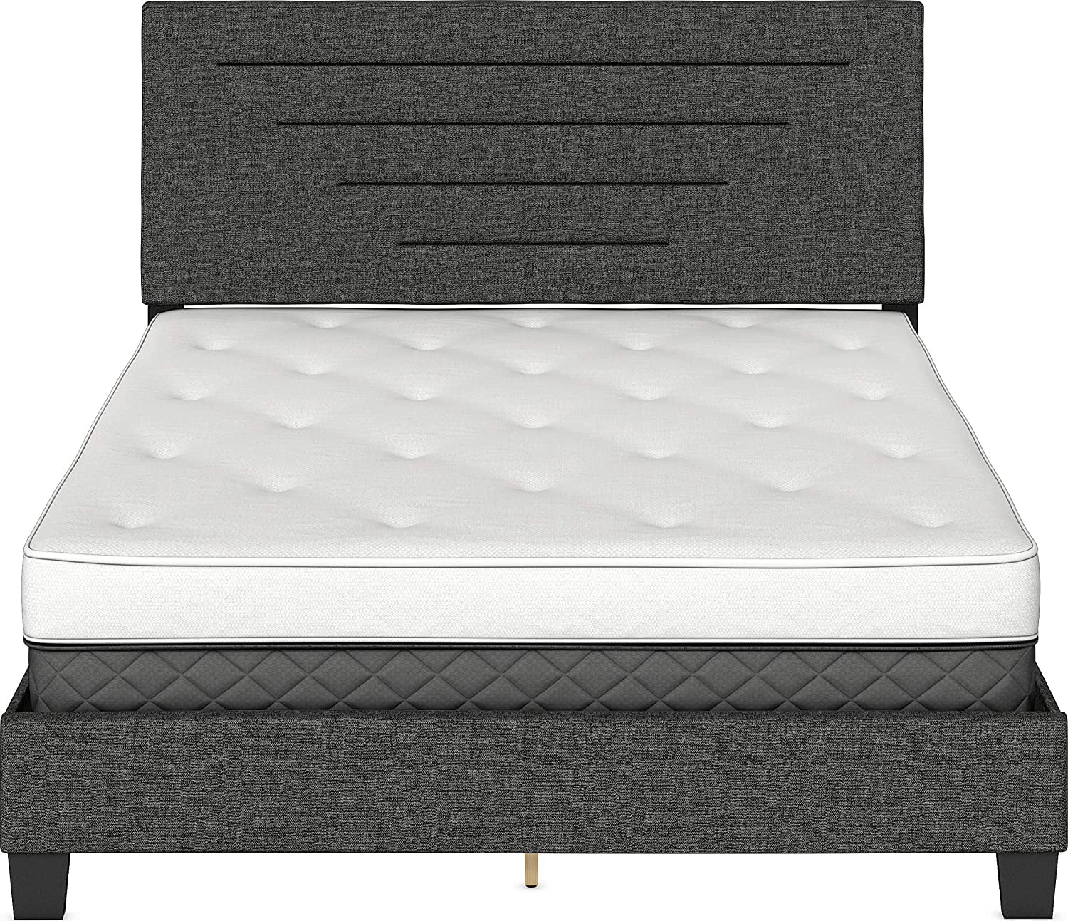 Atlin Designs Fabric Queen Bed w/ Diamond Button-Tufted Headboard in Dark Gray