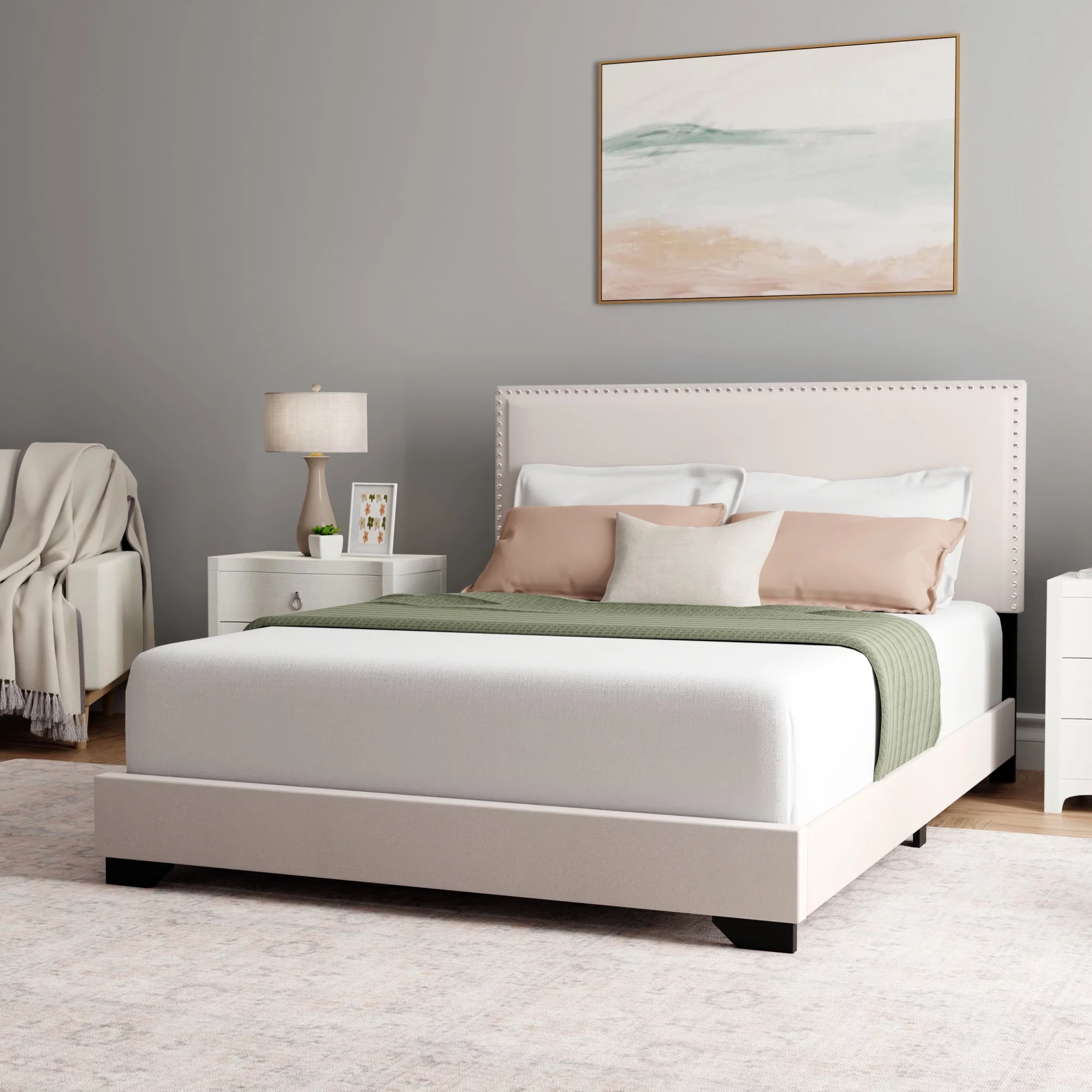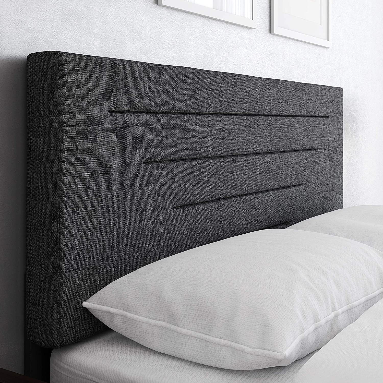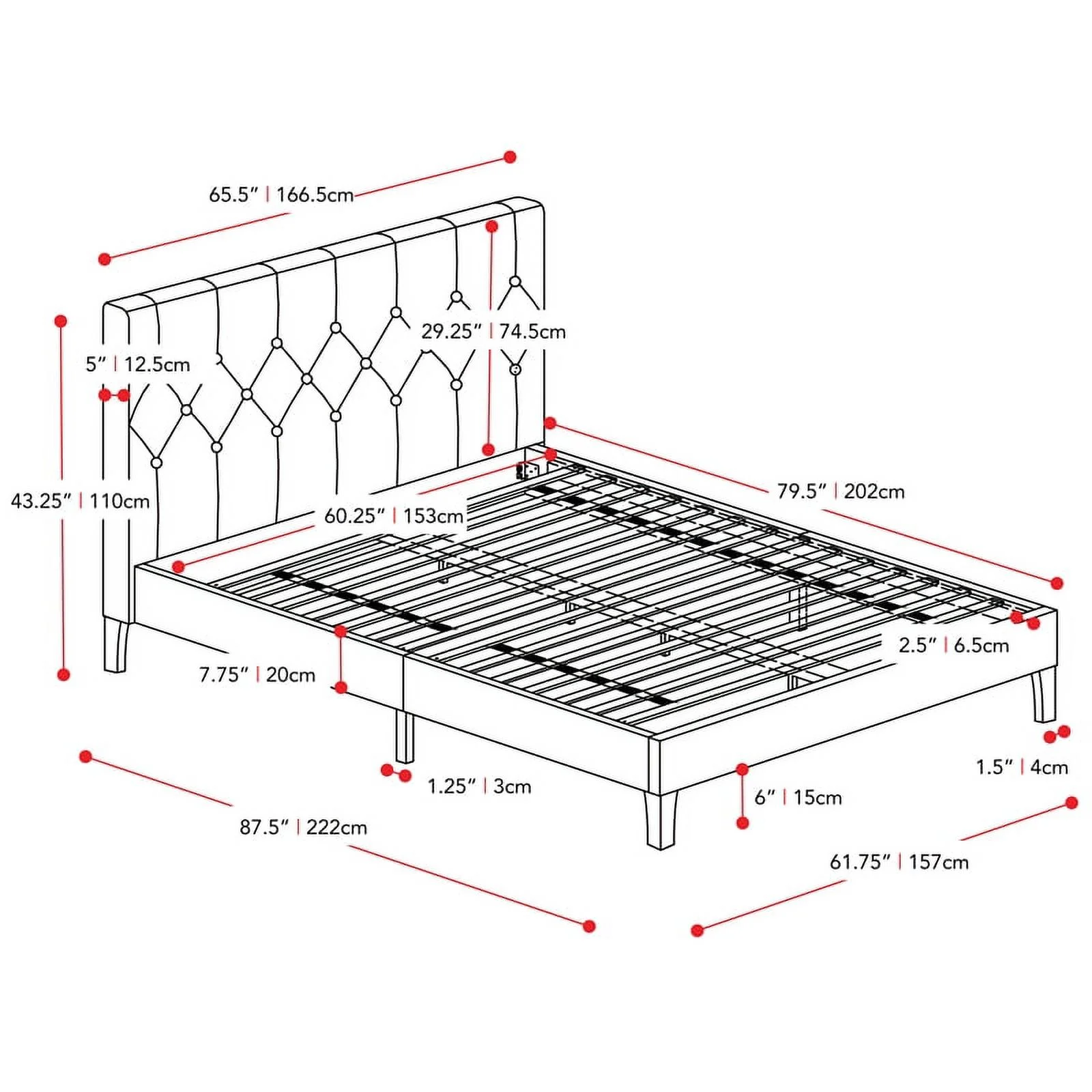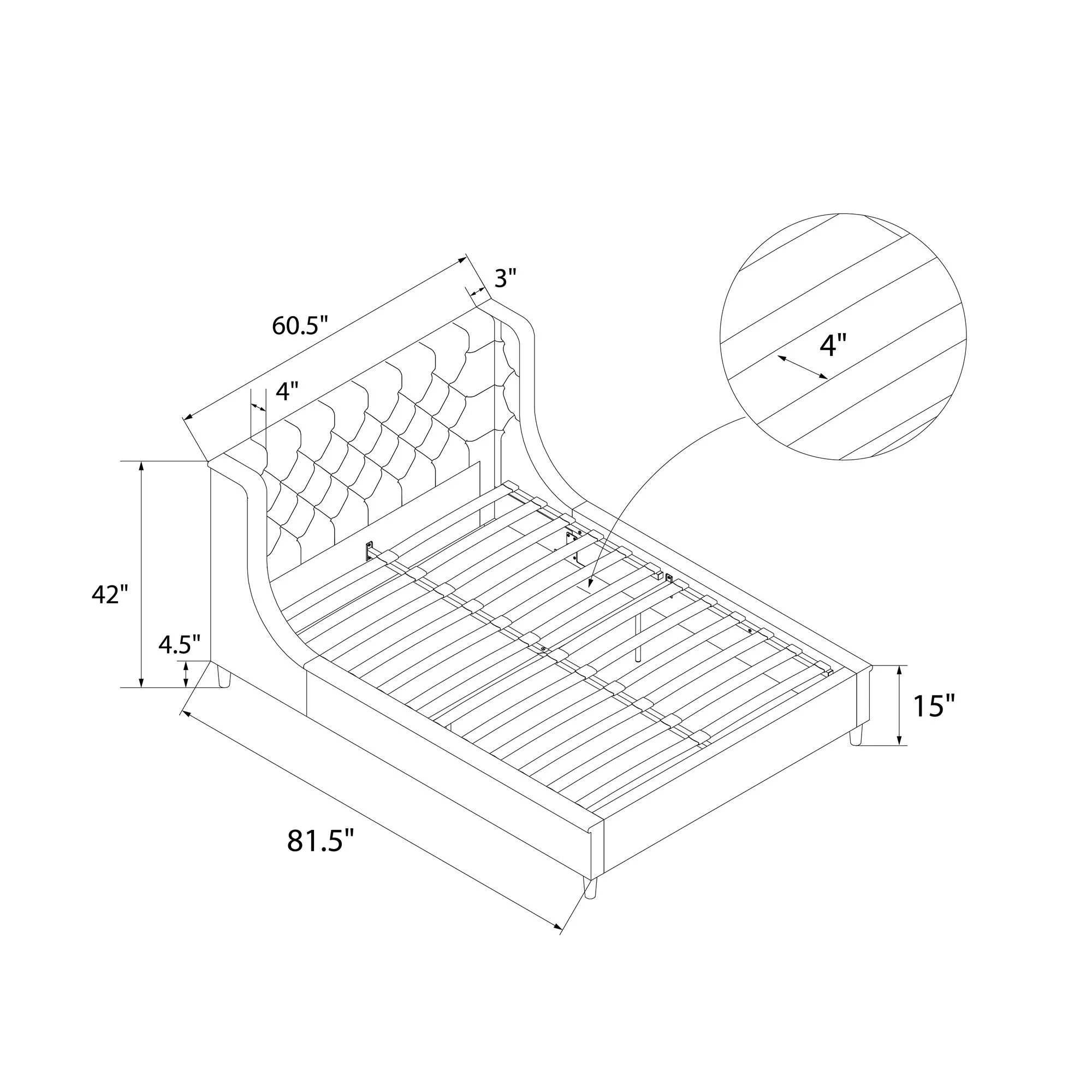 Atlin Designs Fabric Queen Bed w/ Diamond Button-Tufted Headboard in Dark Gray
