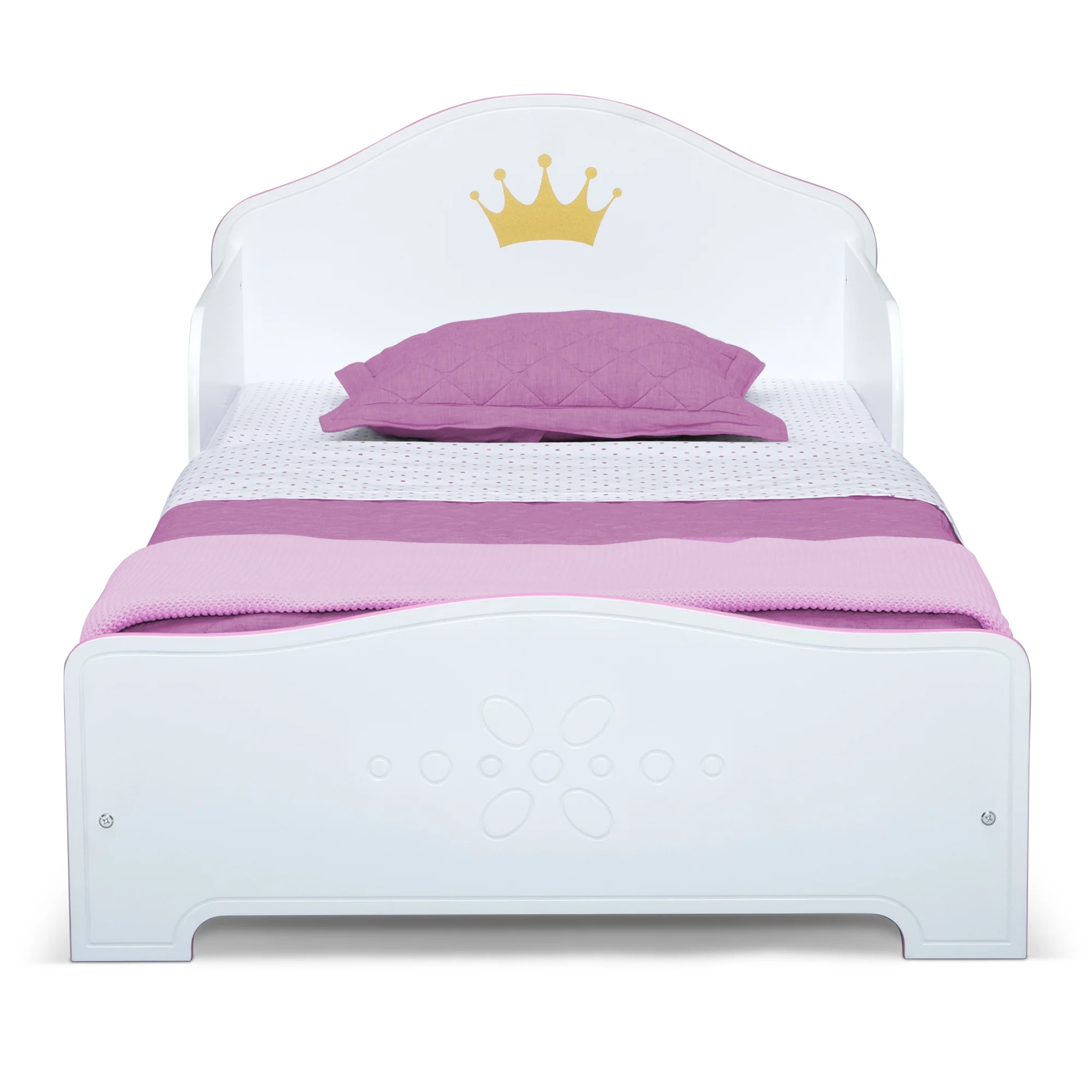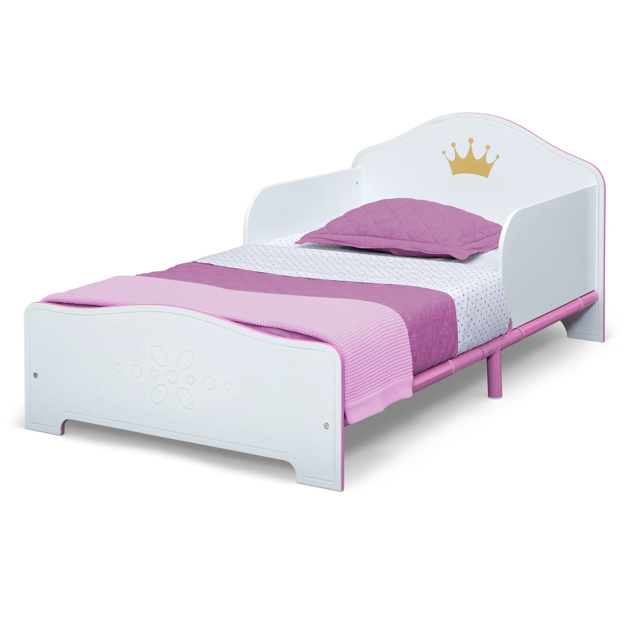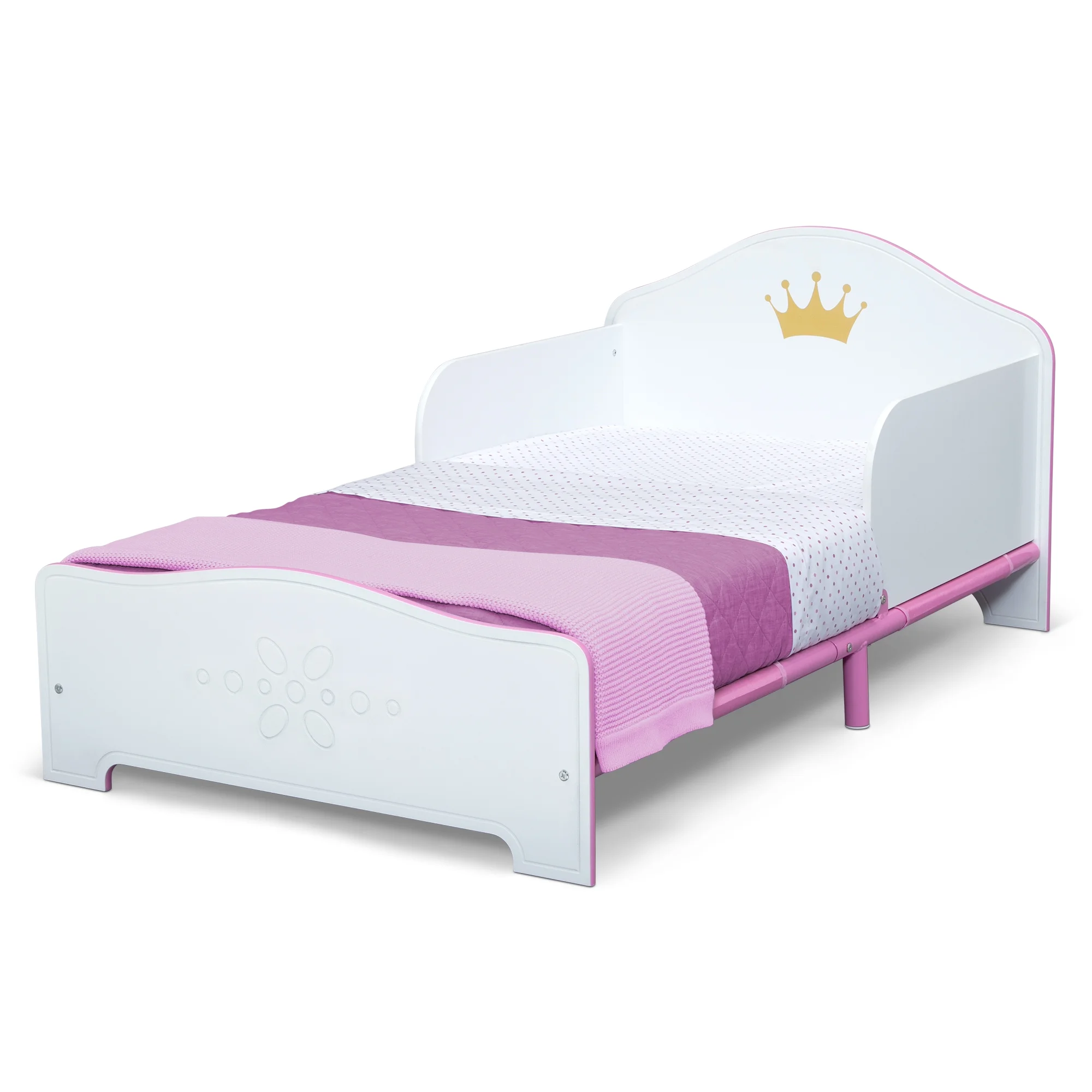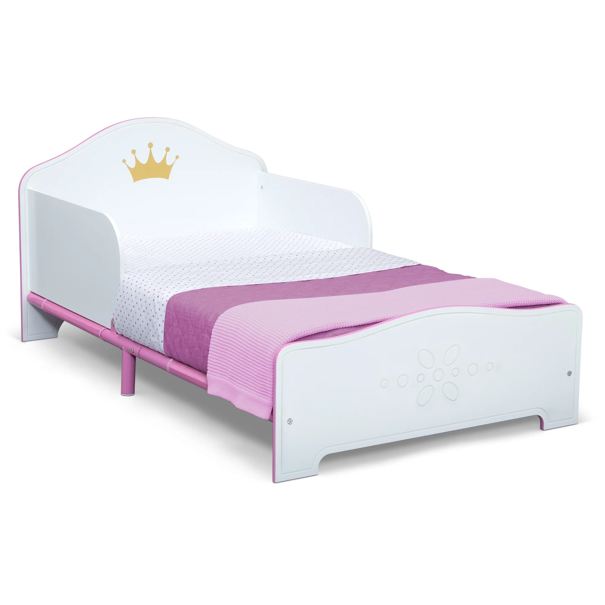 Delta Children Princess Crown Wood Toddler Bed with Fabric Mattress Support, Greenguard Gold Certified, White/Pink