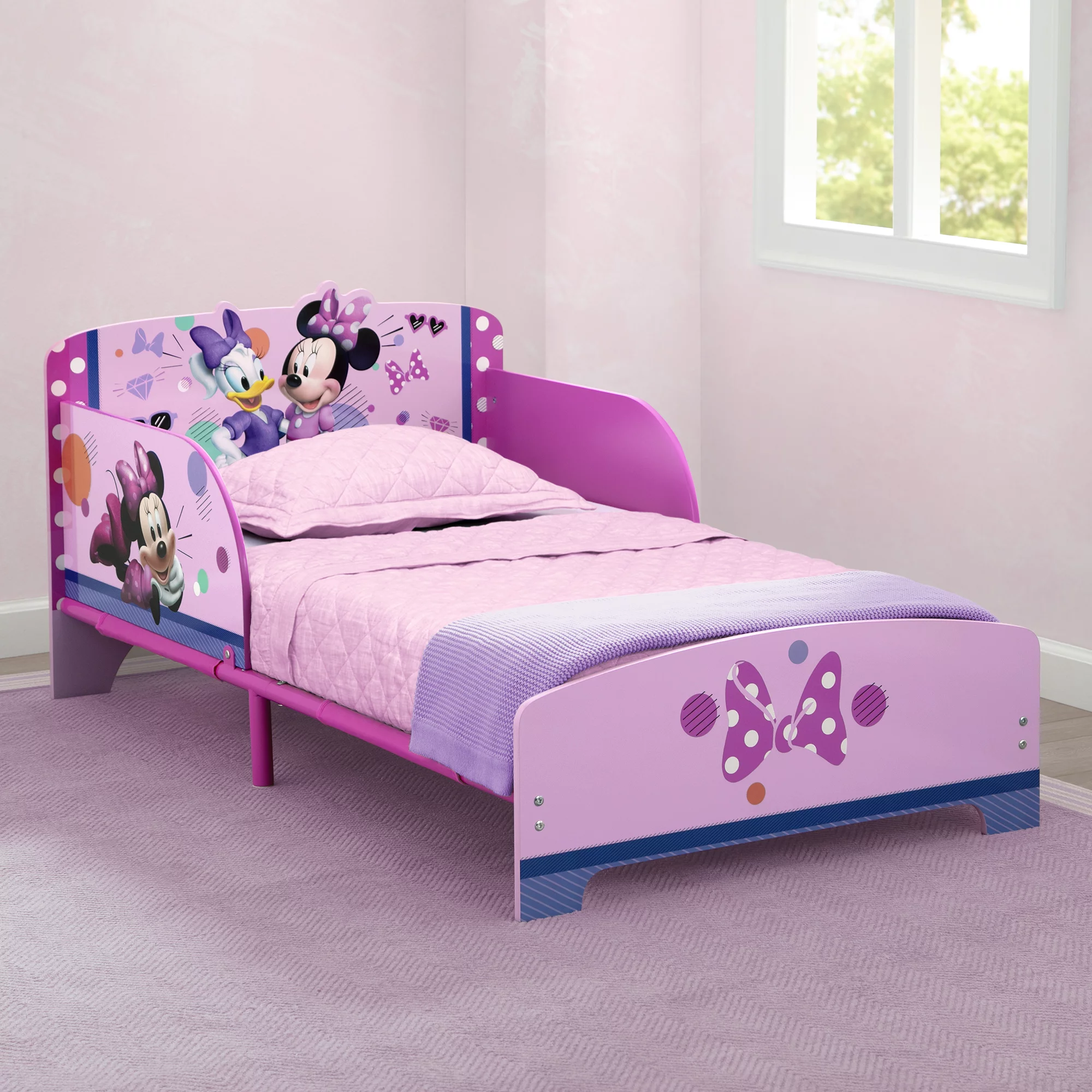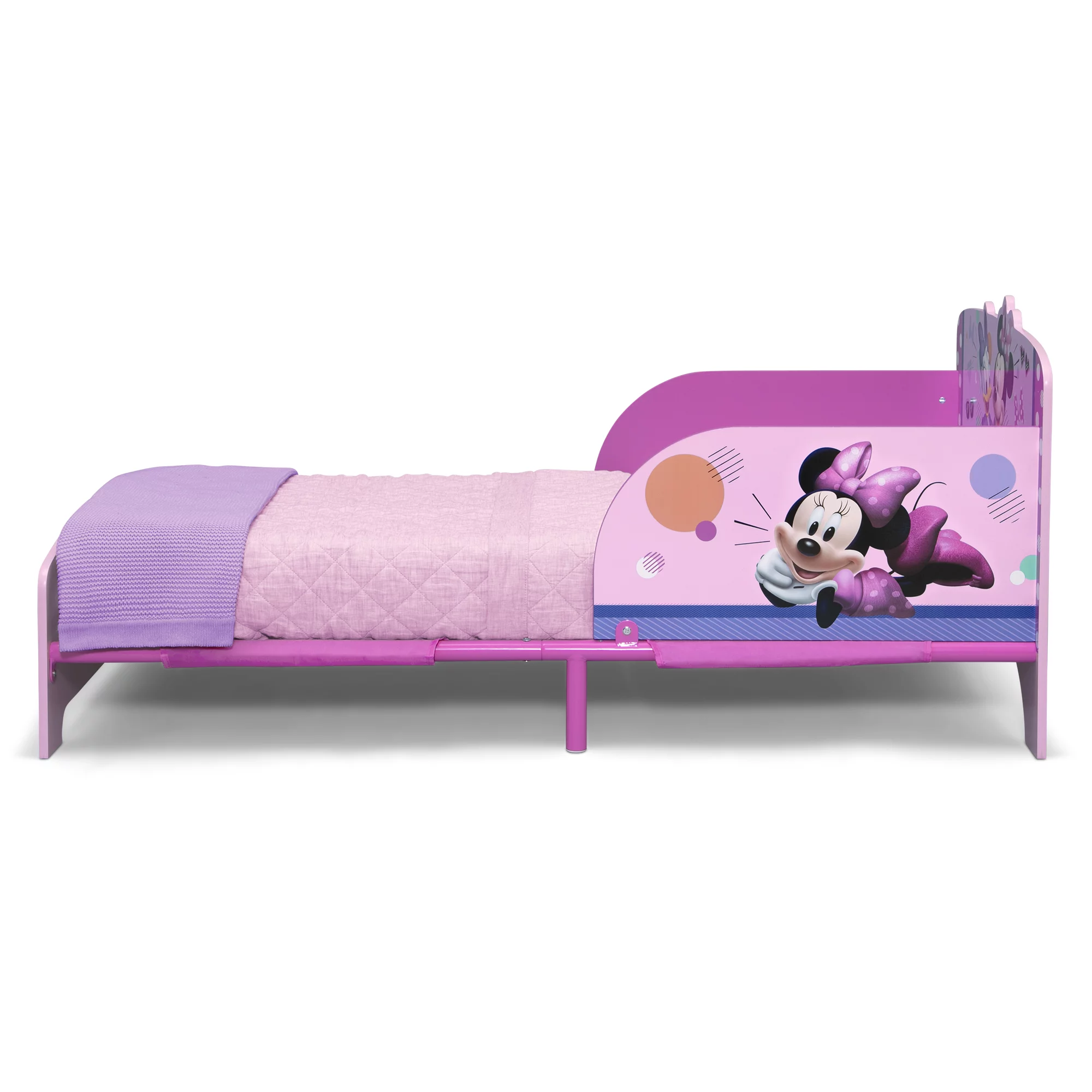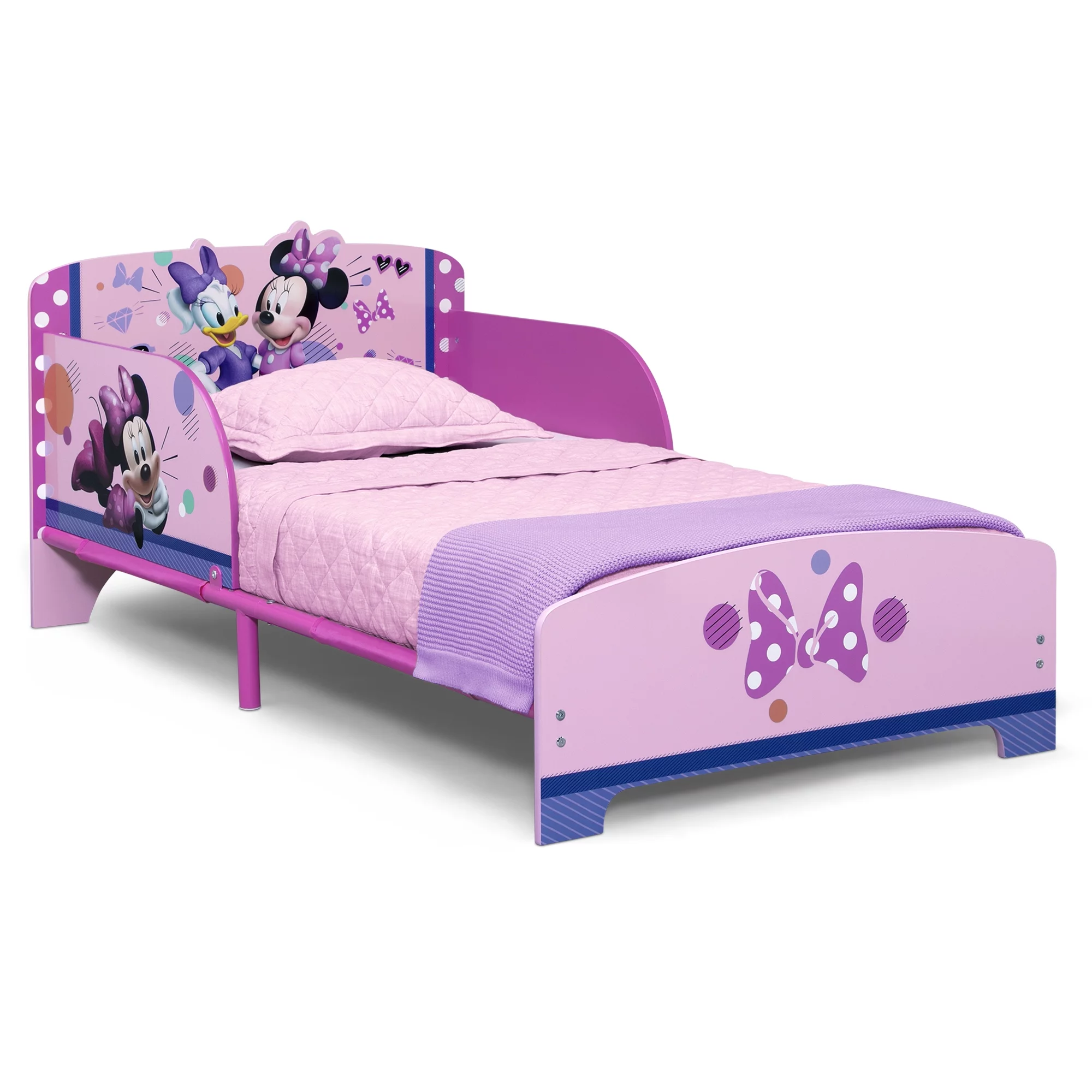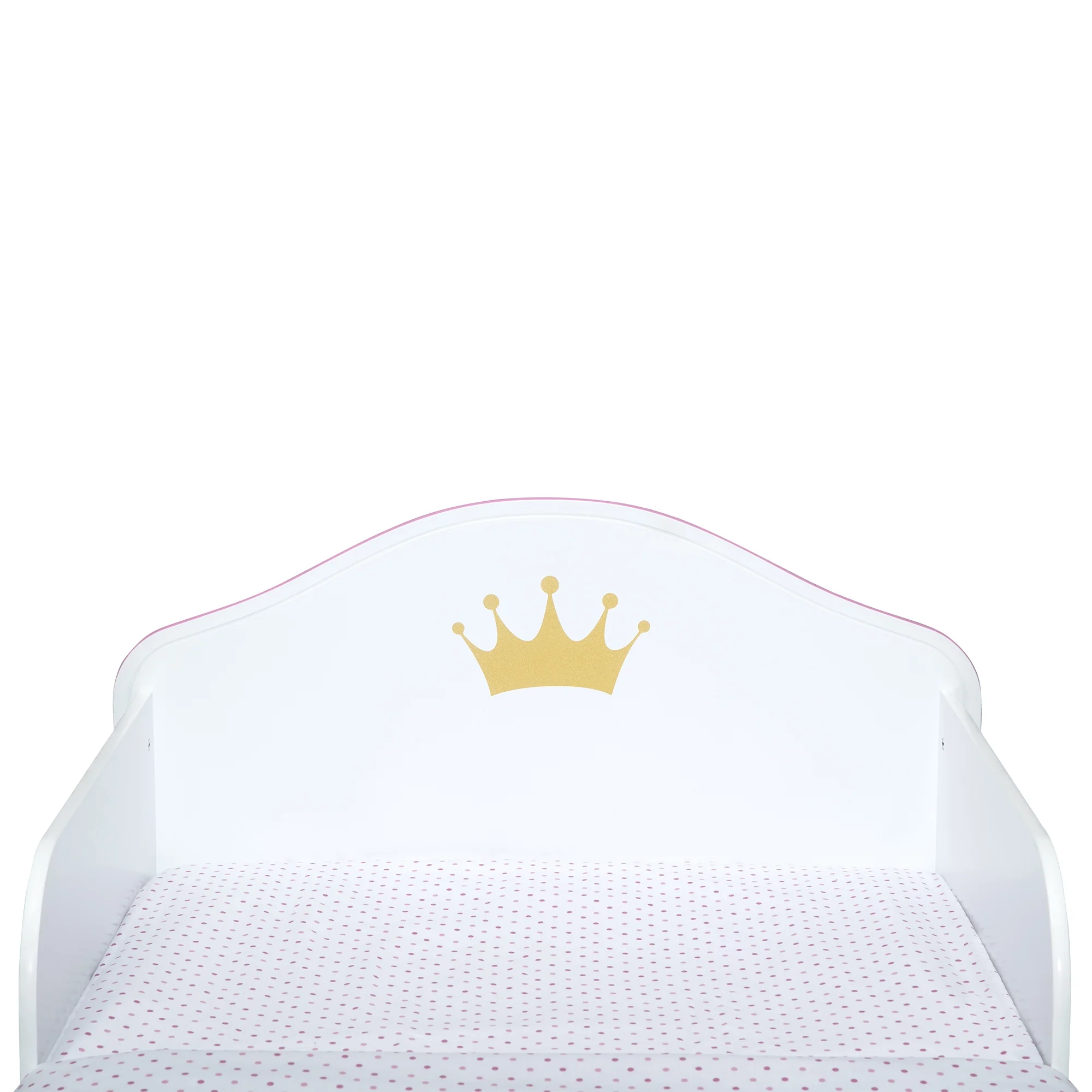 Delta Children Princess Crown Wood Toddler Bed with Fabric Mattress Support, Greenguard Gold Certified, White/Pink