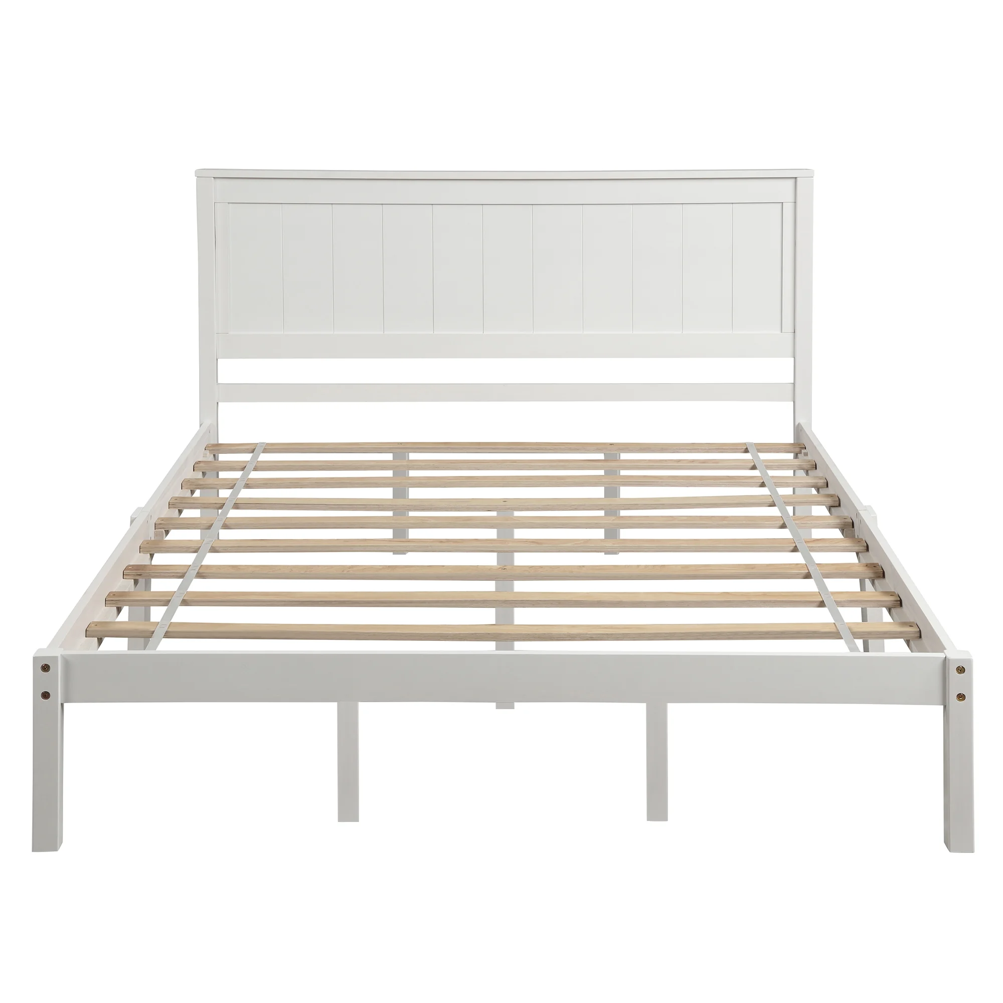 GoDecor Wood Platform Bed with Hardwood Slats Suitable for Bedroom/Kids, Include Headboard and Footboard, Full/White