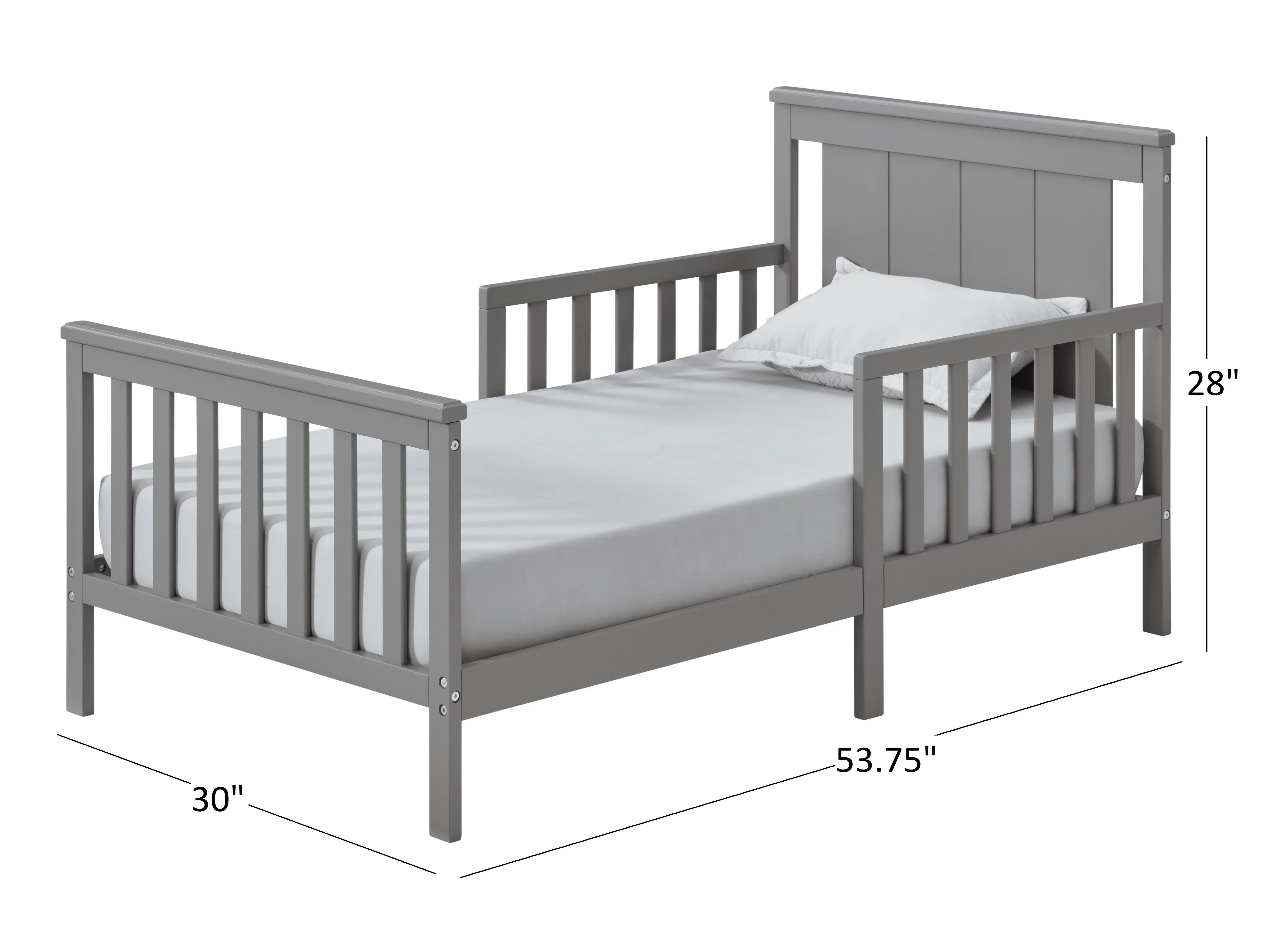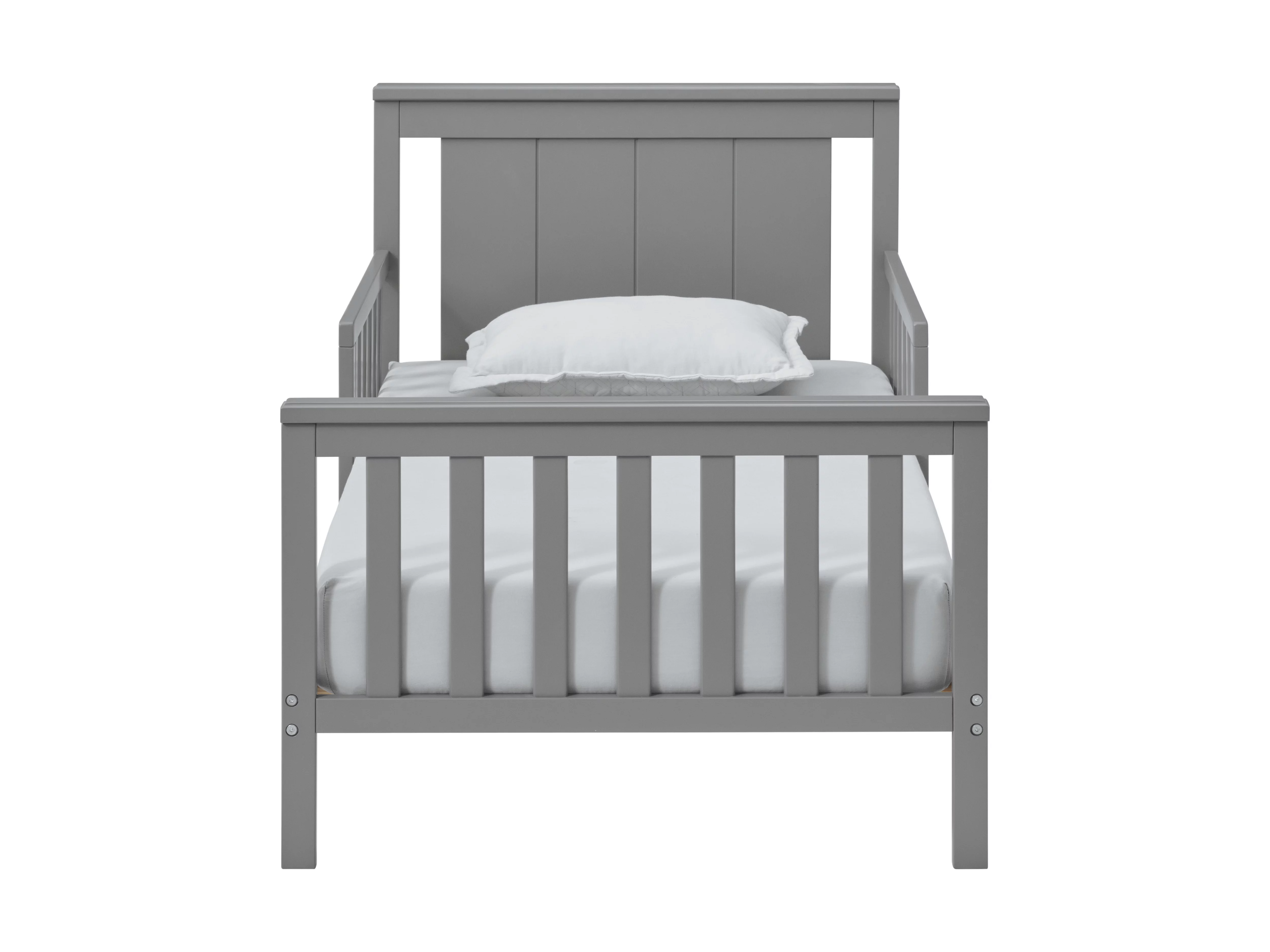 Oxford Baby Lazio Wood Frame Toddler Bed with Guardrails and Straight-Line Headboard, Dove Gray