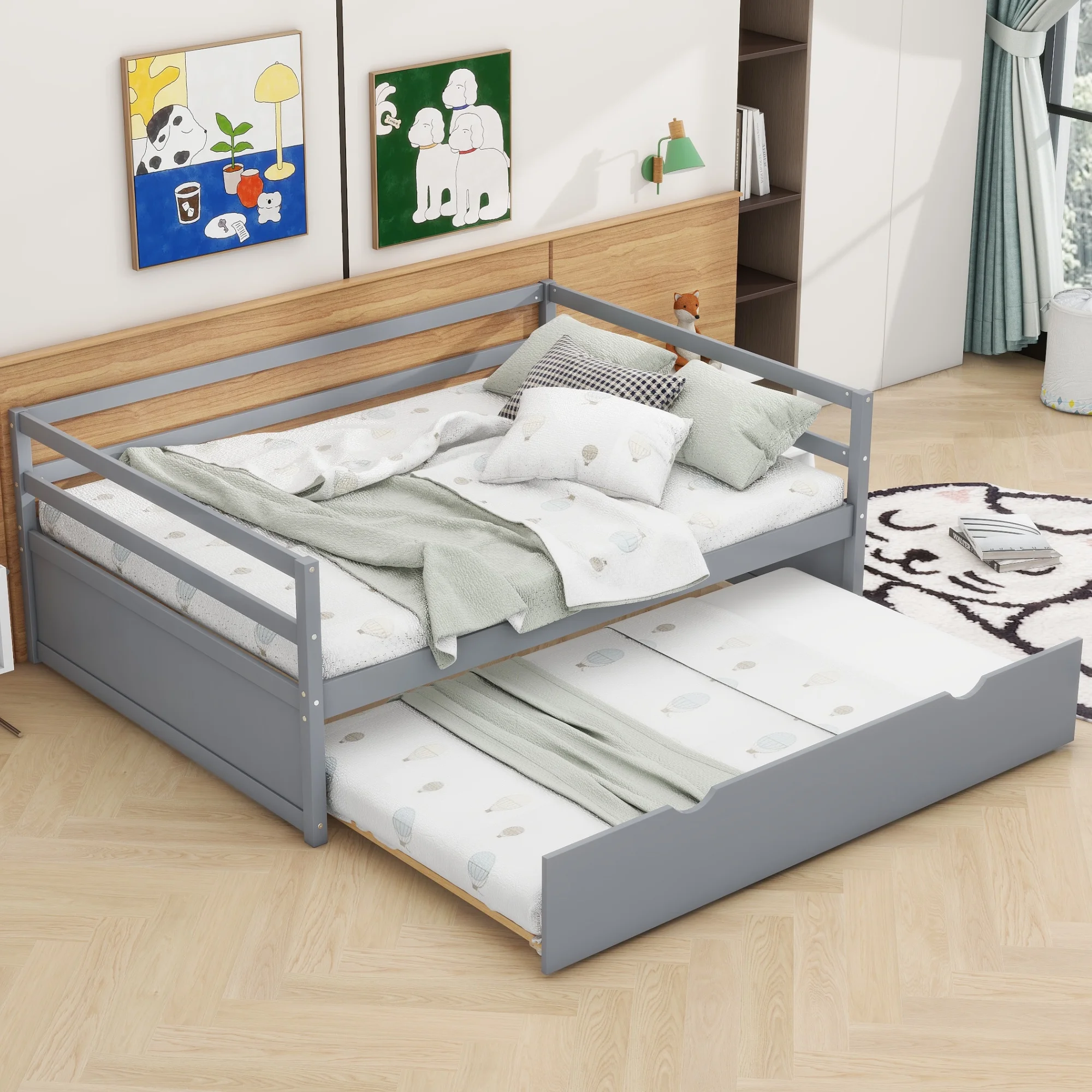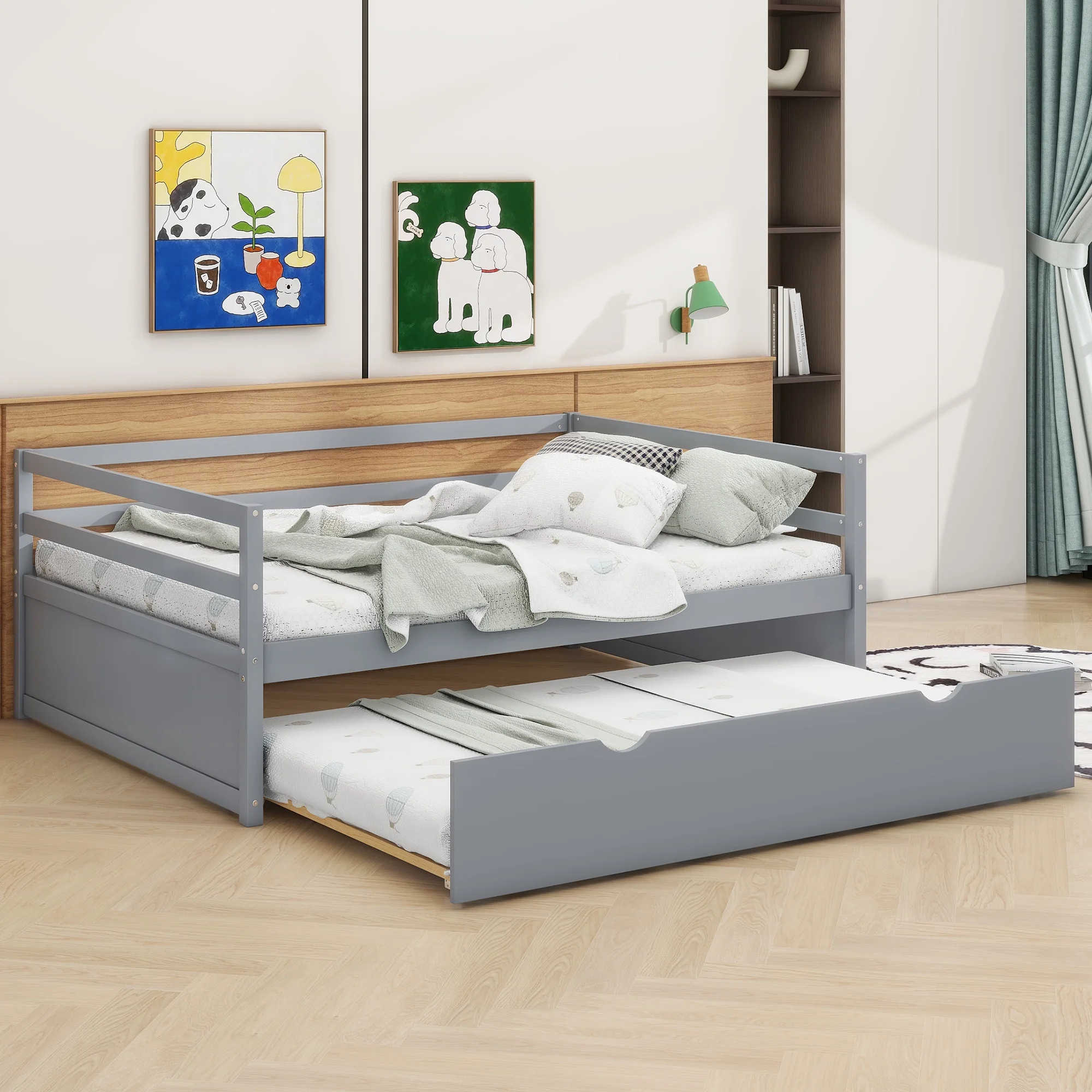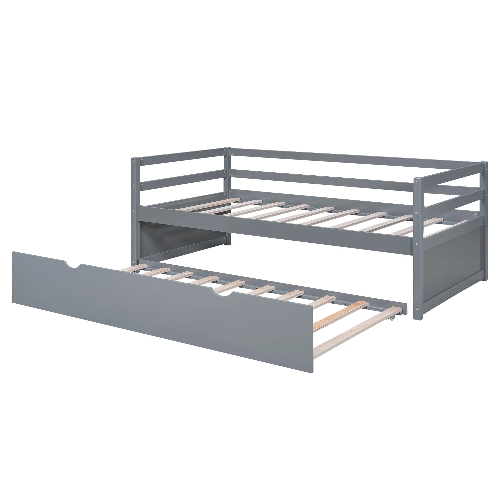 Euroco Twin Size Daybed with Twin Trundle Bed for Kids Teens Adults, Gray