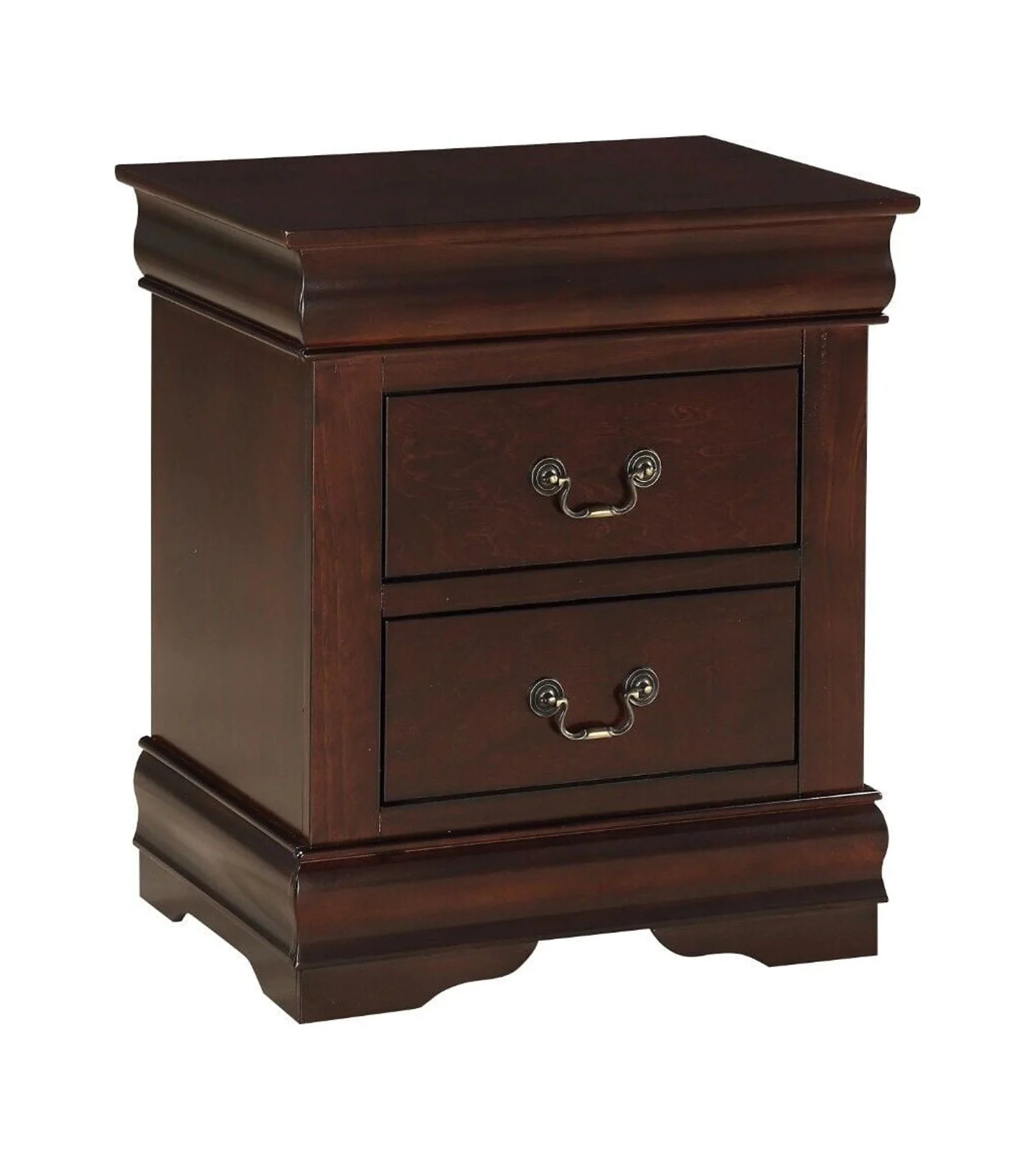 3pc Louis Philip Collection Transitional King Size Bedroom Set Panel Bed and 2x Nightstands Cherry Brown Finish Wooden Furniture