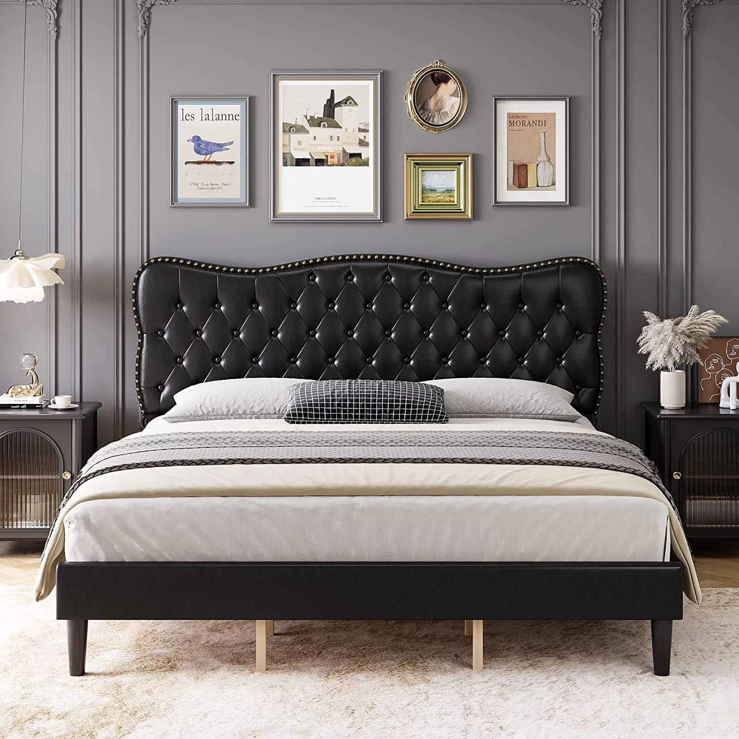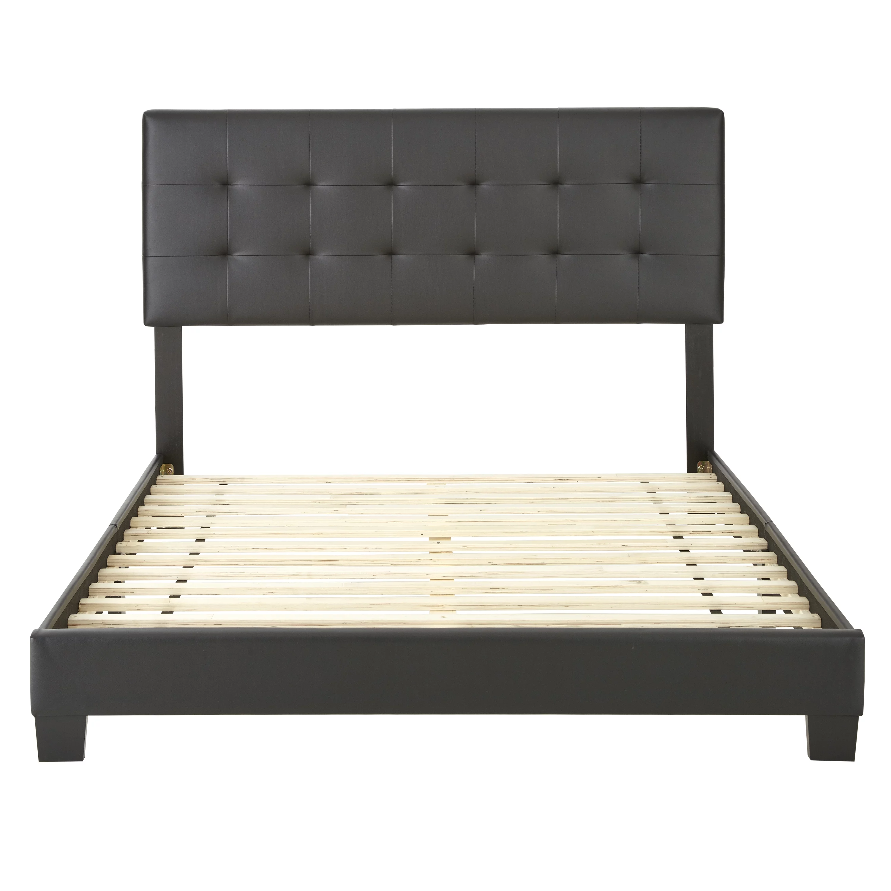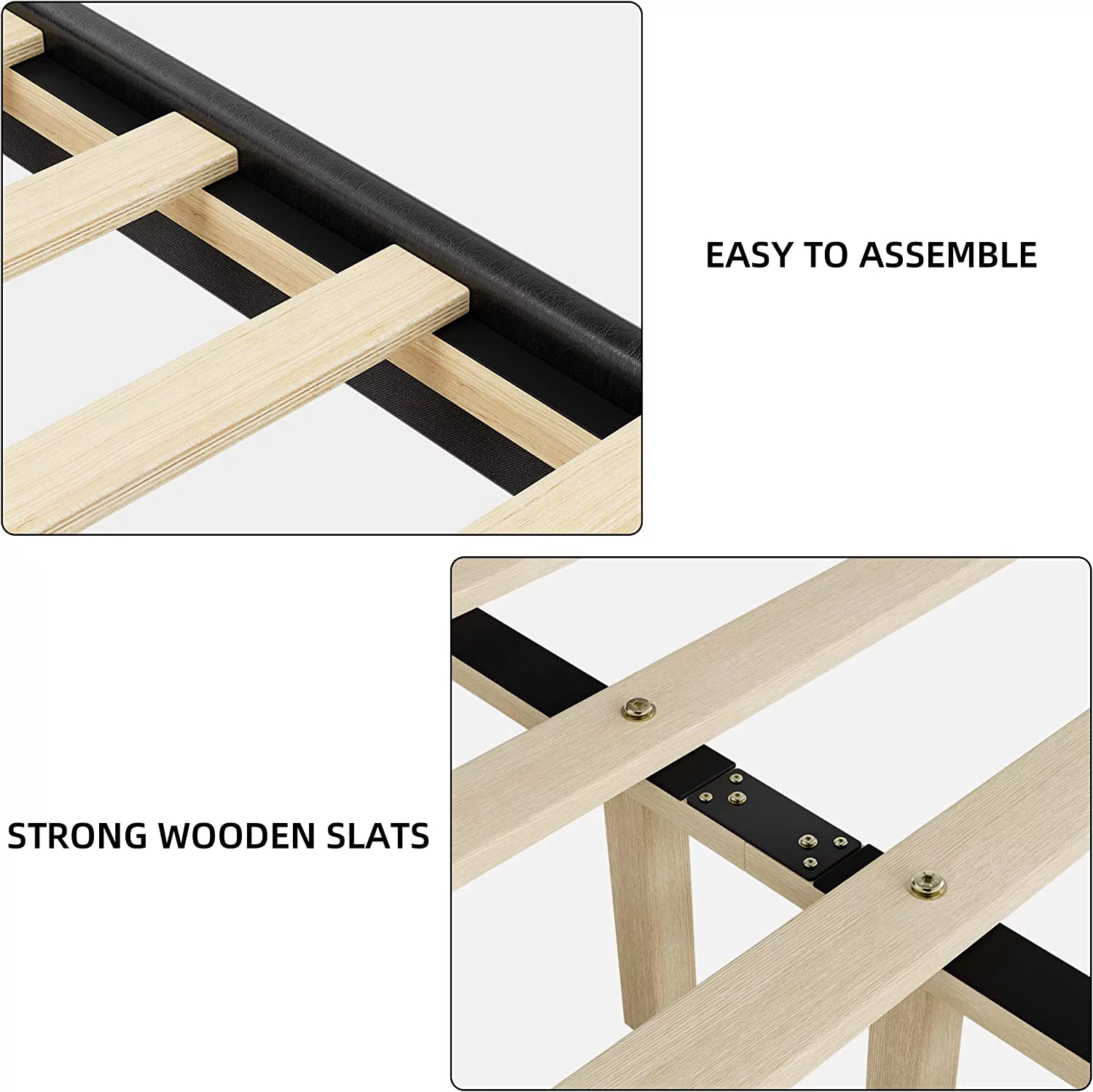Boyd Sleep Roma Upholstered Tufted Faux Leather Platform Bed Frame with Bonus Base Wooden Slat System, Full, Black