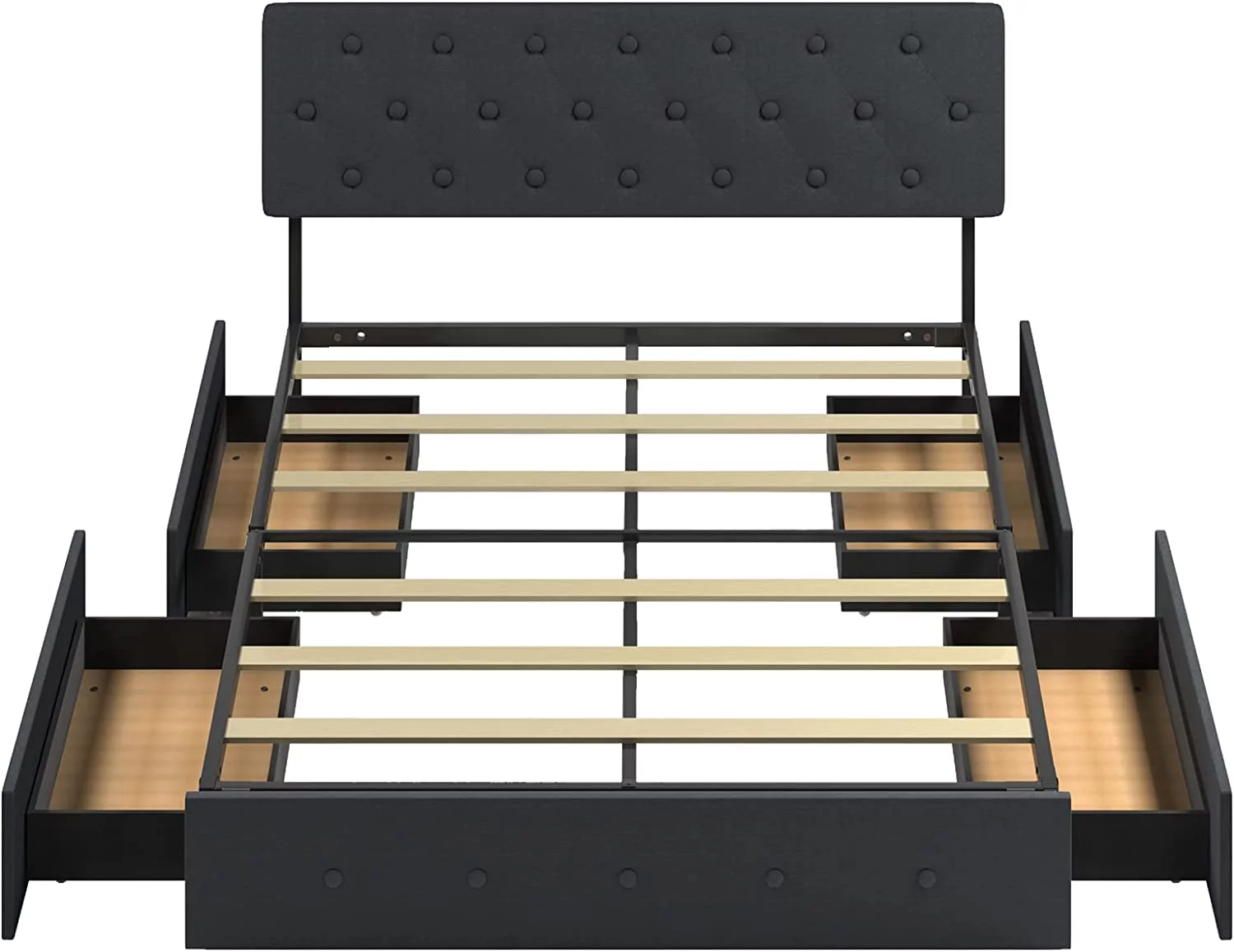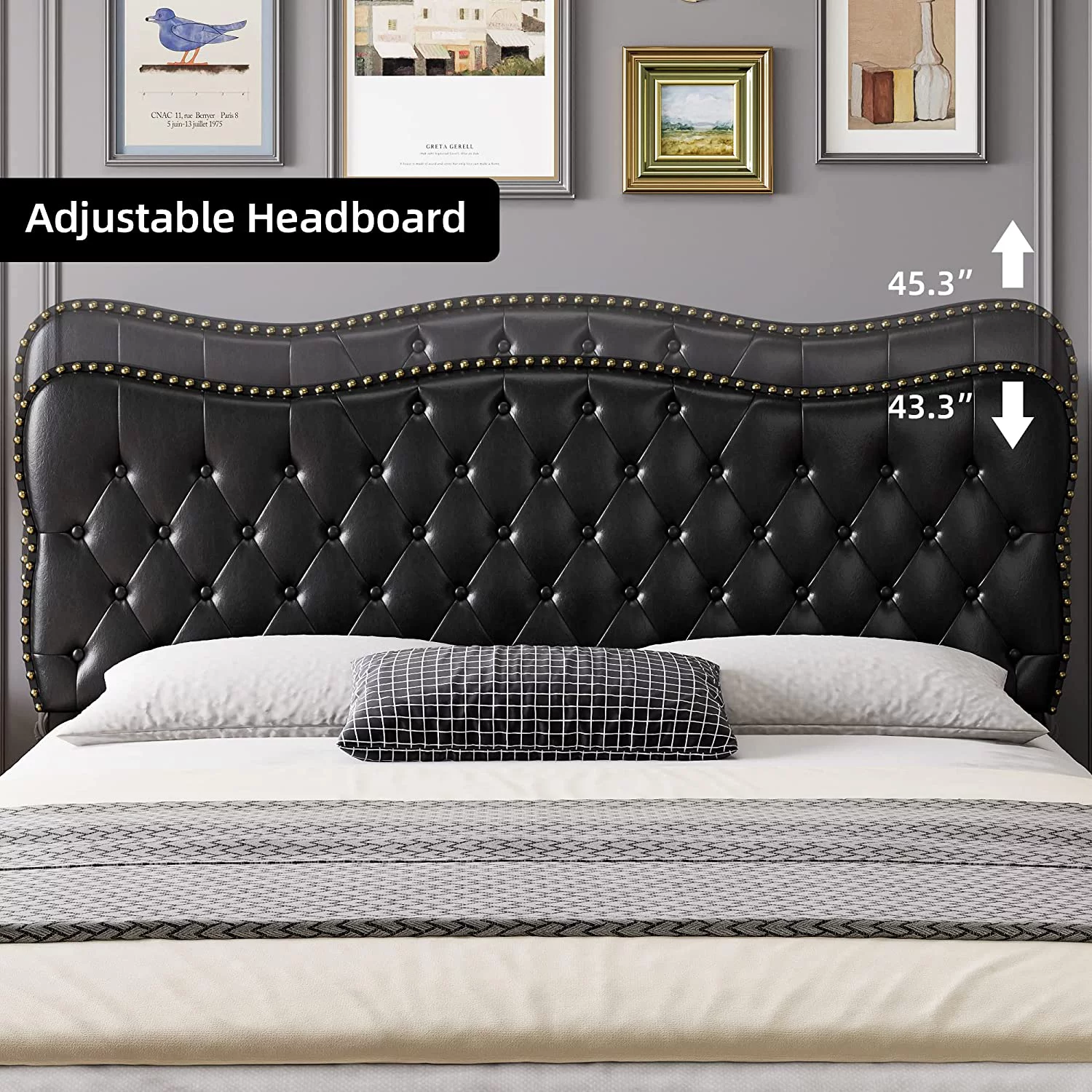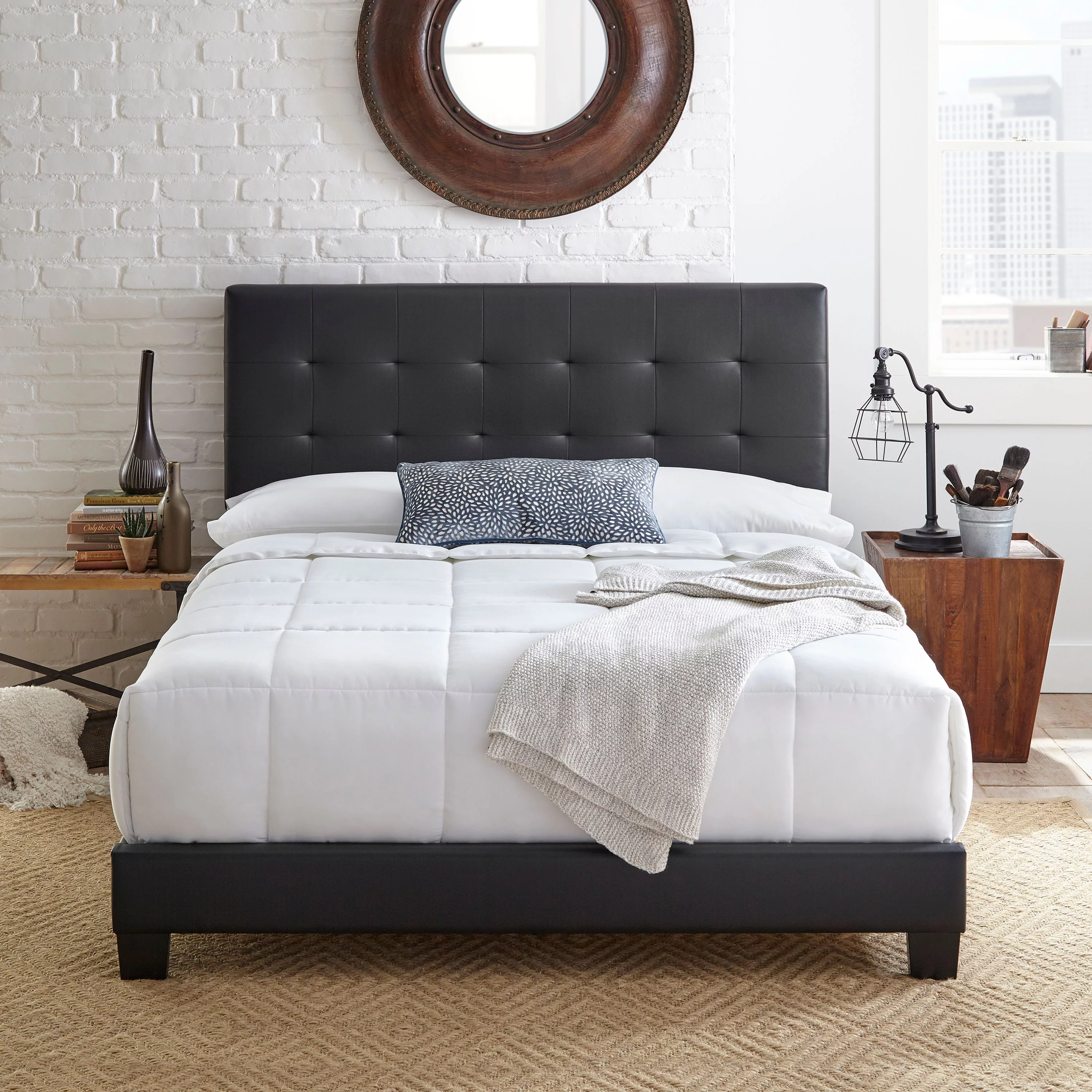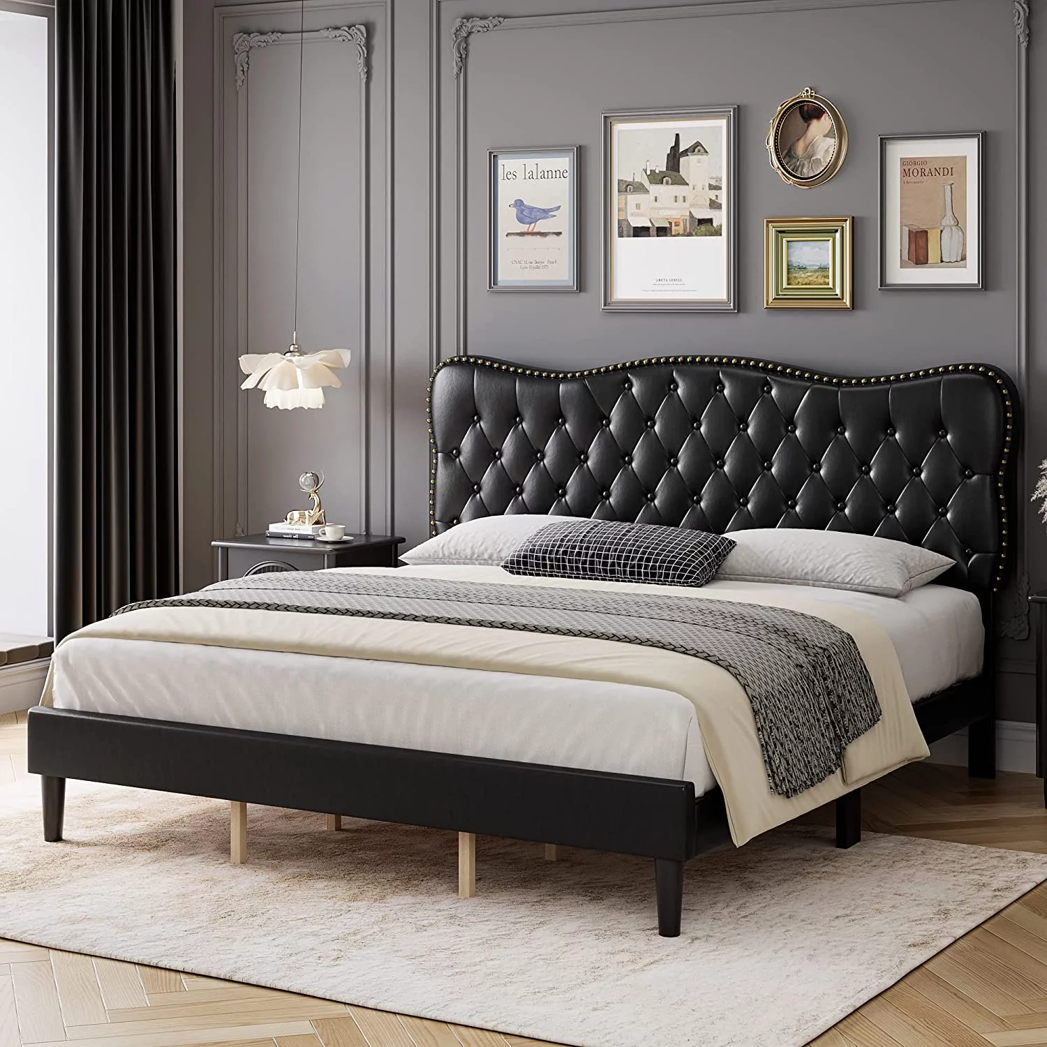 Boyd Sleep Roma Upholstered Tufted Faux Leather Platform Bed Frame with Bonus Base Wooden Slat System, Full, Black