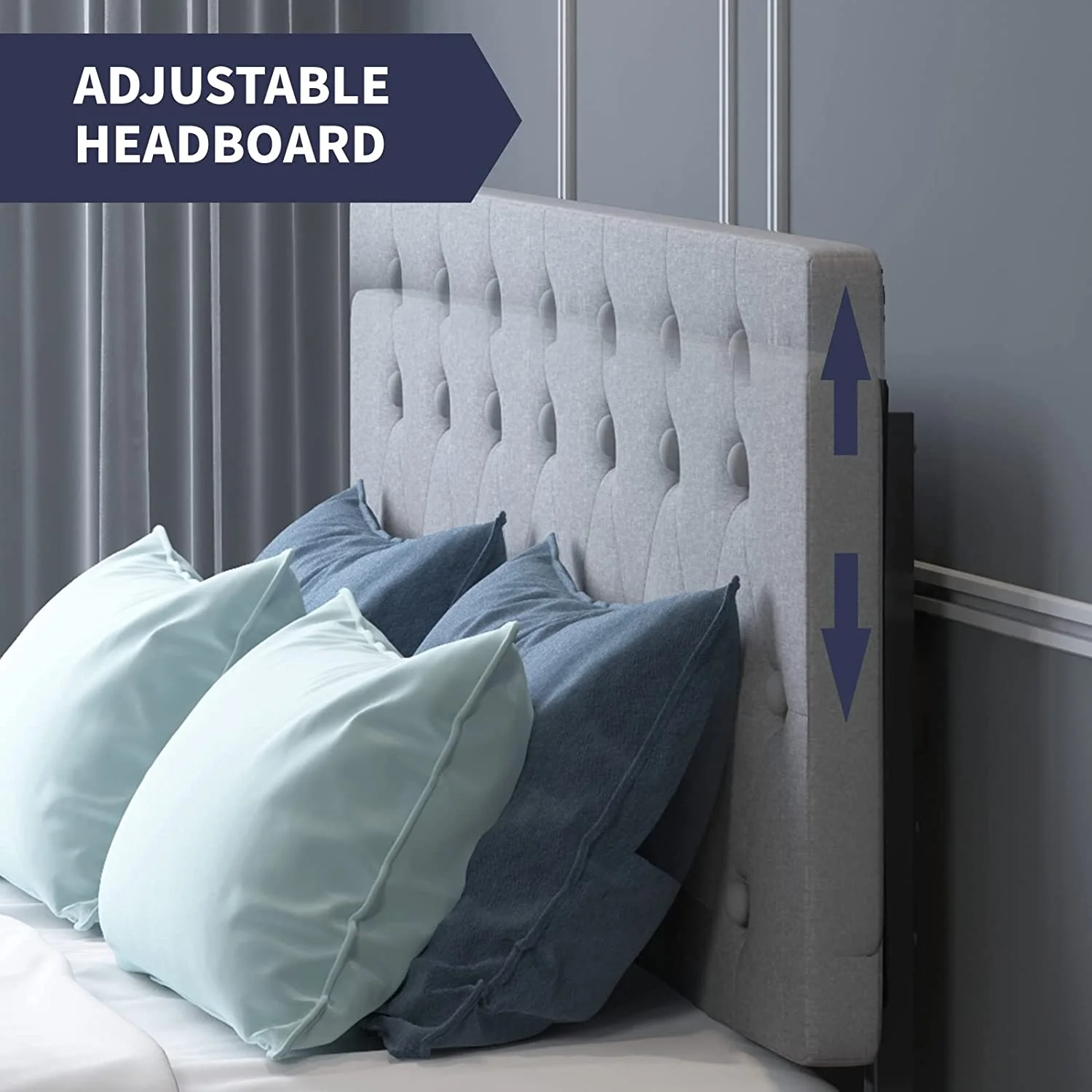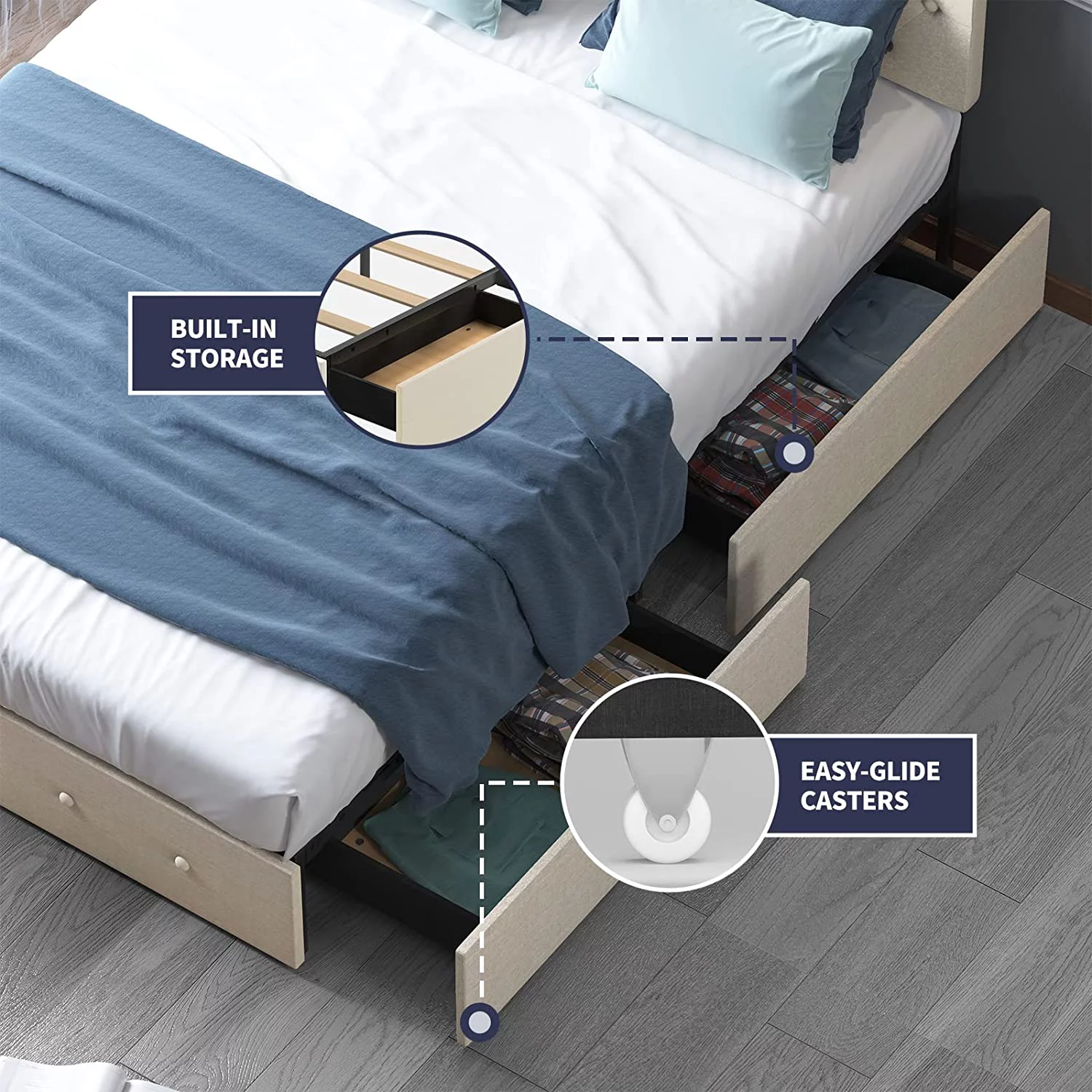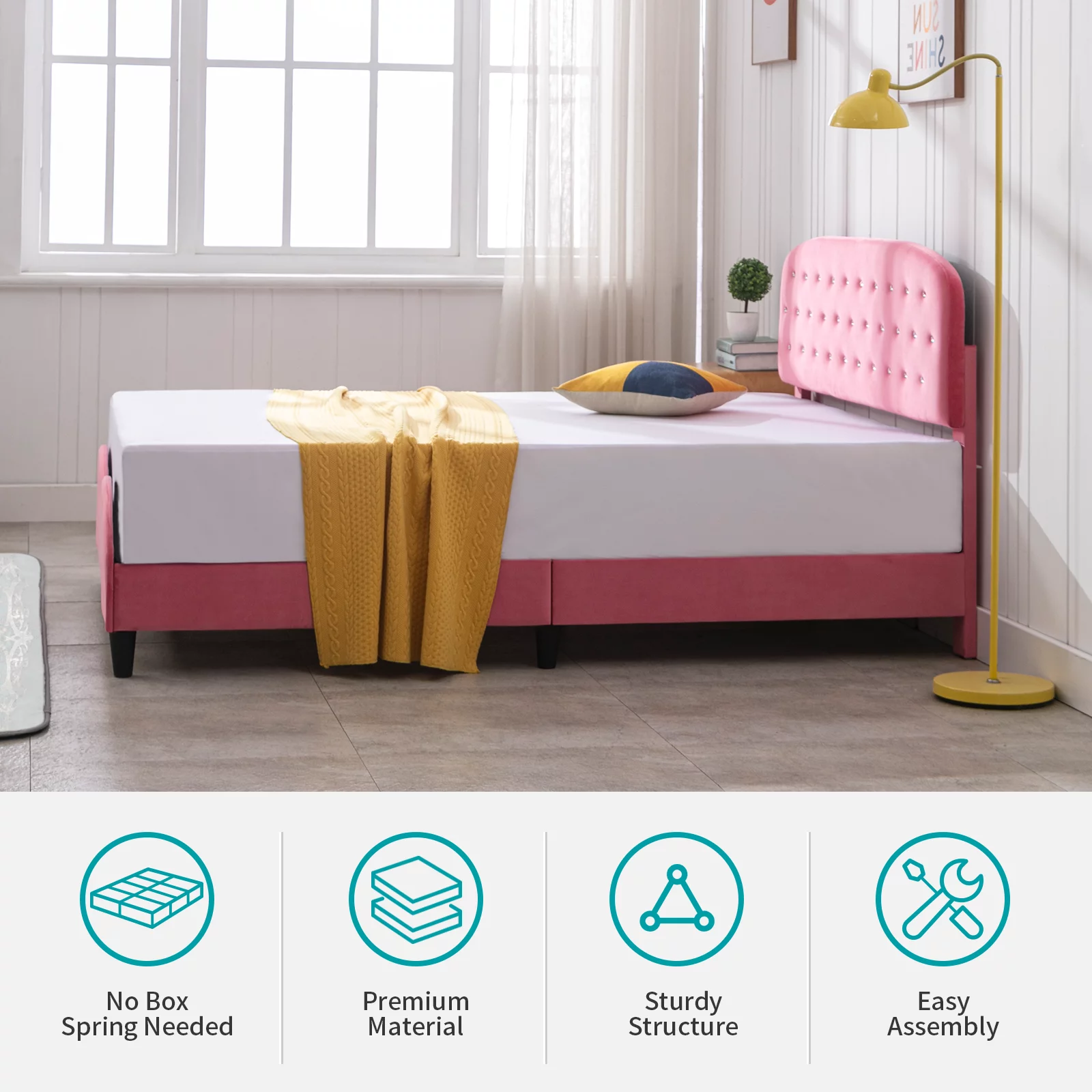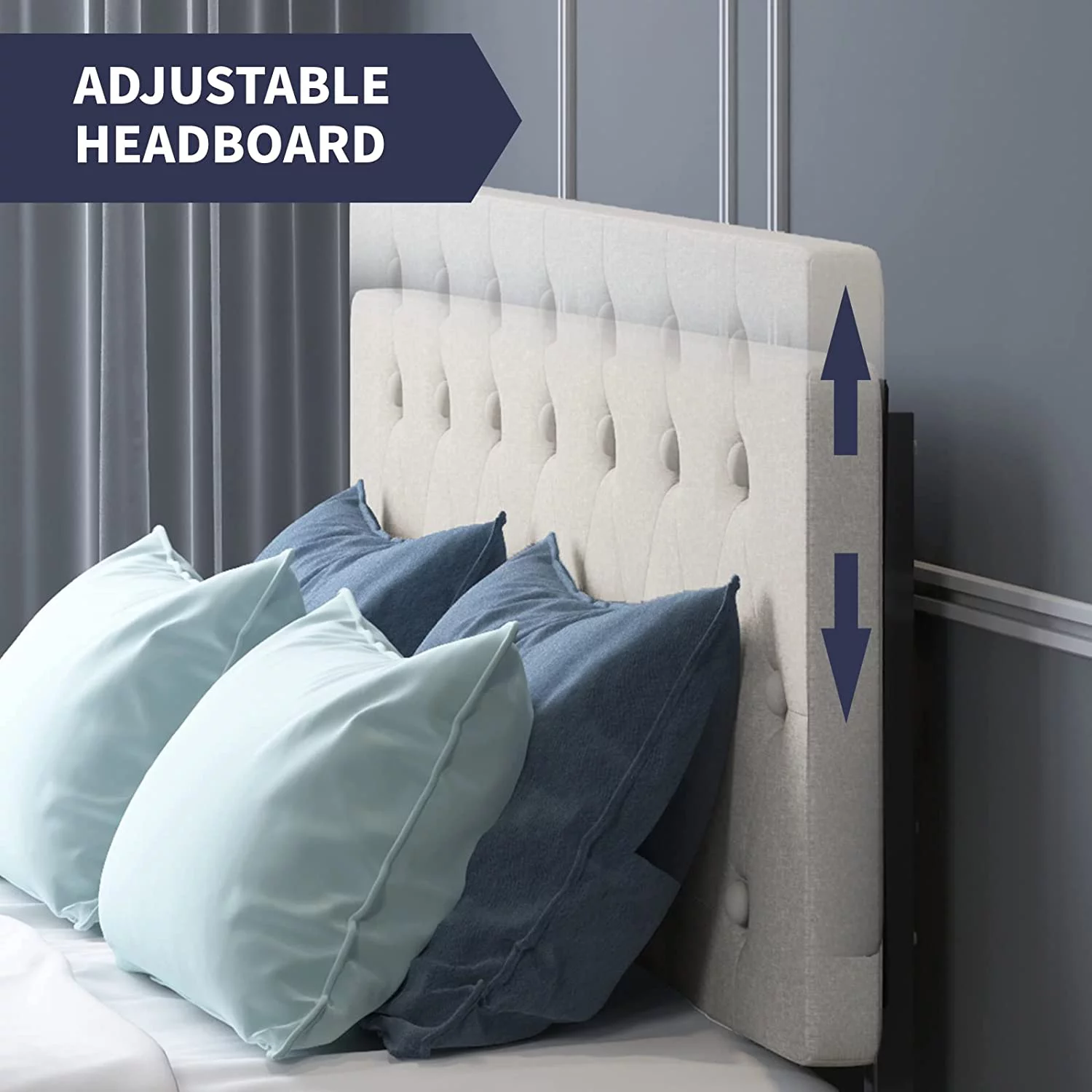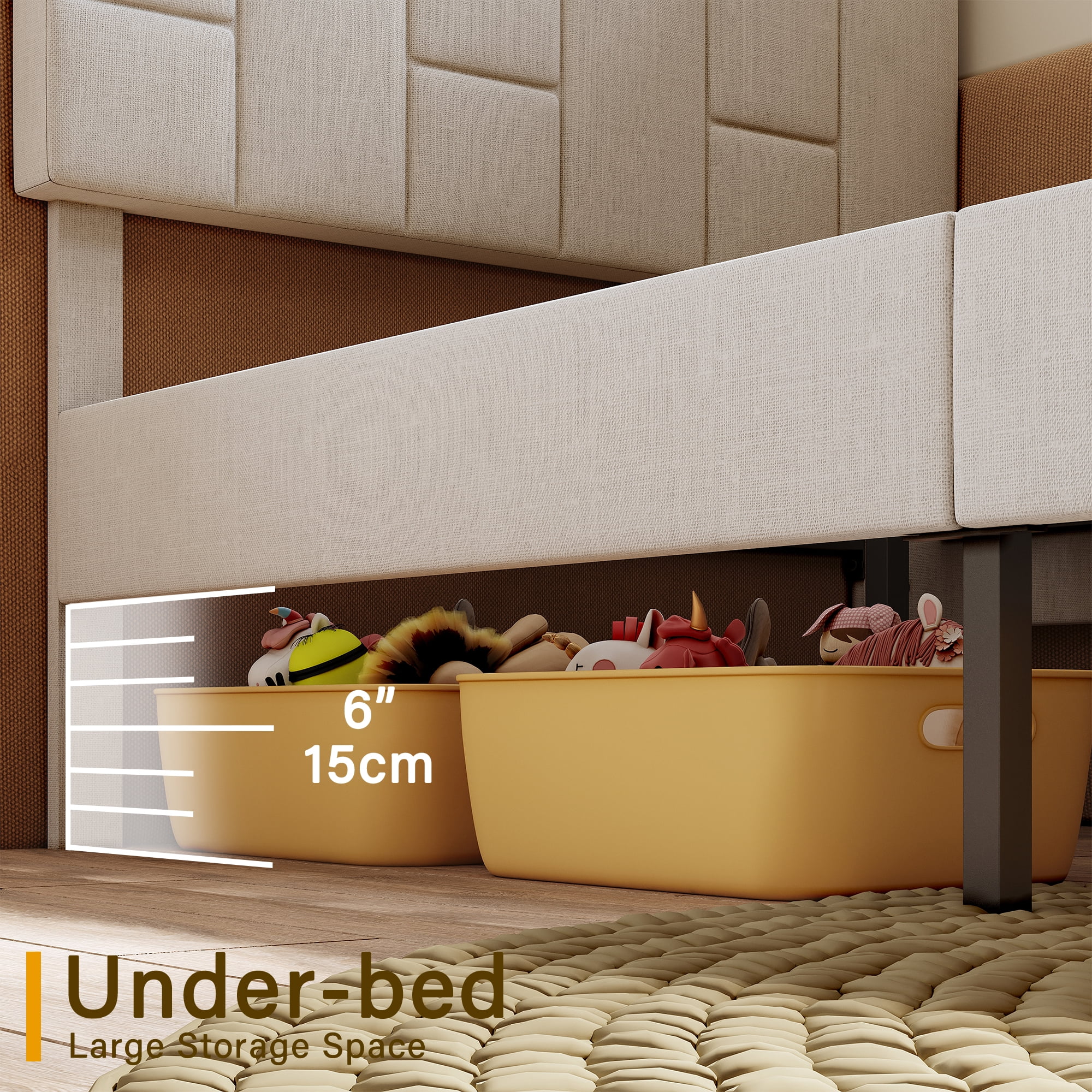 LIKIMIO Twin Platform Bed Frame with Upholstered Headboard and Wood Slat Support, Beige