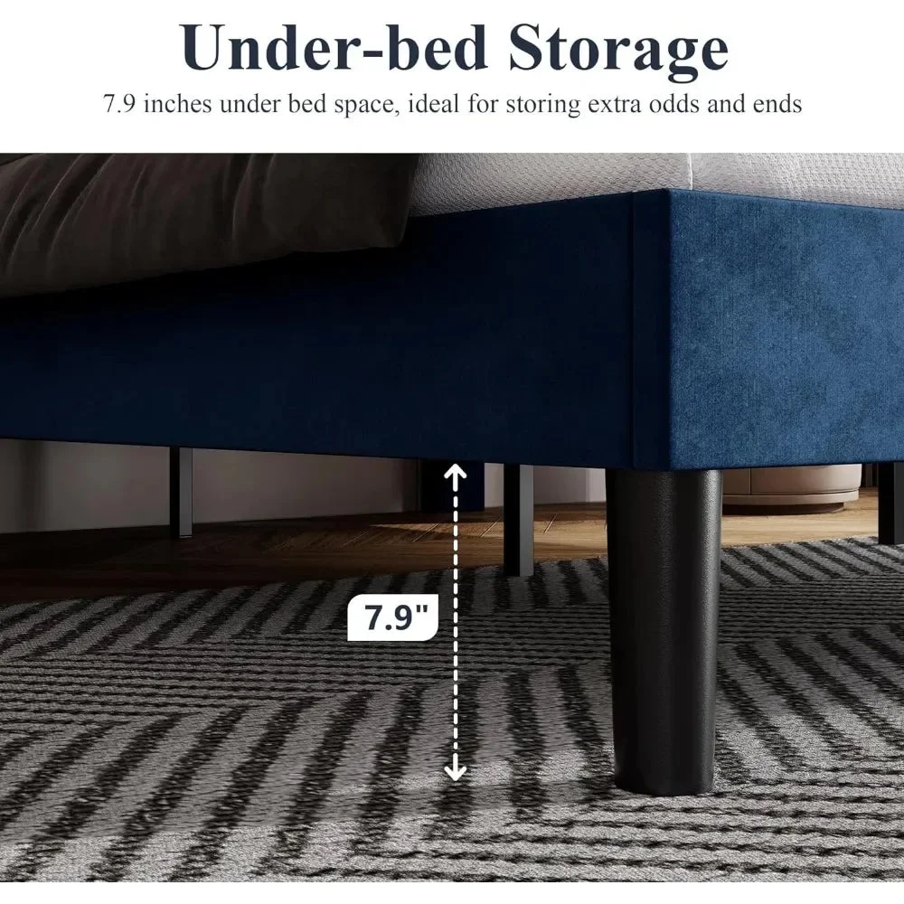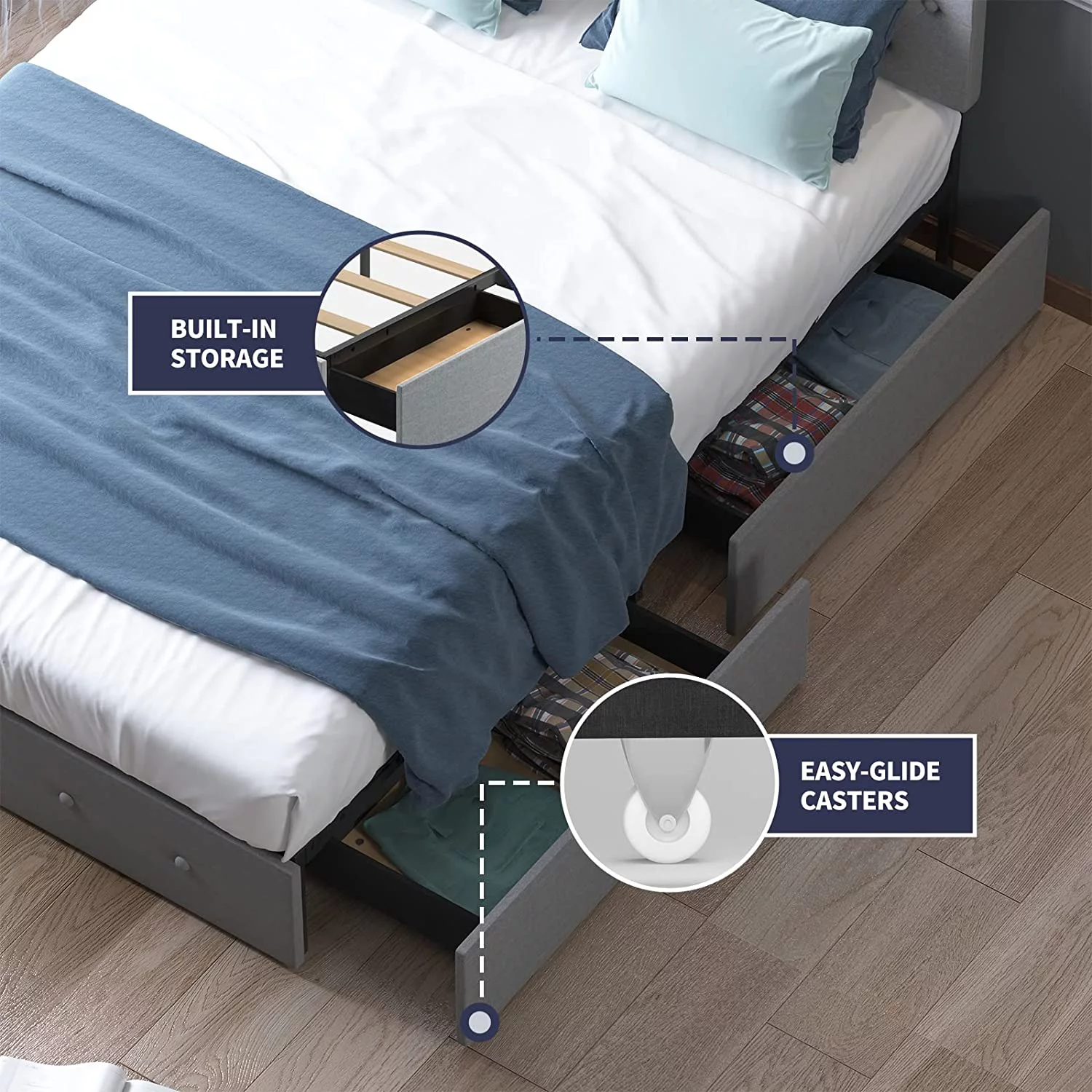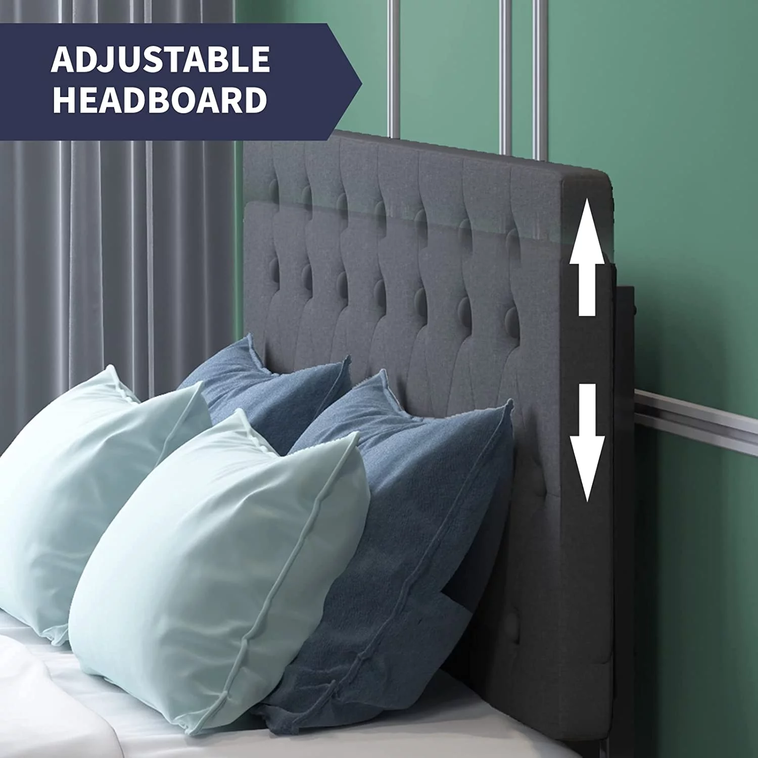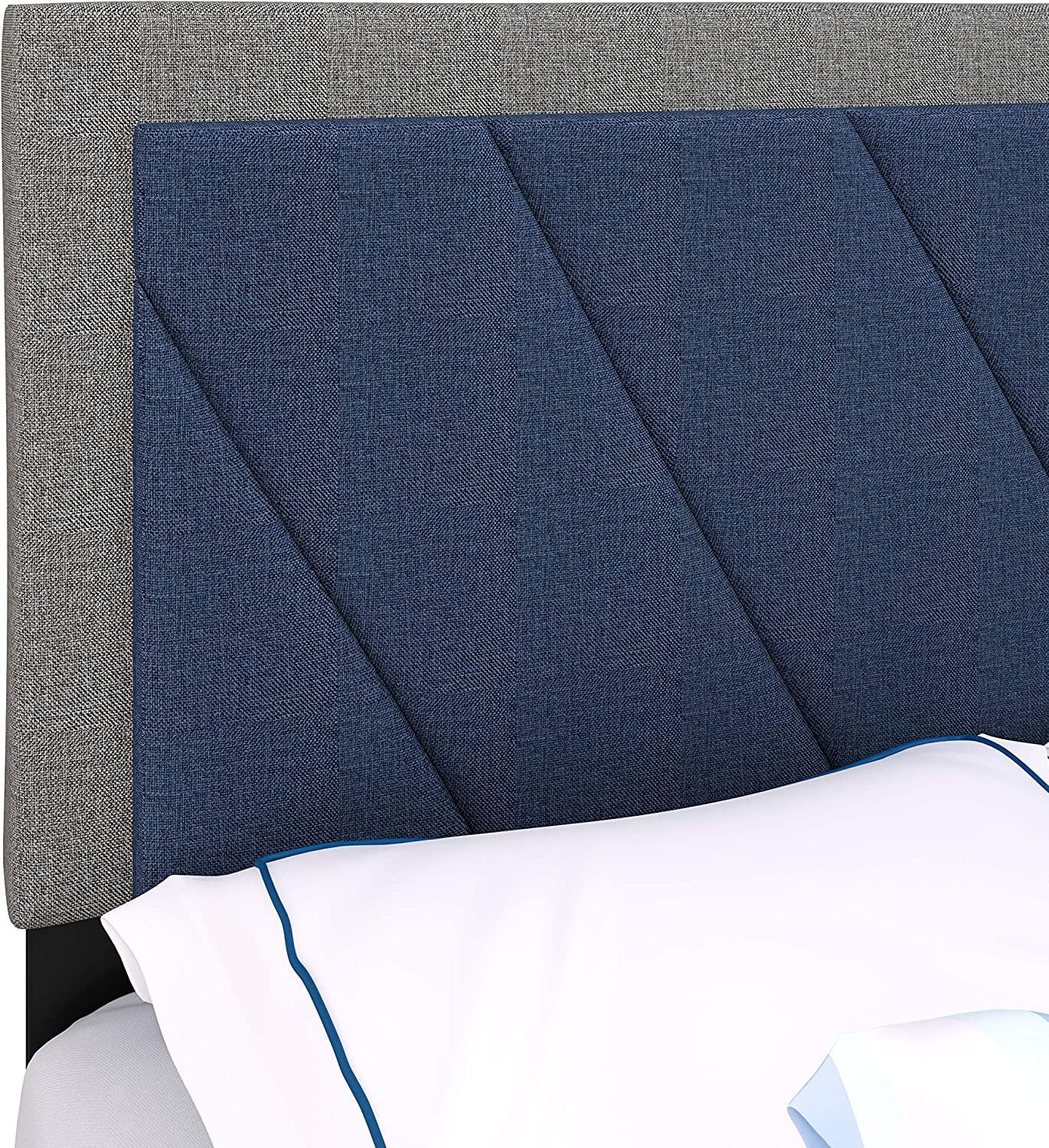 LIKIMIO Twin Platform Bed Frame with Upholstered Headboard and Wood Slat Support, Beige