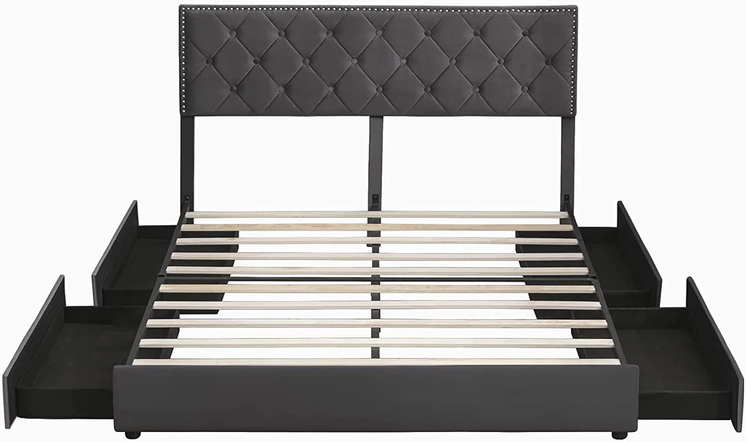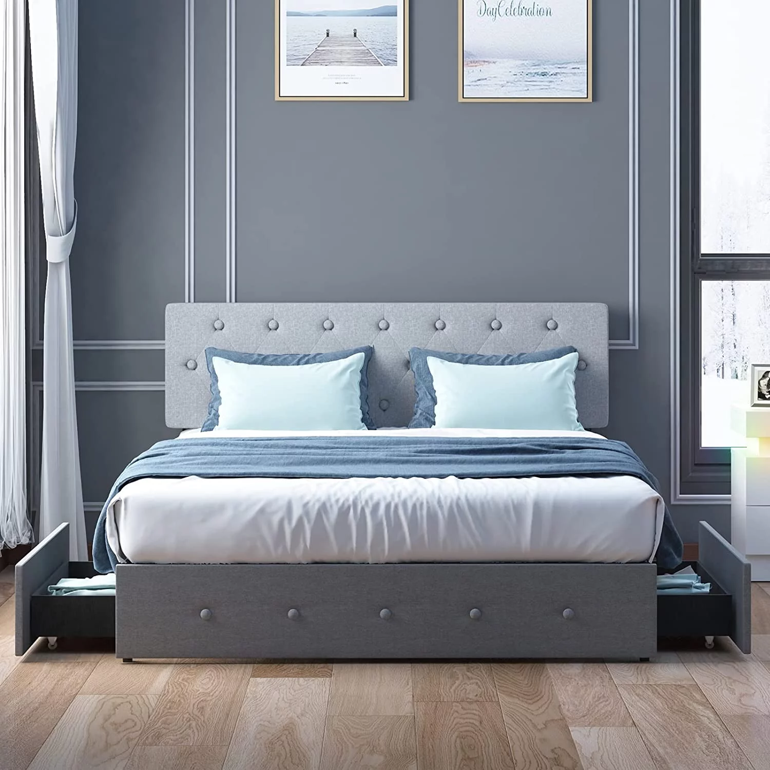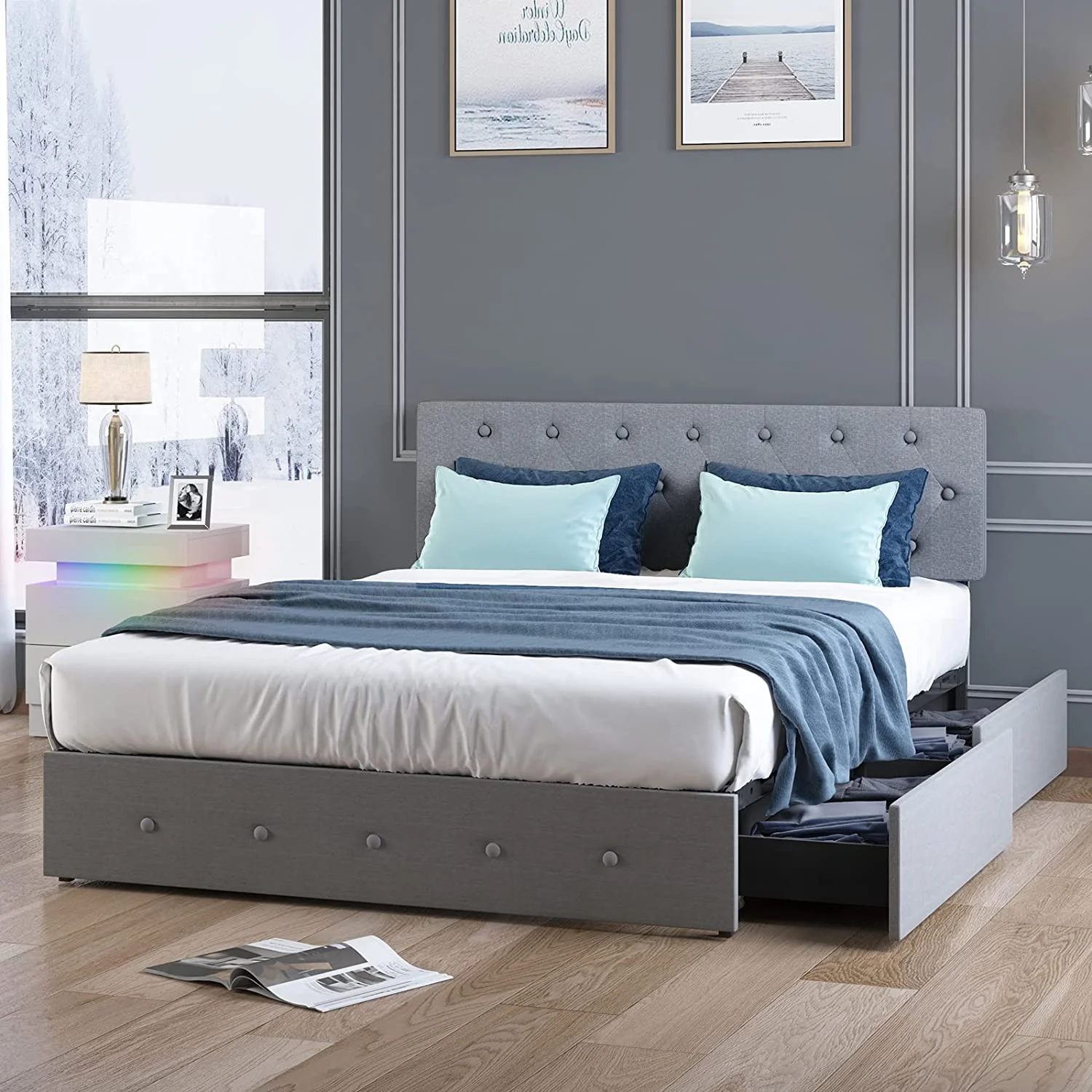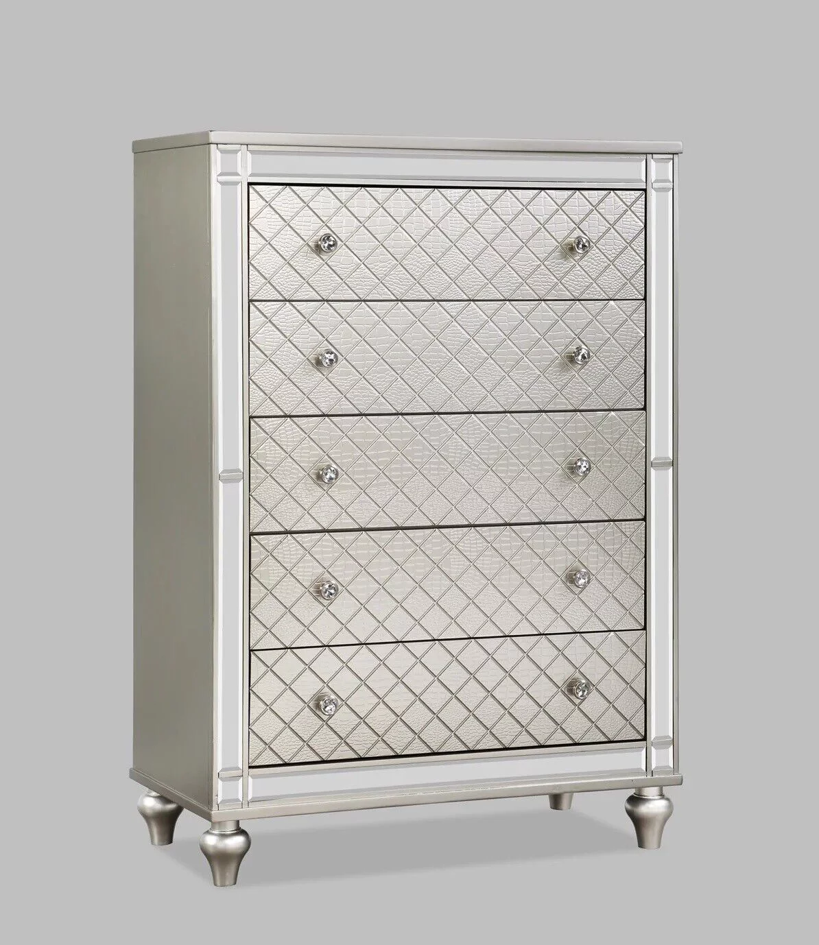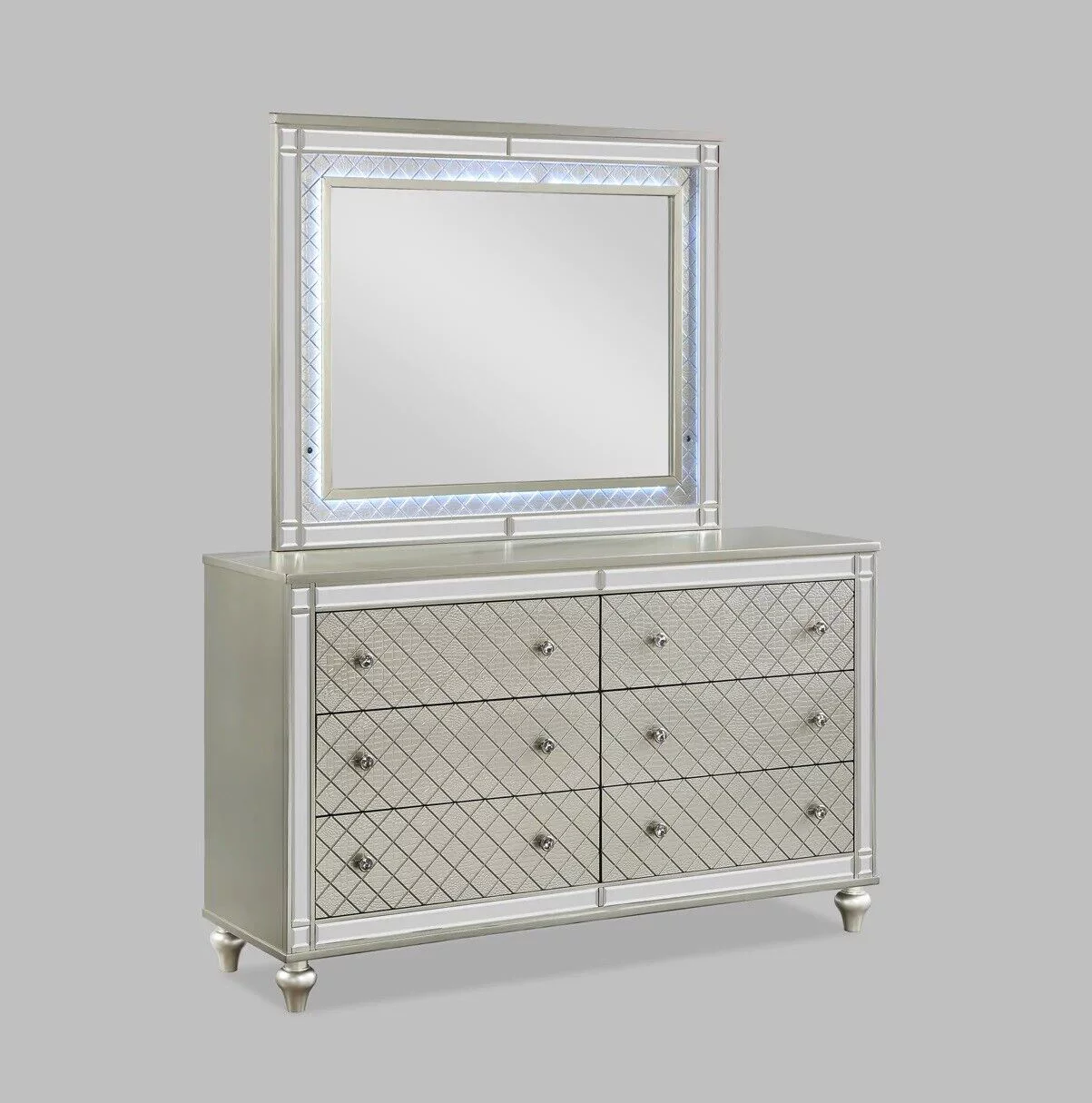 Modern Glam Style 6pc King Size Upholstery LED Bed Dresser Mirror Nightstand Chest Wooden Master Bedroom Furniture Set