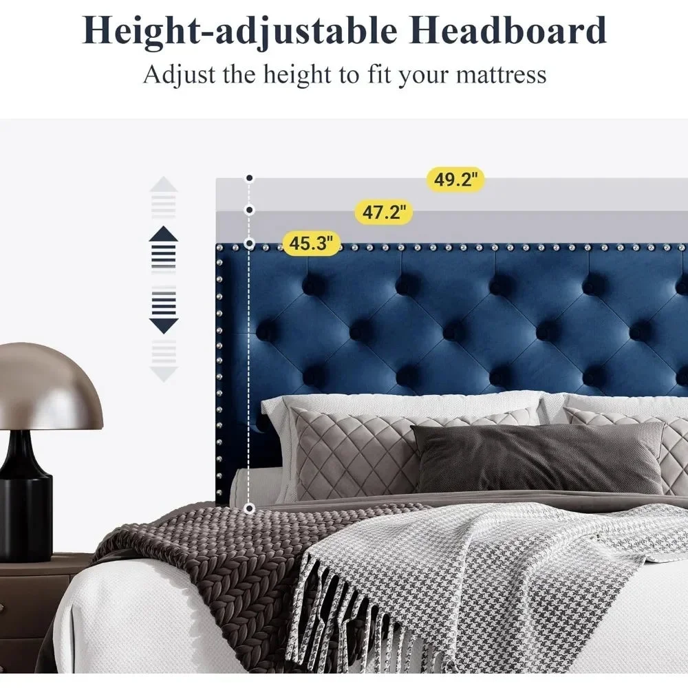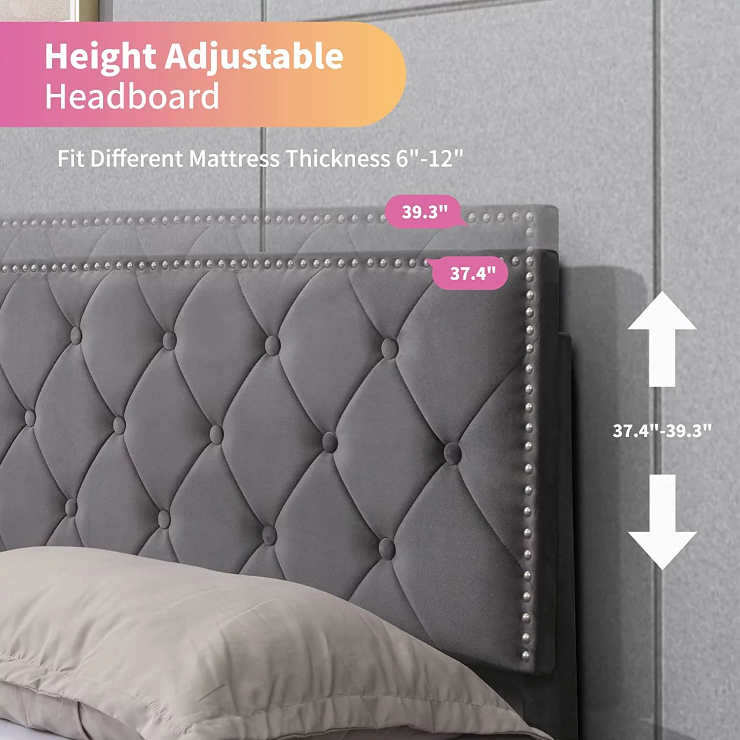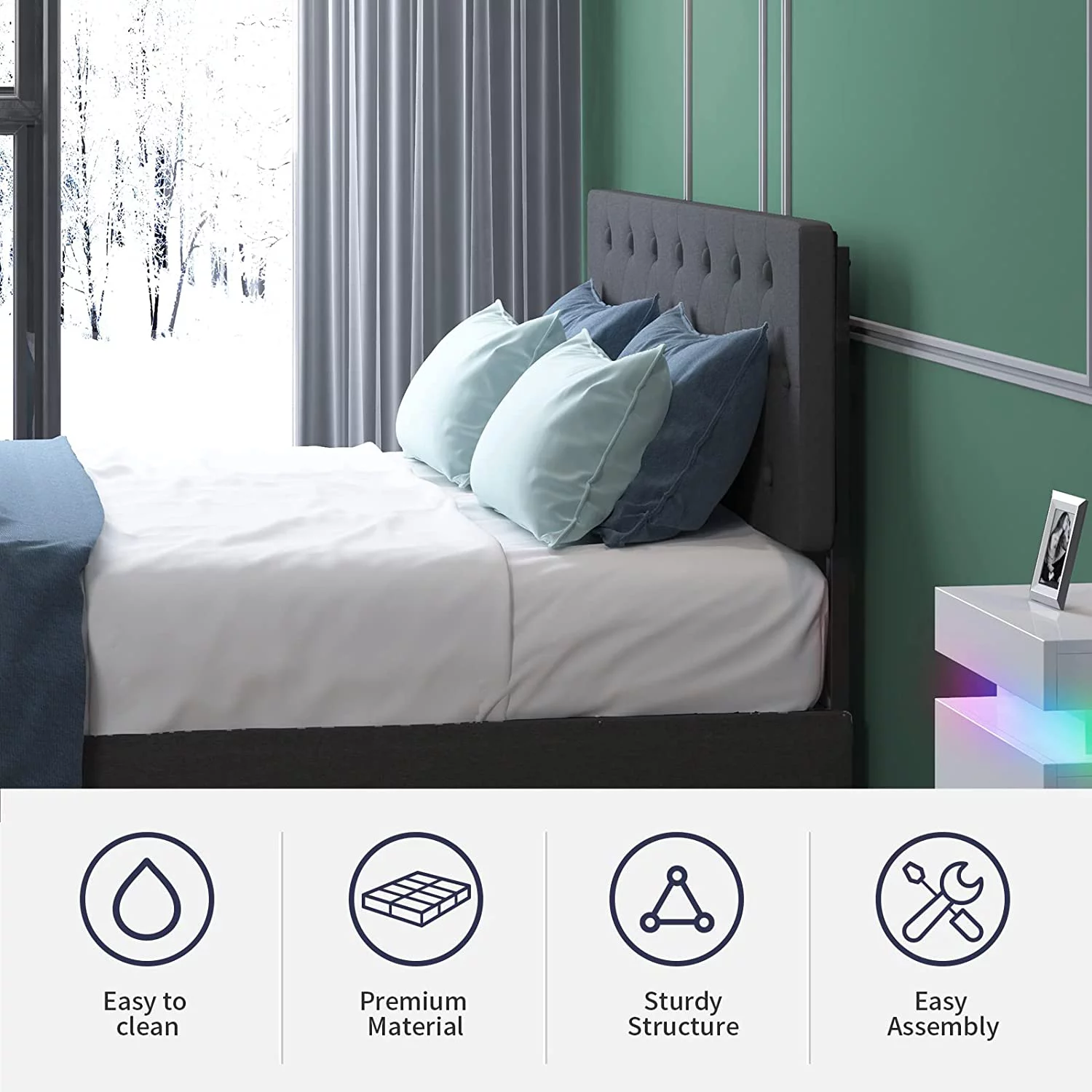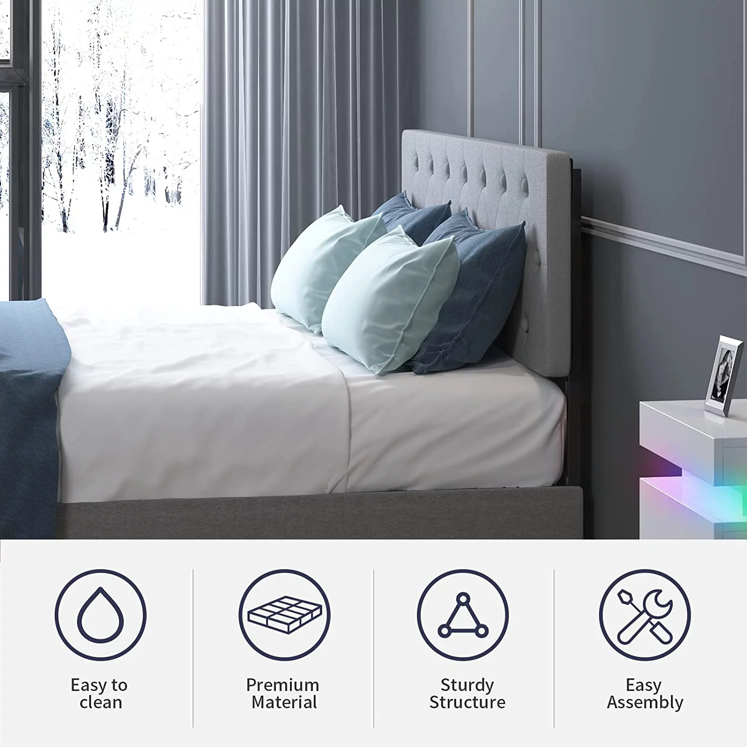 "Queen-Size Bedroom Set with LED-Lit Upholstered Bed, Hydraulic Storage, USB Charging, and Crystal-Decorated Nightstands"