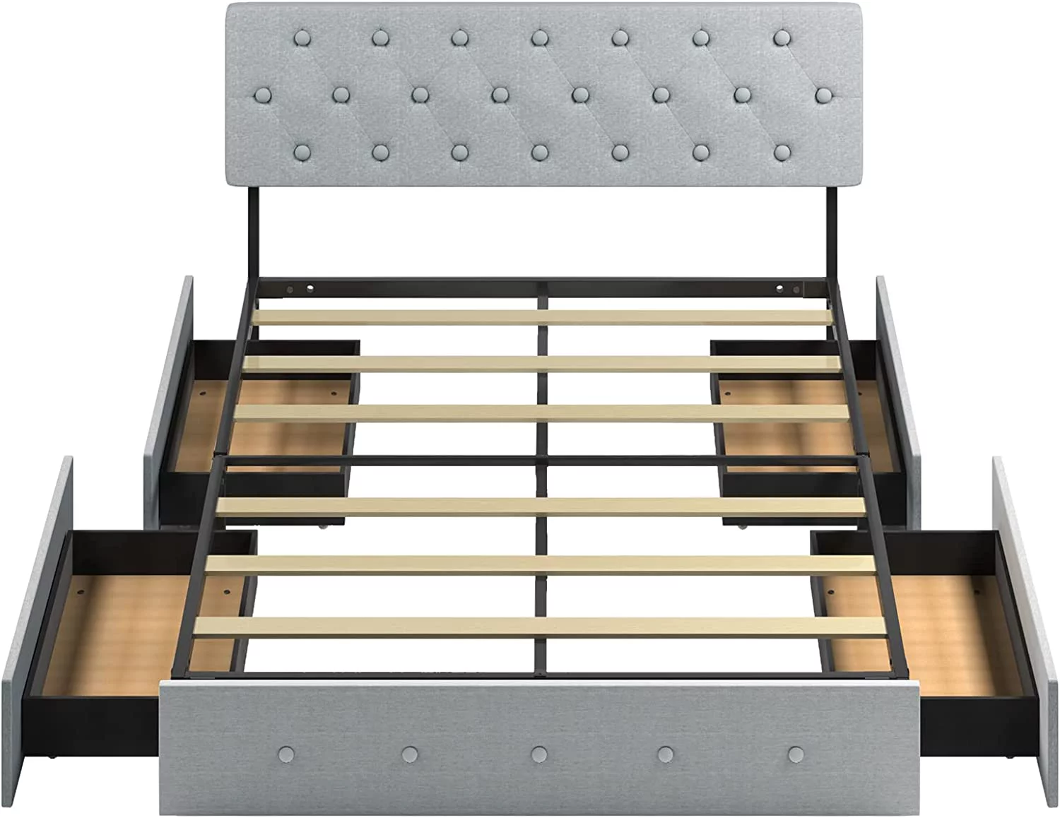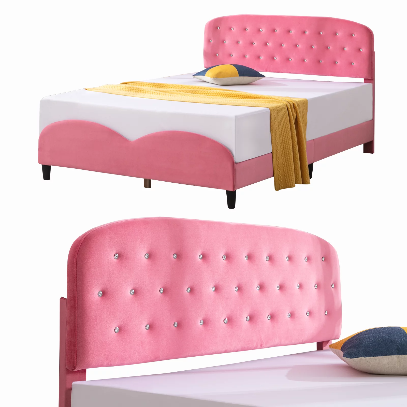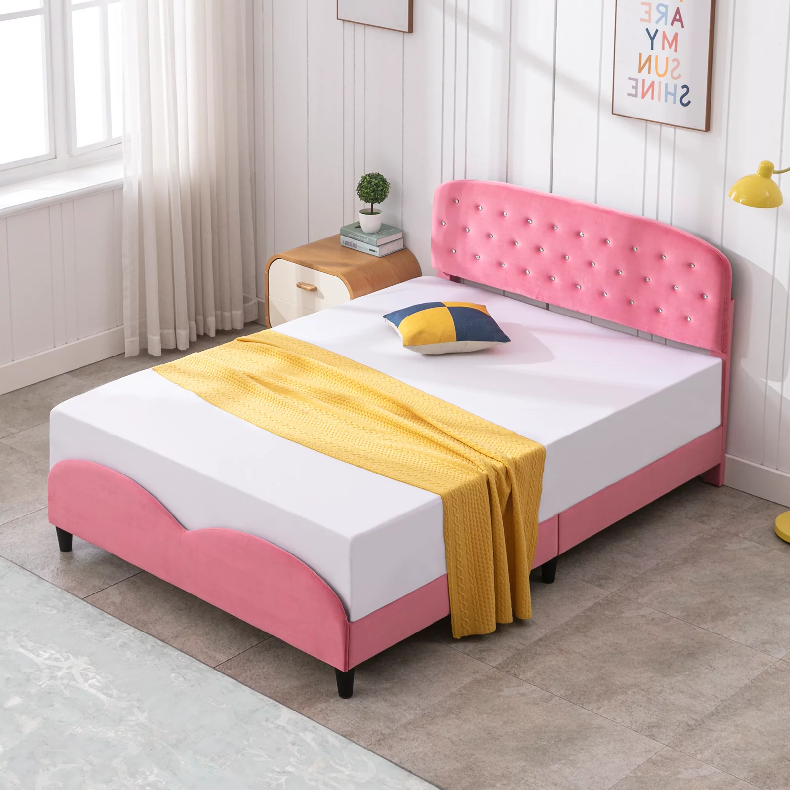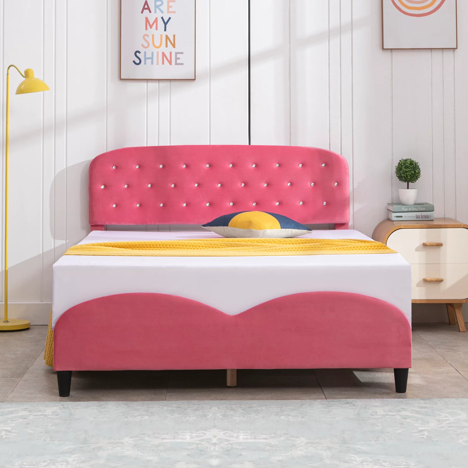 Upholstered Platform Bed with Saddle Curved Headboard and Diamond Tufted Details, King, Beige