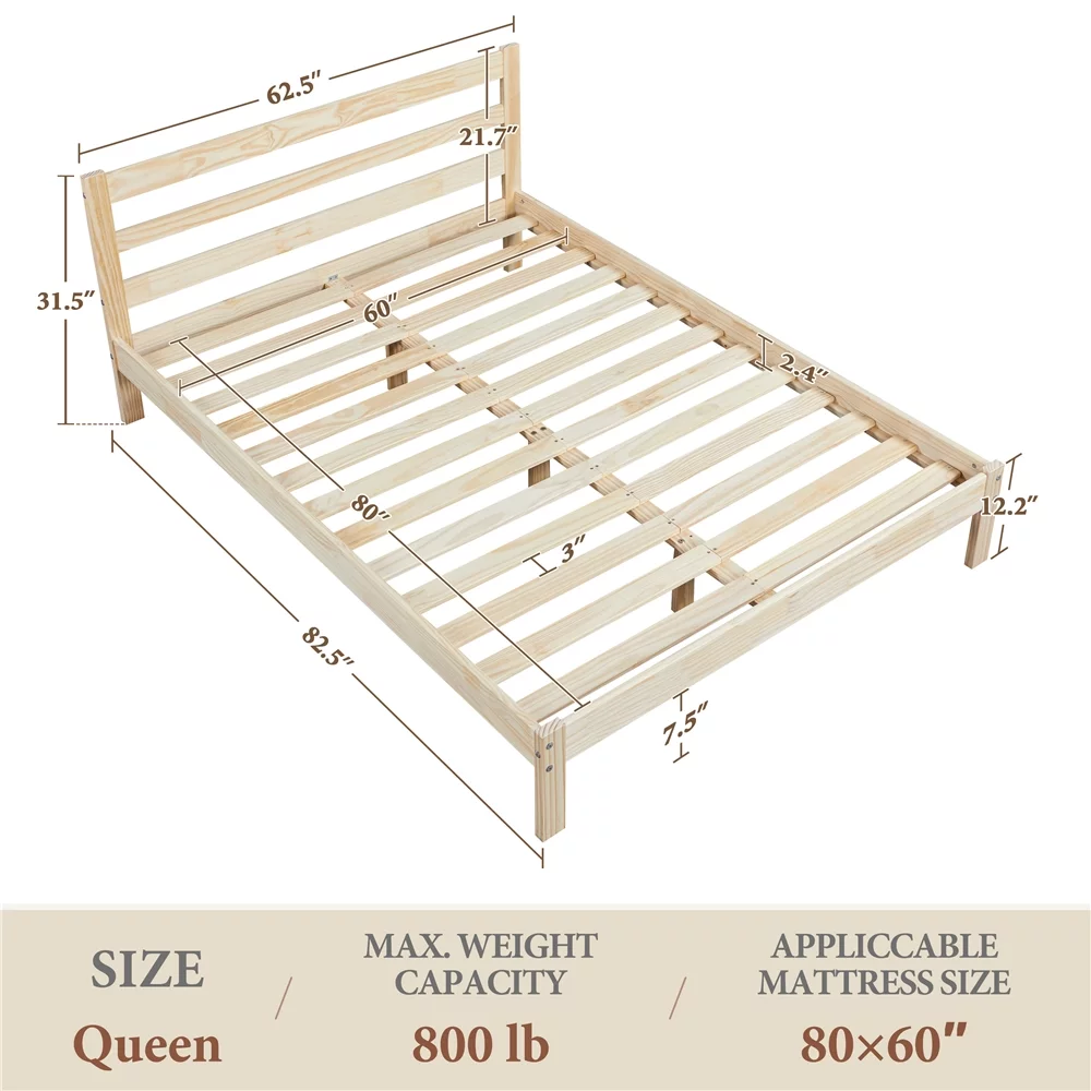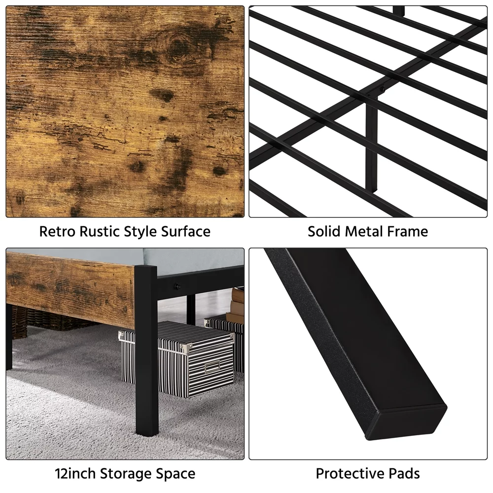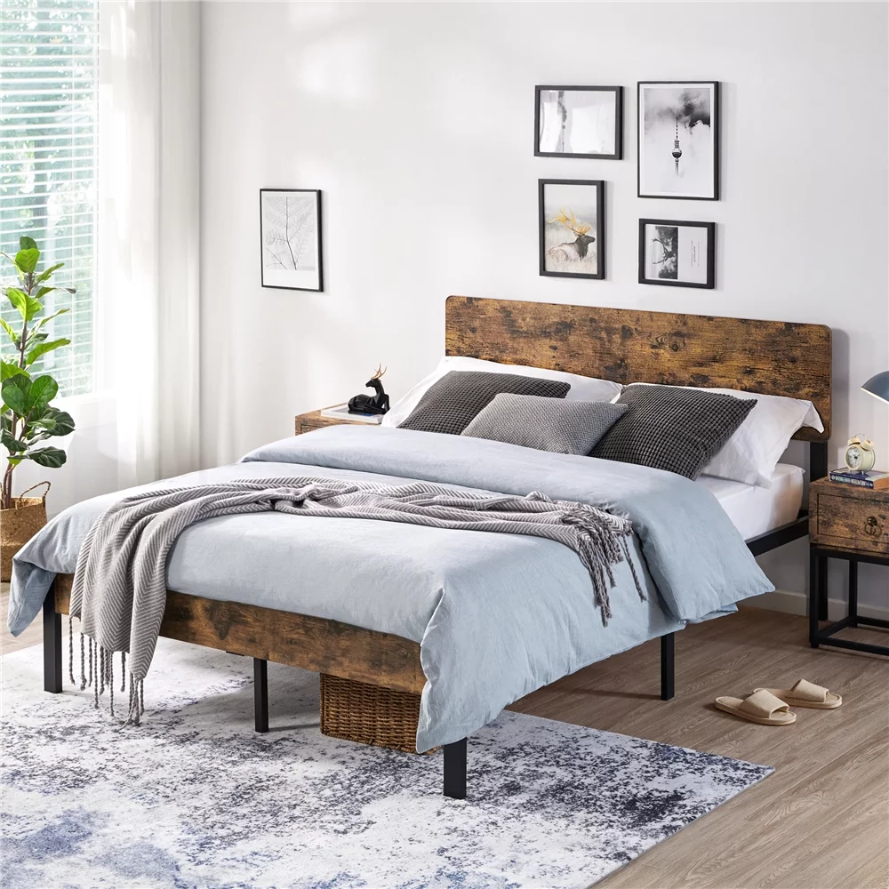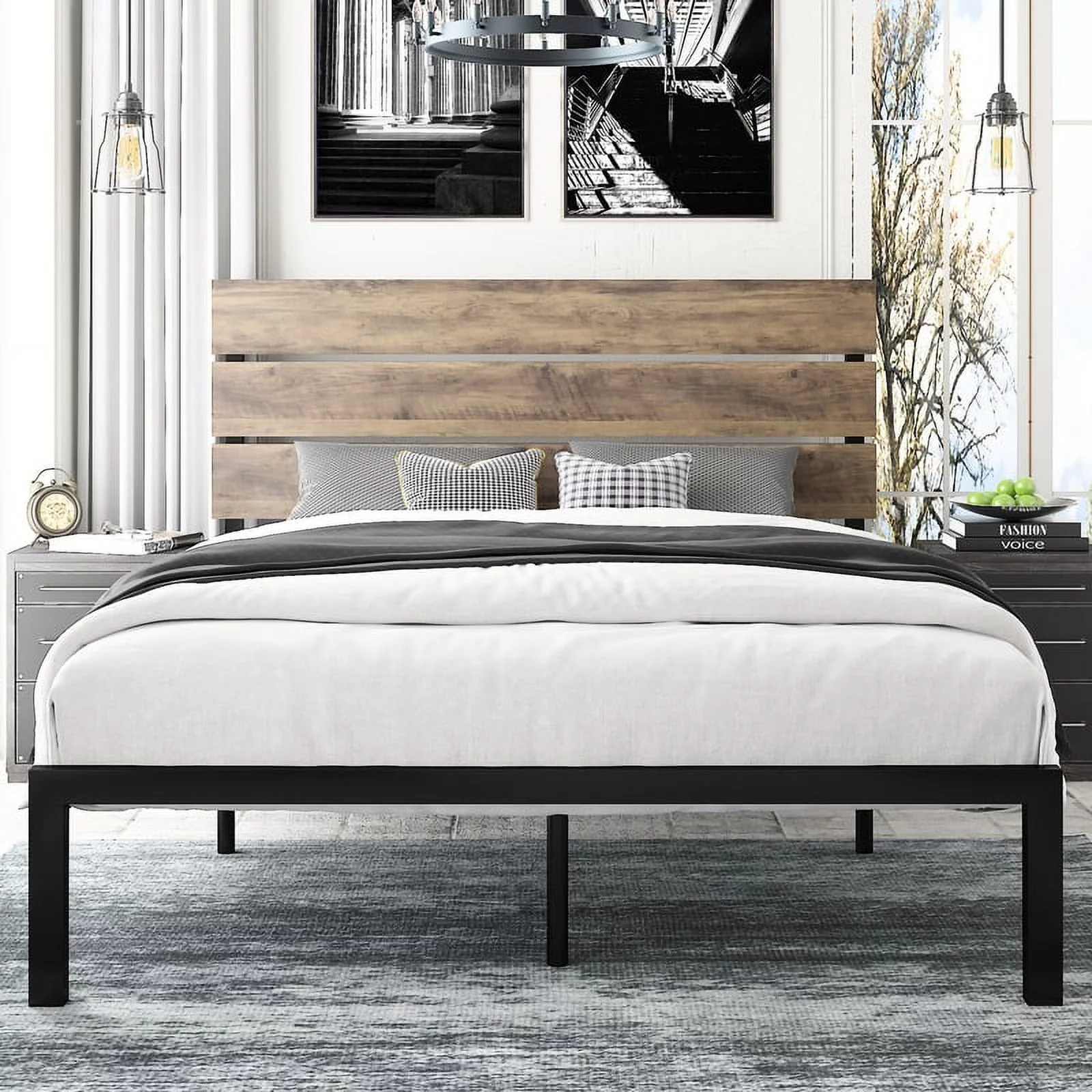 Amolife Queen Size Platform Bed Frame with Wood Headboard,Rustic Country Style Mattress Foundation,Light Brown
