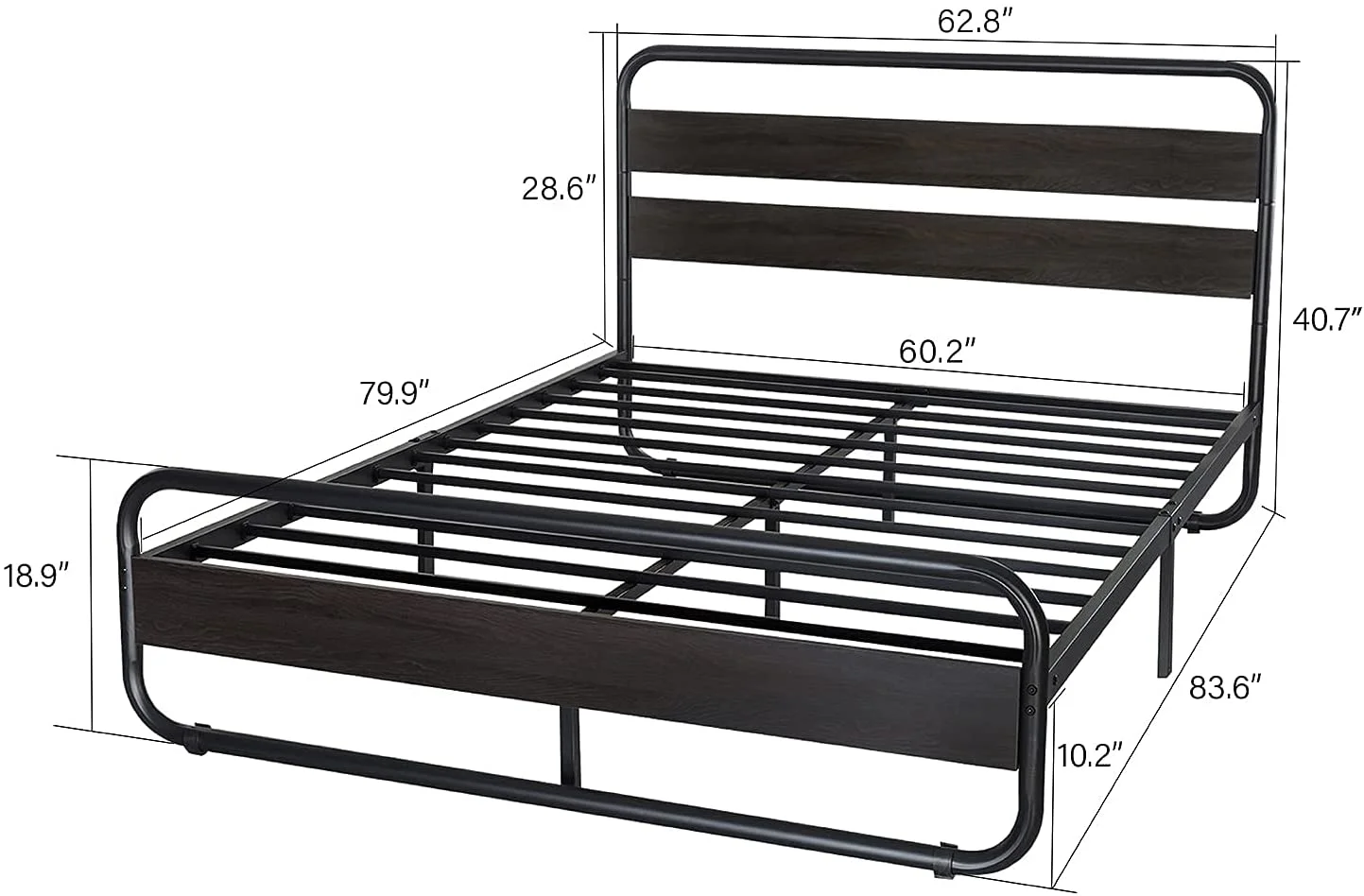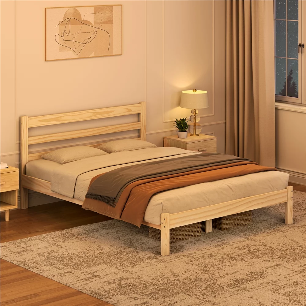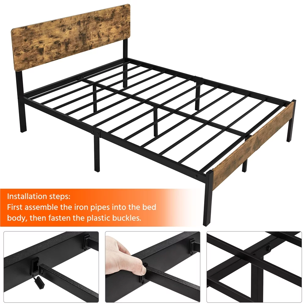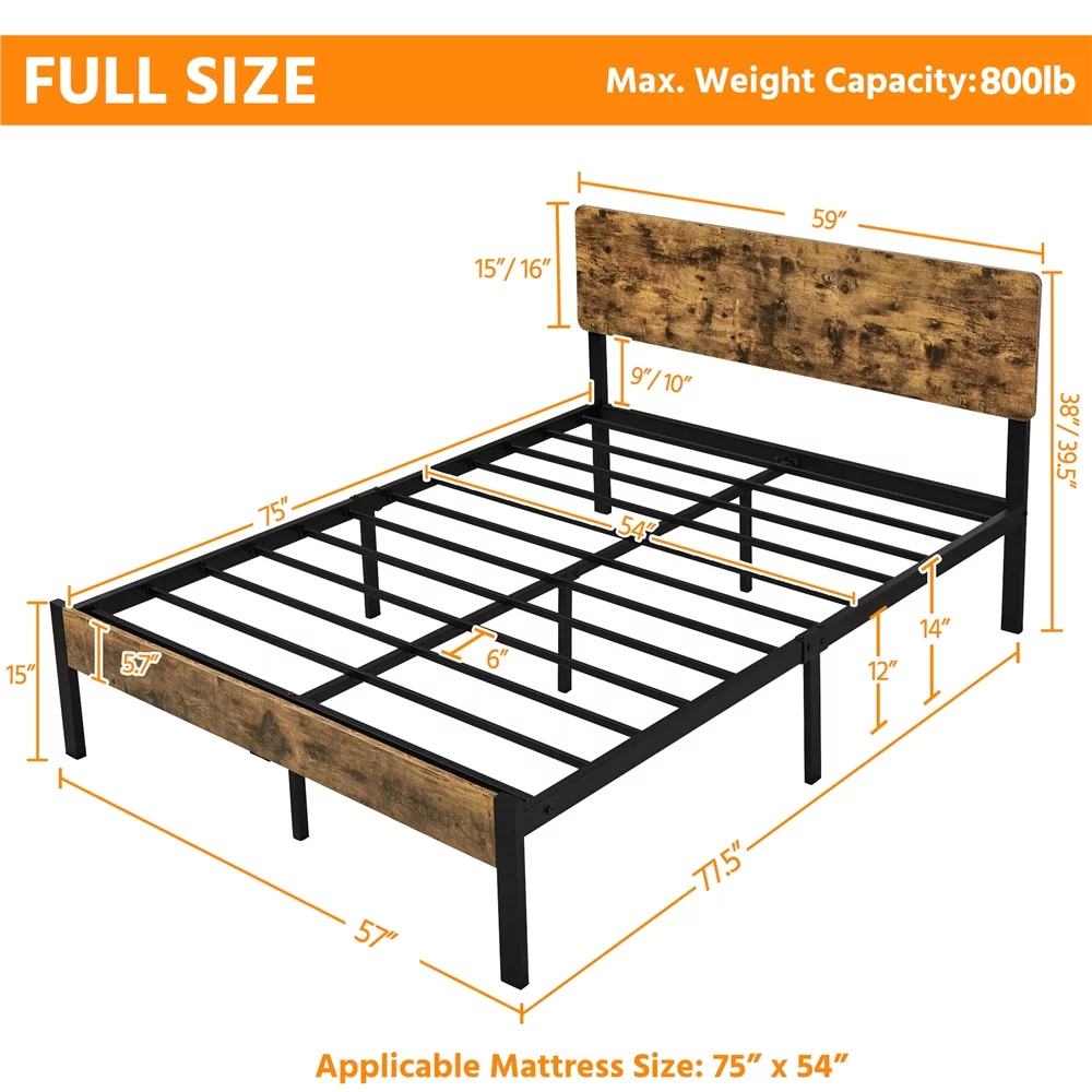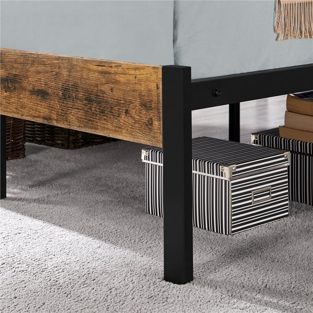 Amolife Queen Size Platform Bed Frame with Wood Headboard,Rustic Country Style Mattress Foundation,Light Brown